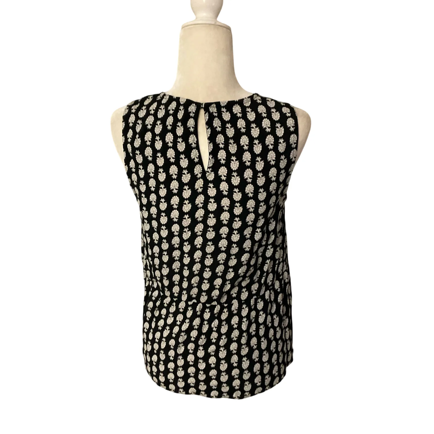 Style: Tank-top/camisole with back button closure #F5206 Color: Black/White Size: S Armpit: 15” Length: 23” Condition: Good 100% Viscose Dry Clean