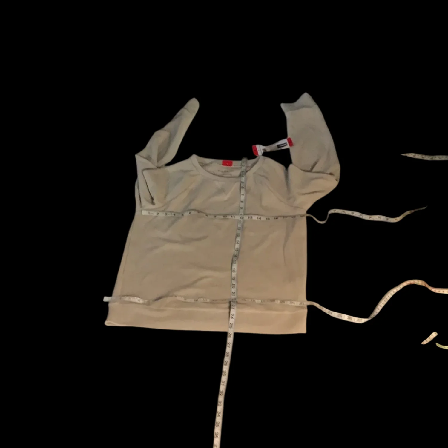 Style : Crew Neck Sweater/Sweatshirt top Color: Stone/Beige Size: M Armpit: 20" Length: 26" Sleeve: 32" Condition: New 56% Polyester 42% Cotton 2% Spandex Machine wash cold