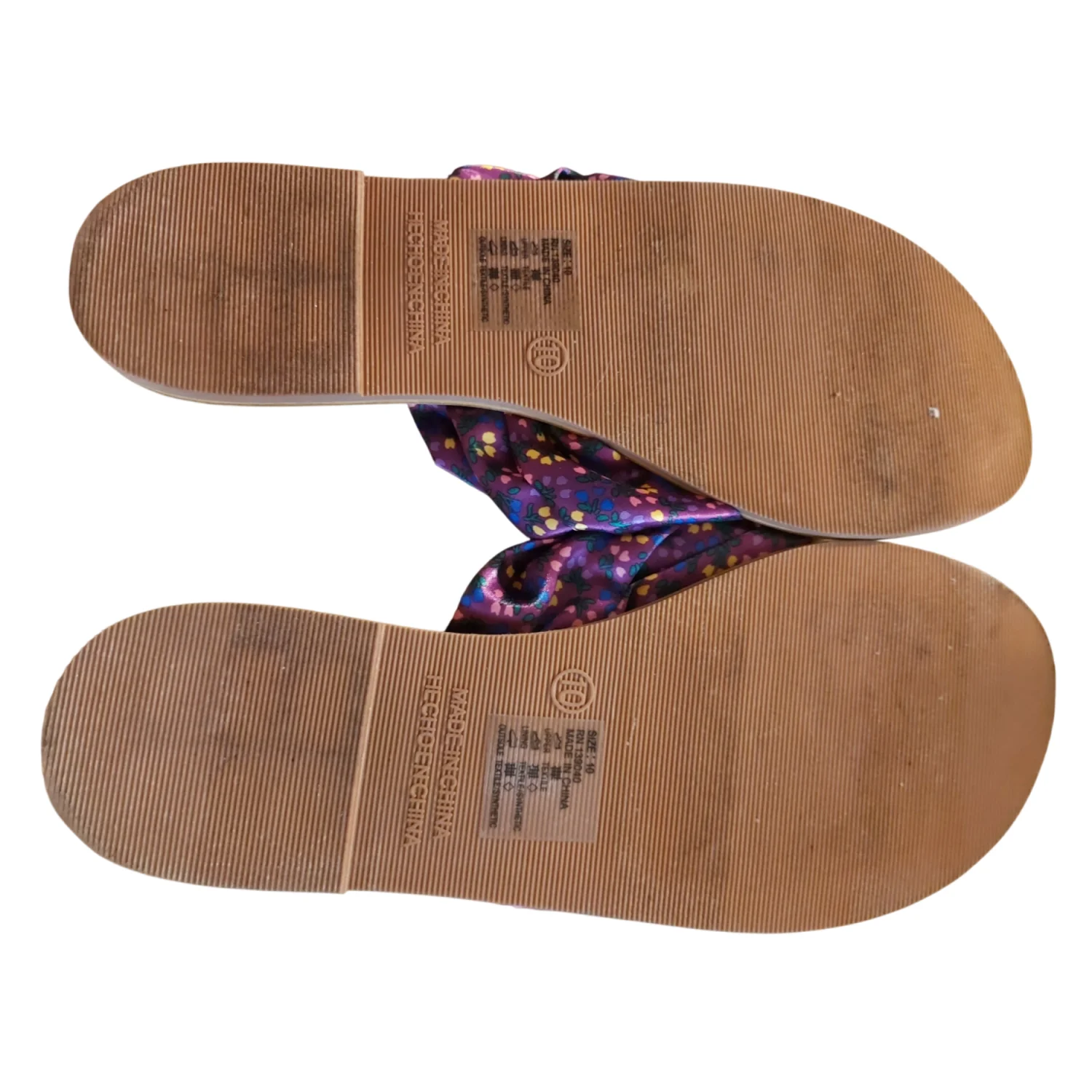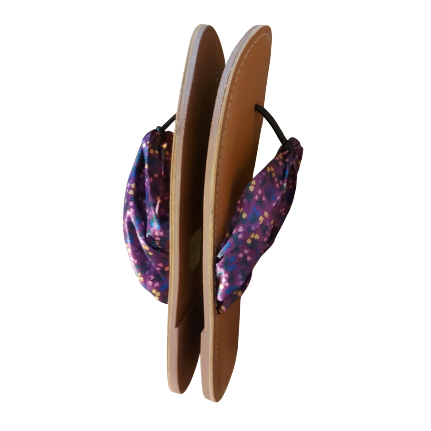 Color: Purple floral thong sandals Style: Summer Collection Size: 10 Condition: Good Fabric: Cloth material