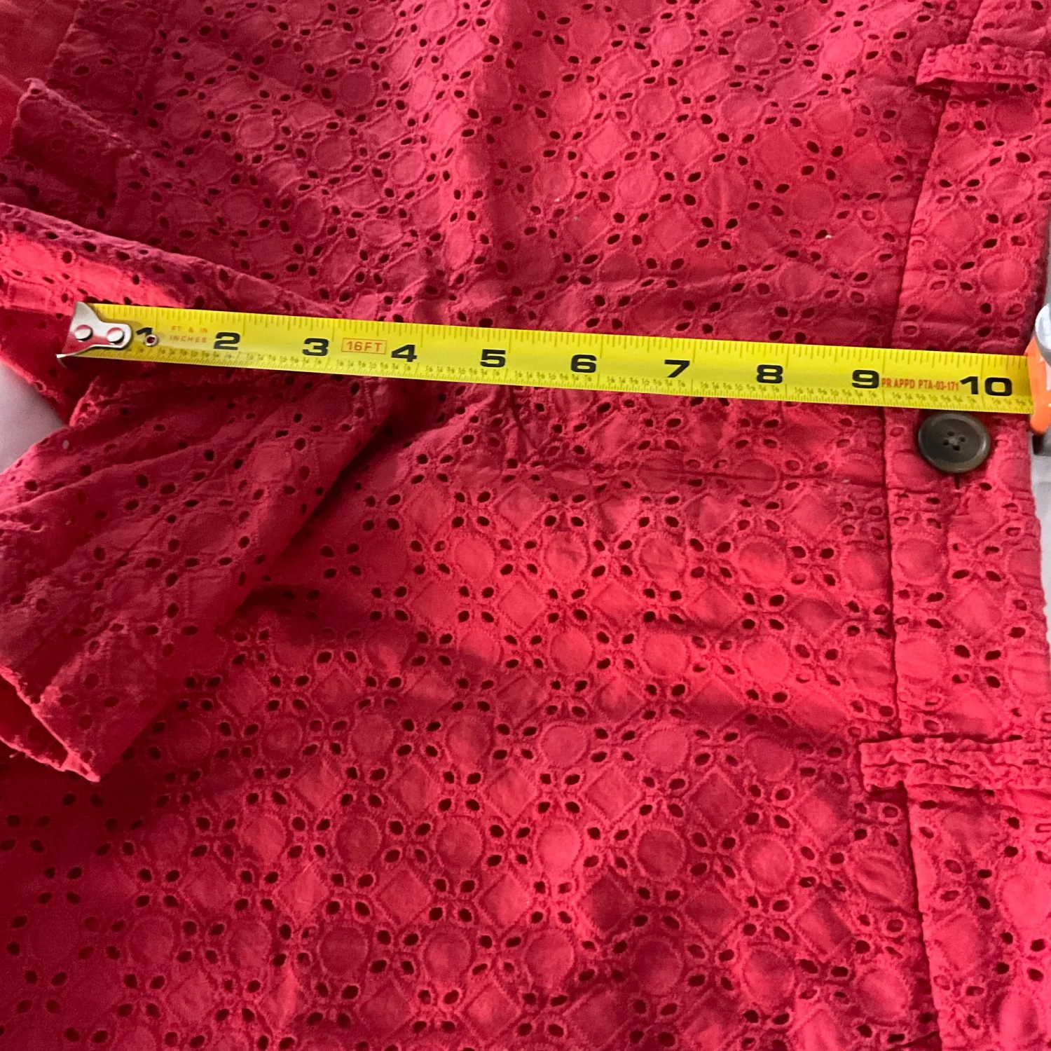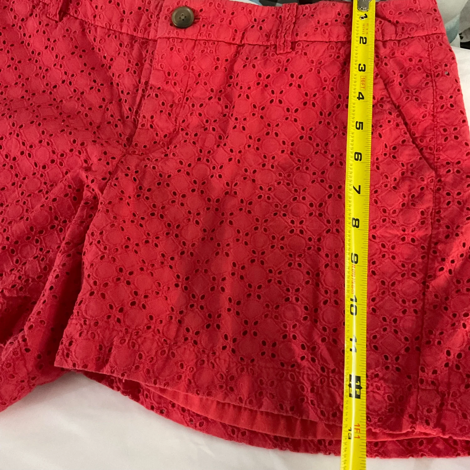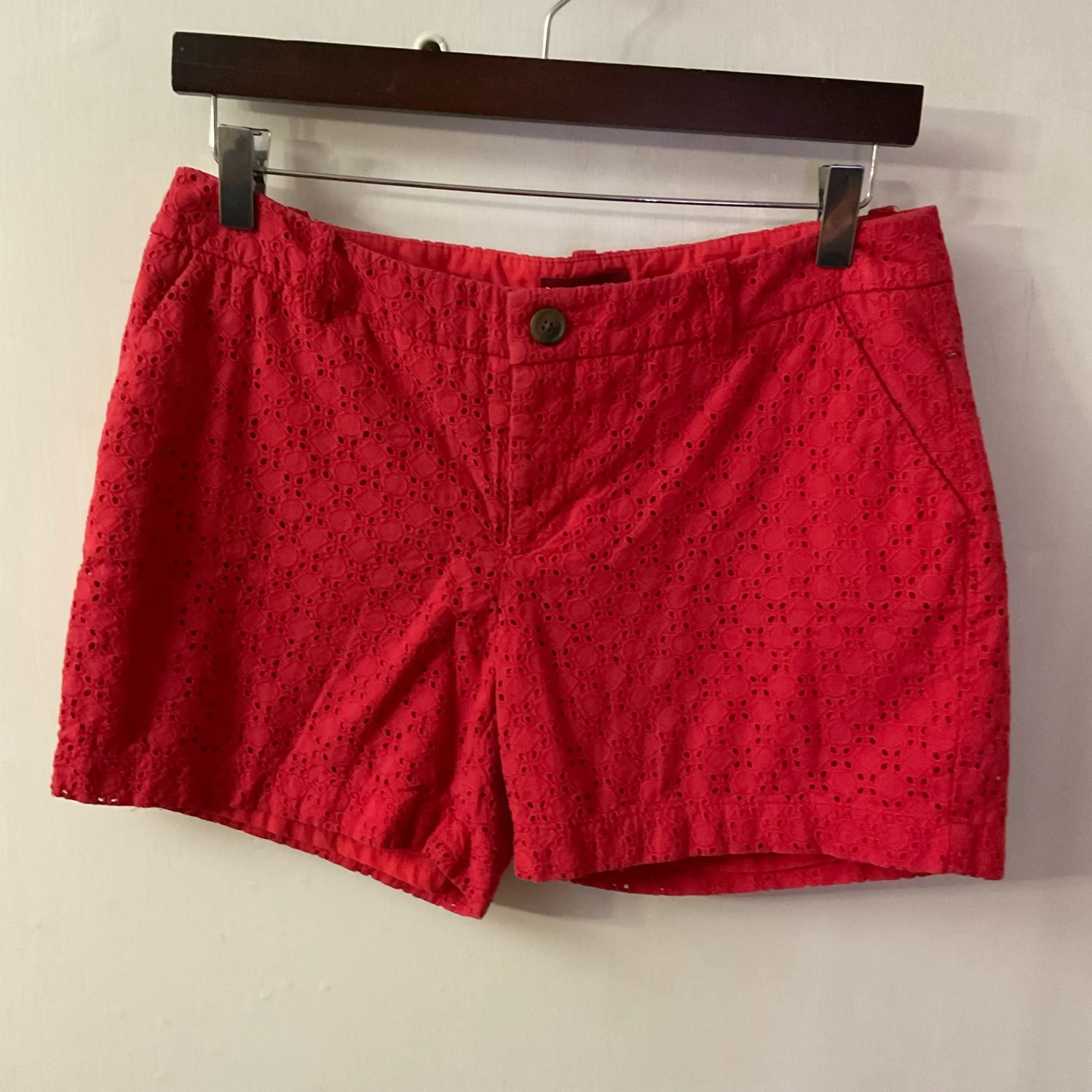 Style: Eyelet deisign pattern lined shorts Color: Red Size: 6 Waist: 15" Length: 15" Condition: Good 100% Cotton Machine wash cold
