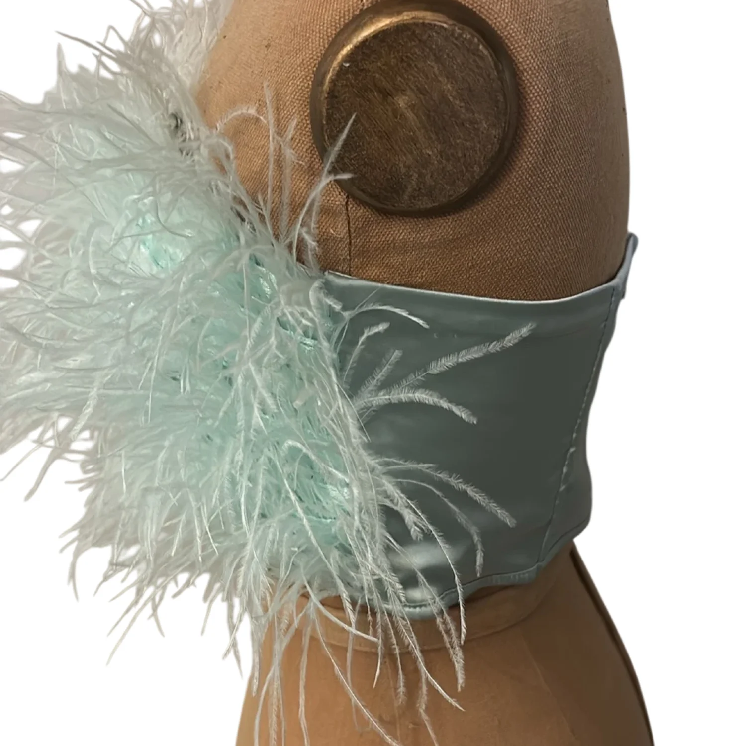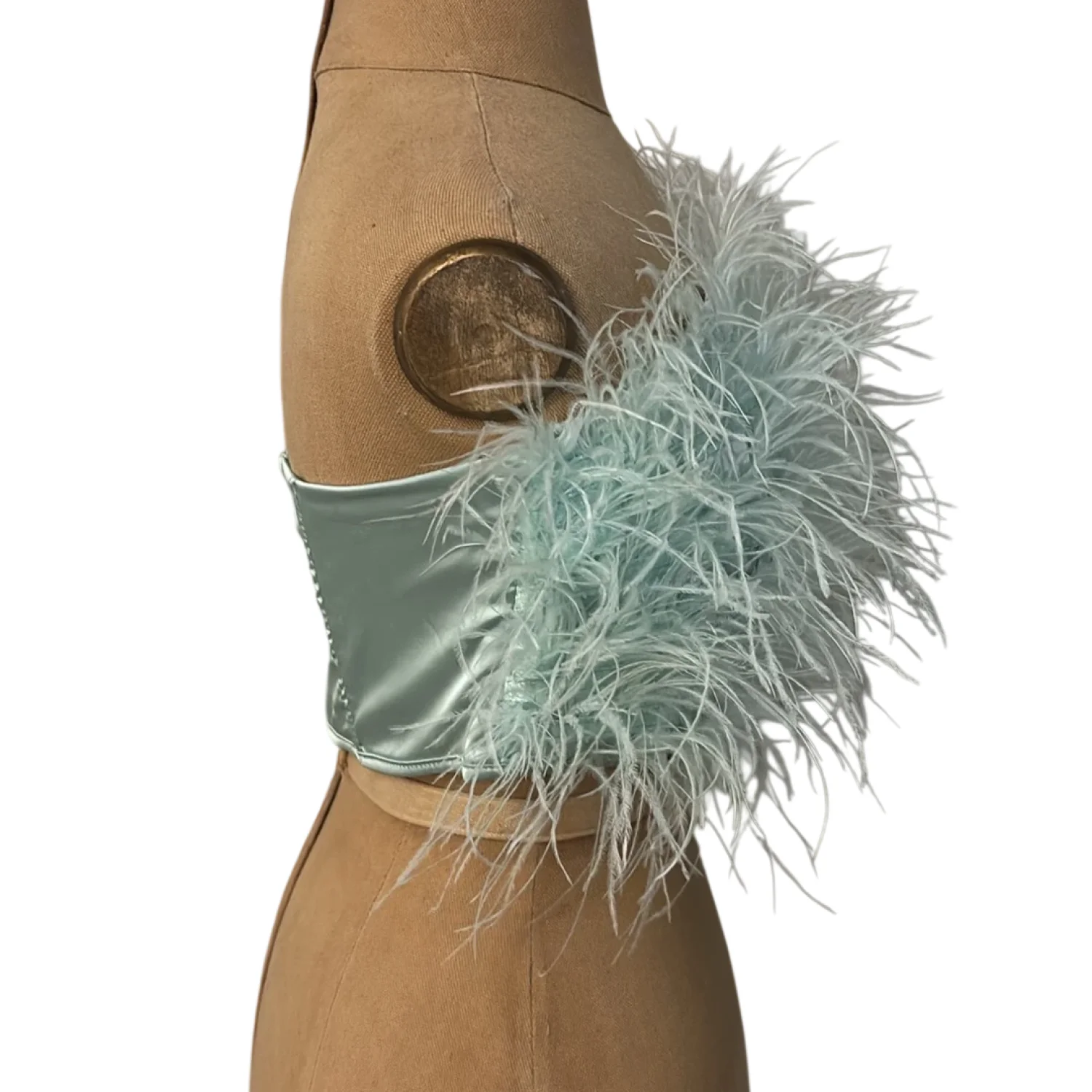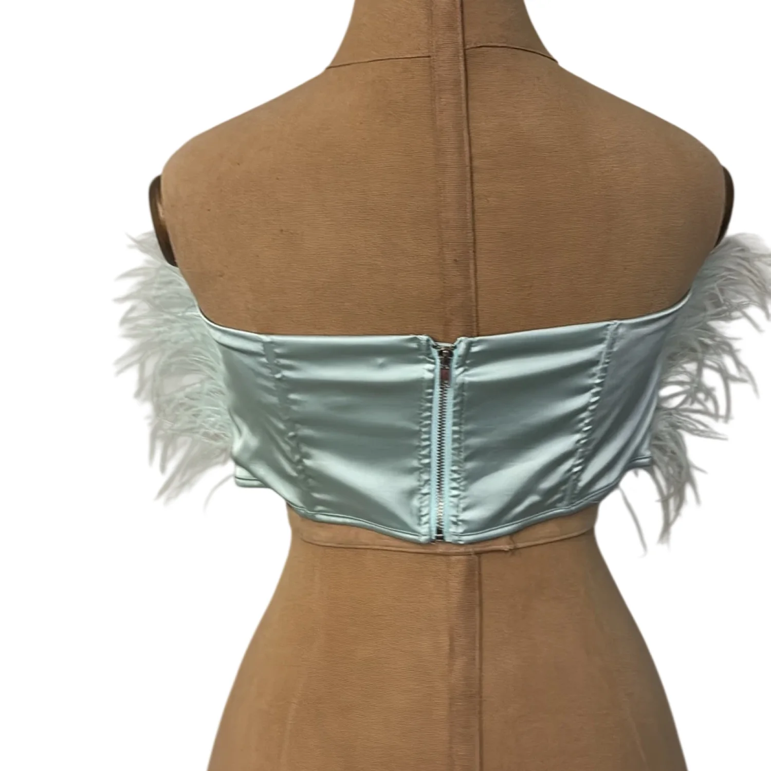 Missguided Mint Green Feather Strapless Crop Top Size 6 Coquette Mermaid Fairy