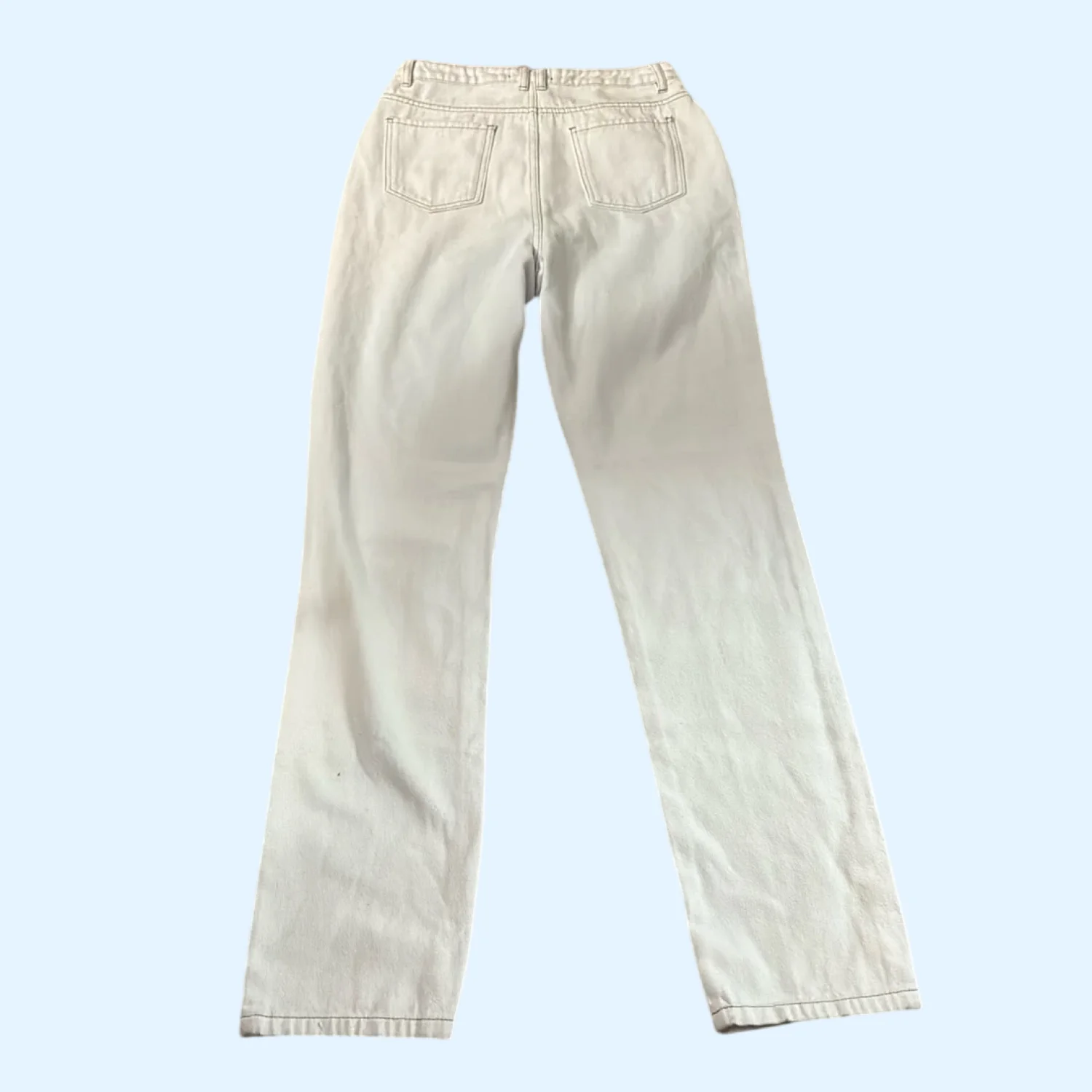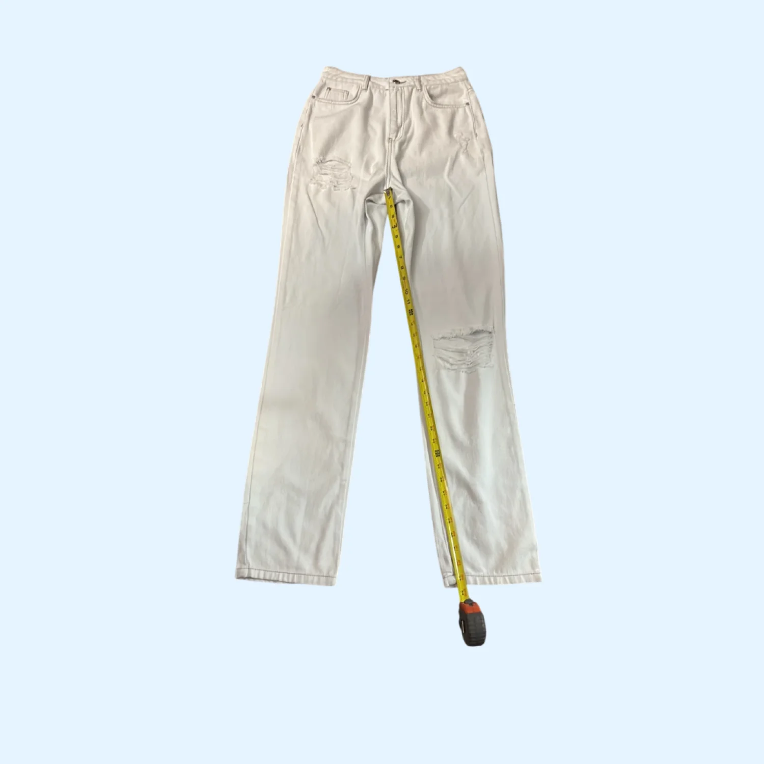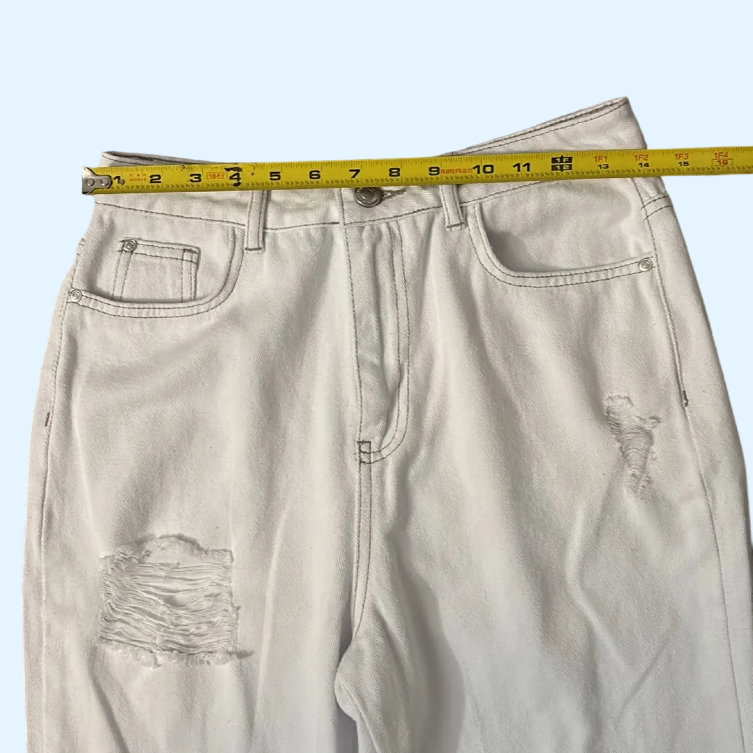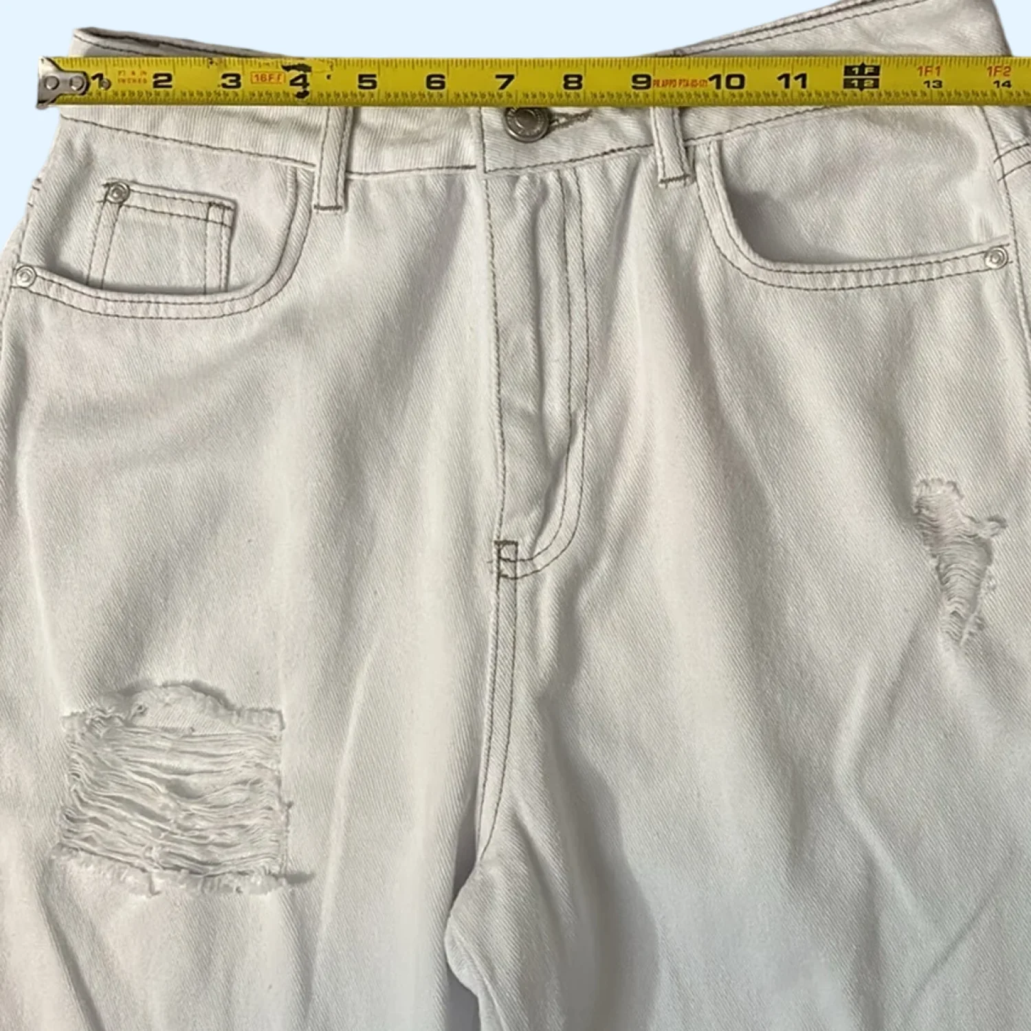Style: 5 pocket zip fly distressed tall jean YX9211110 Color: White Size: 6 TALL Waist: 14” Rise: 14” Inseam: 33” Condition: New with tags 100% Cotton Machine wash