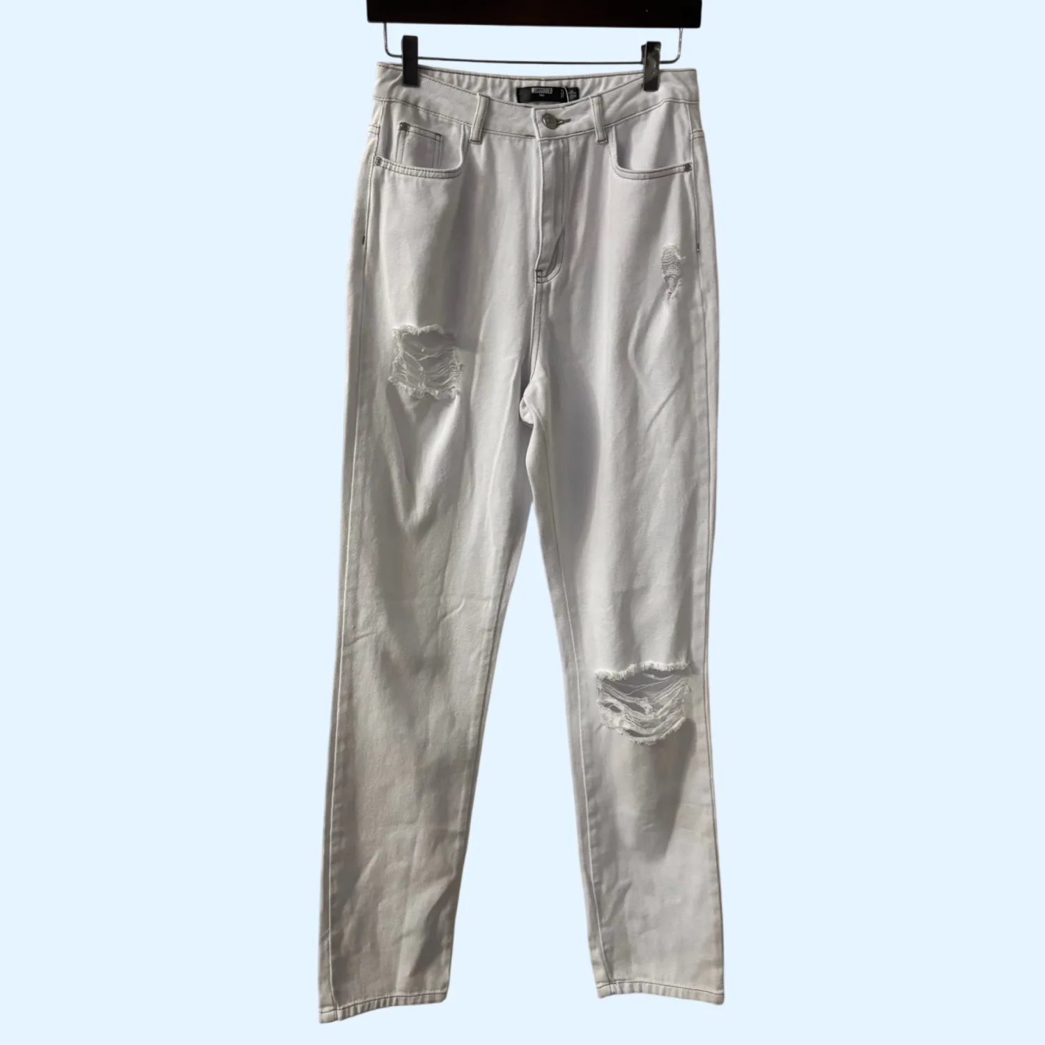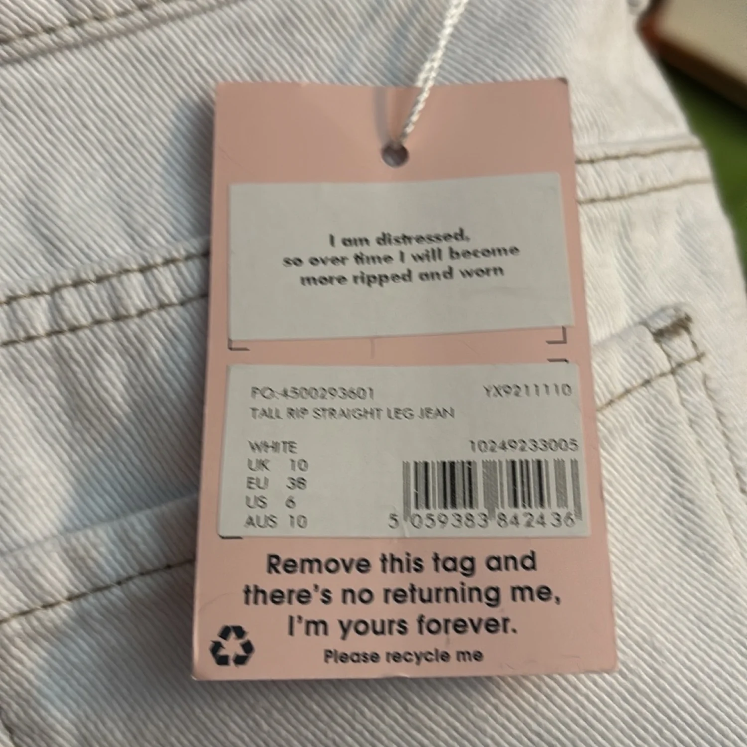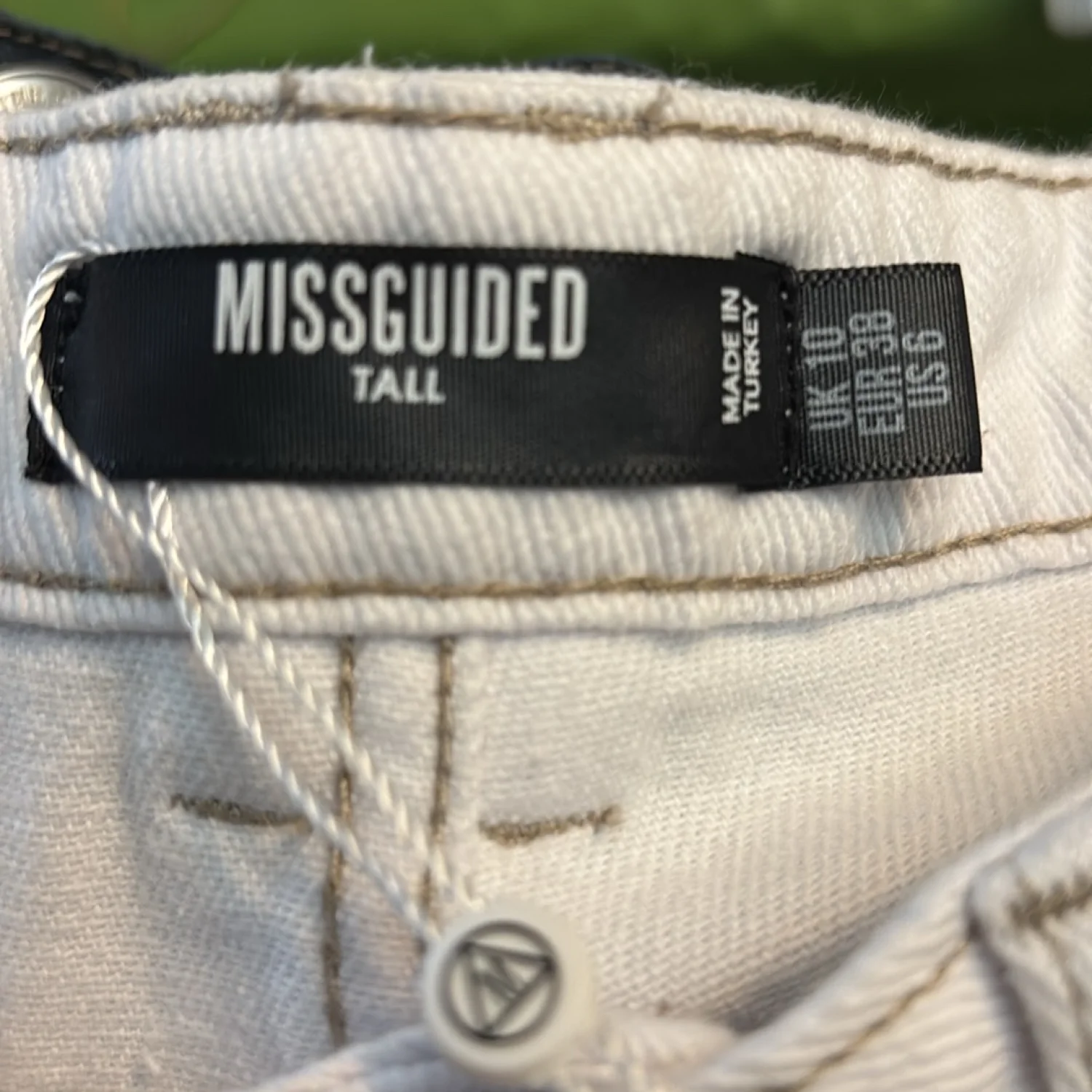 Missguided White Distressed Rip Straight Leg Jean TALL 6 NEW Classic Preppy