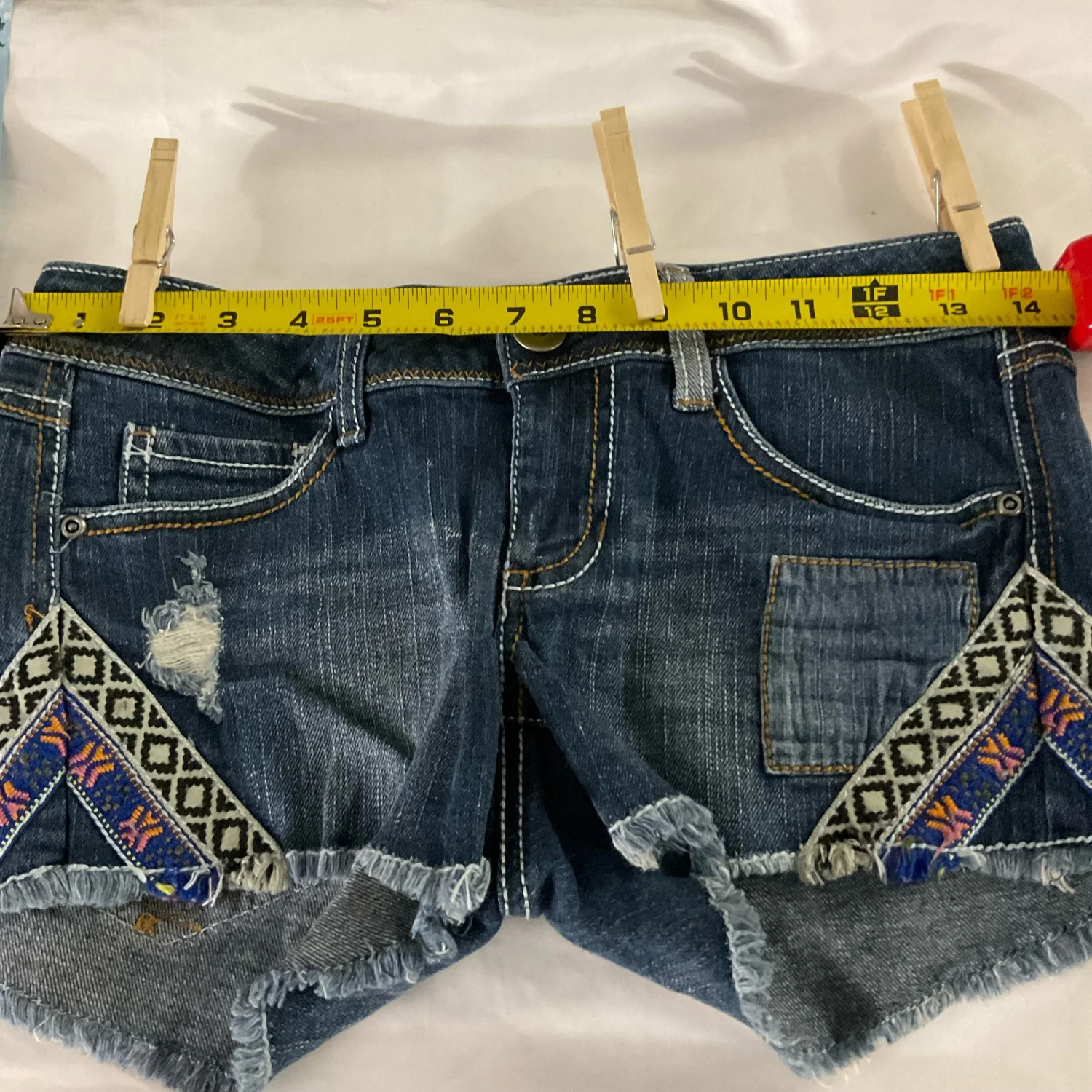 Mudd Jeans Aztec Distressed Denim Shorts 3 Boho Festival Southwestern Tribal