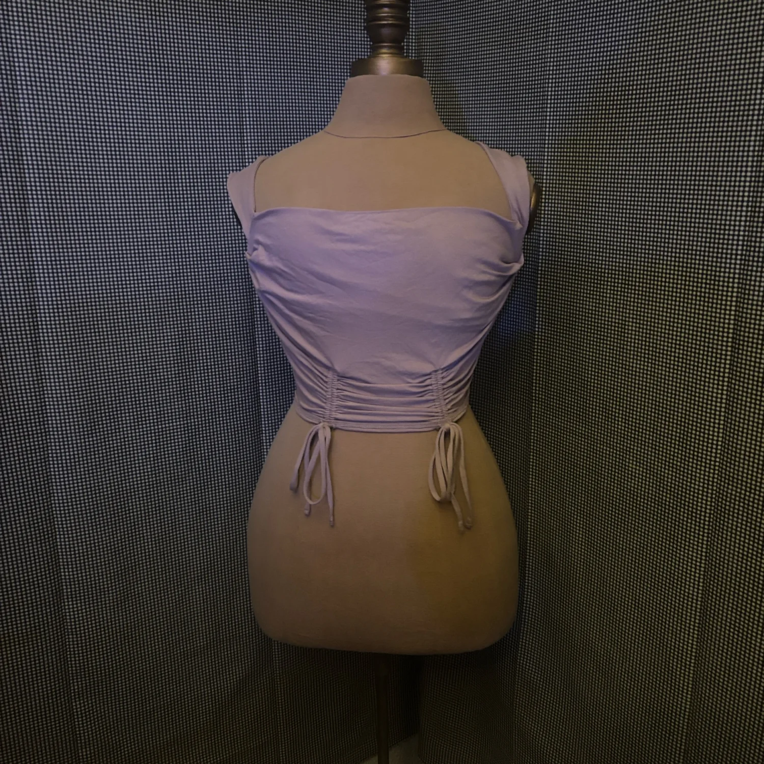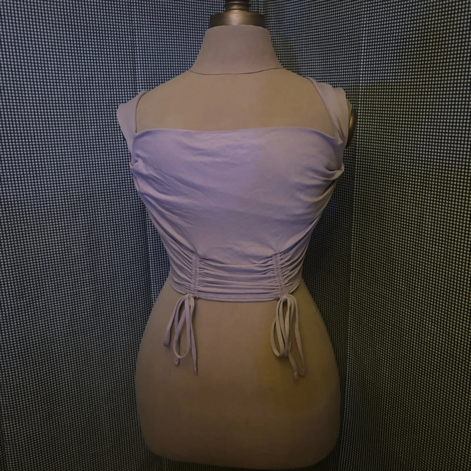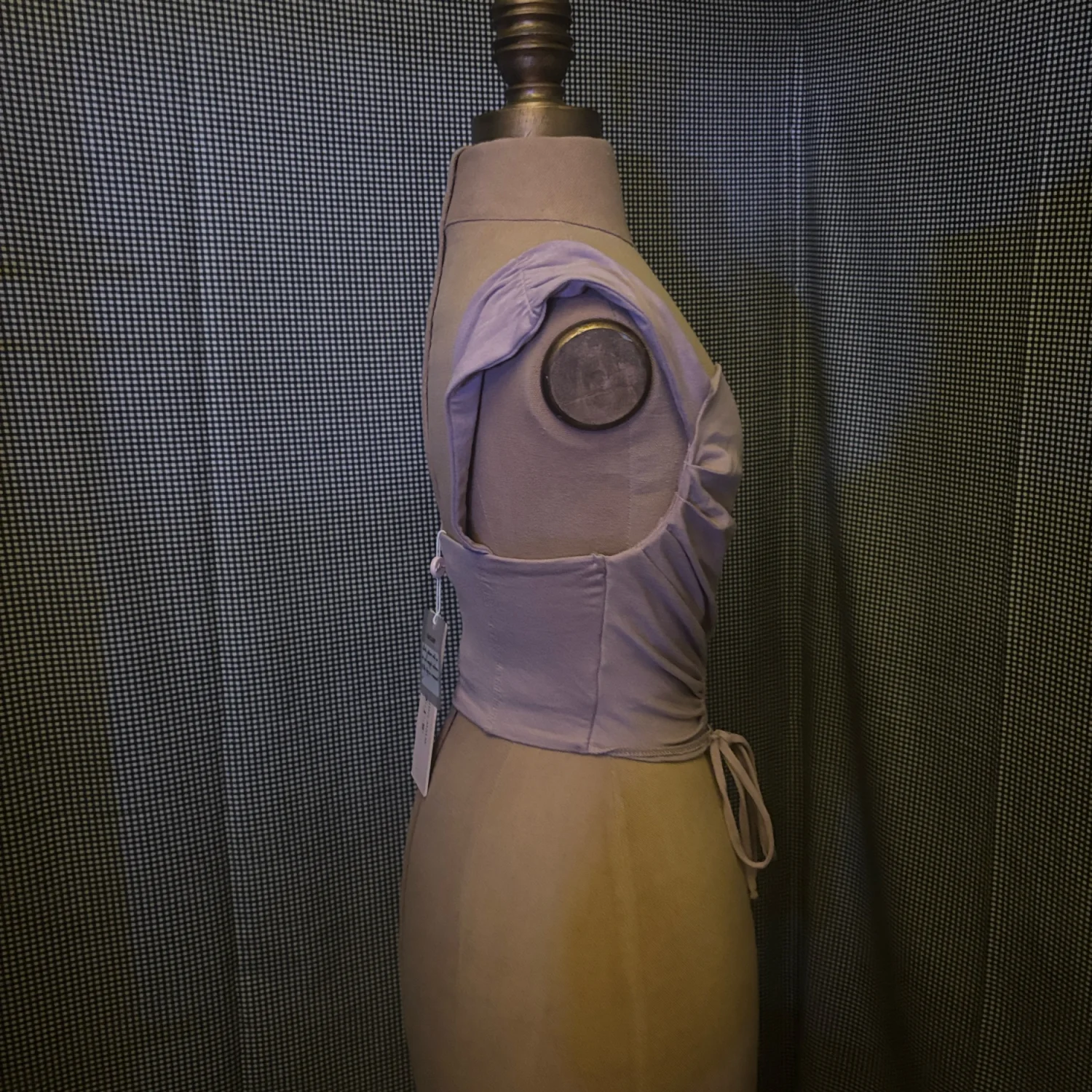 Style: Stylish crop tank top with adjustable ruching at the waist. Soft fabric and square neckline for a flattering fit. Perfect for layering or wearing solo in warm Color: Lilac Size: 2 Armpit: 12" Length: 14" Condition: New with tags 92% Modal 8% Elastane Machine wash cold, no tumble dry