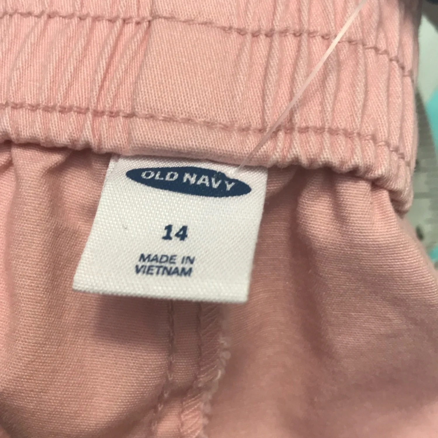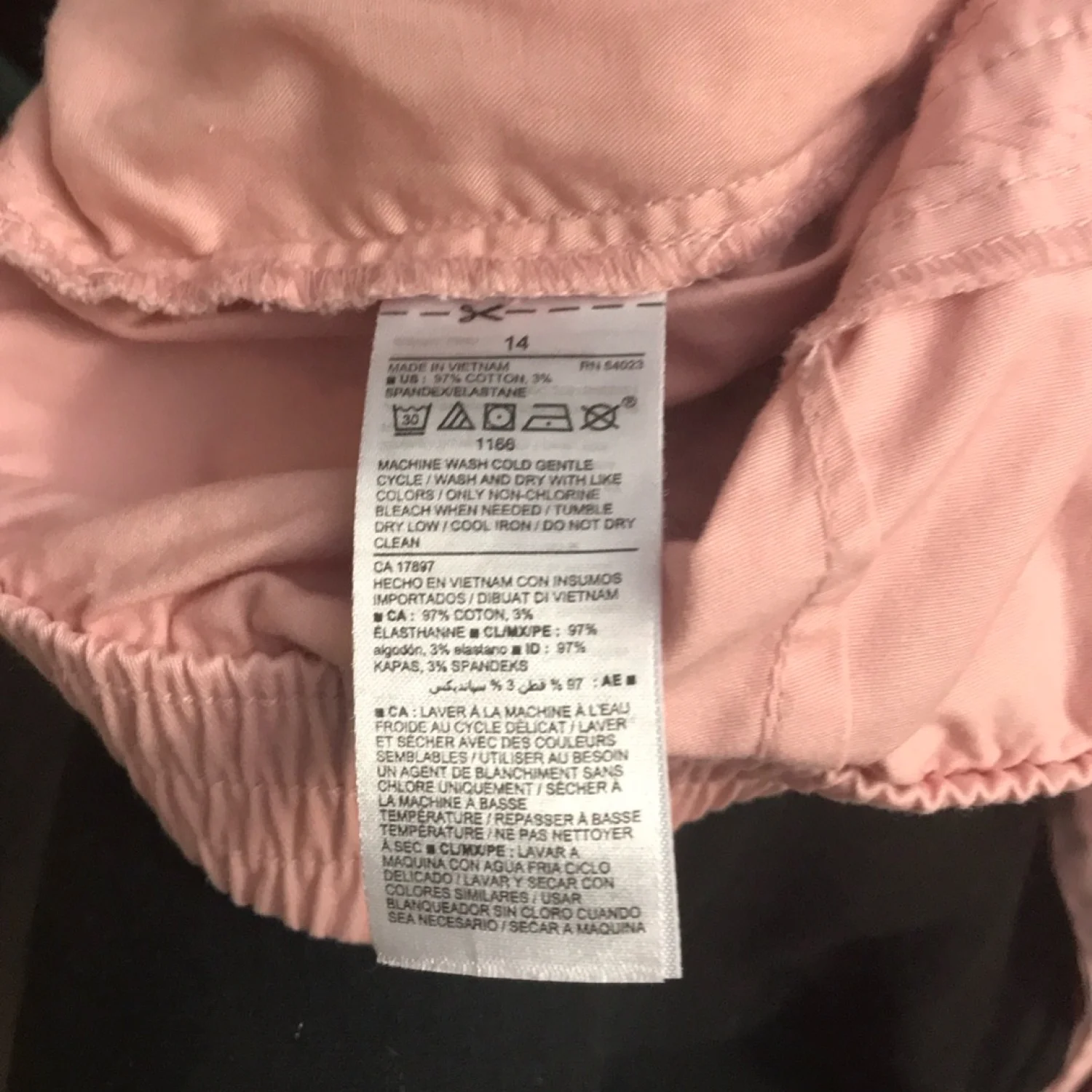 Style: Two pocket drawstring two faux pockets on back Color: Pink Size: 14 Waist: 18” Inseam: 27” Condition: New with tag 97 Cotton 2% Spandex Machine wash cold