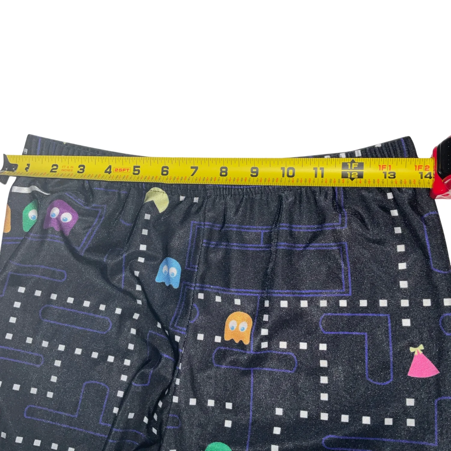 Style: PacMan print modern eggings from the 80s game Color: Black/ Purple/Yellow Size: S/M (No size tag check measurements please) Waist: 14” Rise:11” Inseam: 28” Condition: Good 88% polyester 12% Elastane Hand wash