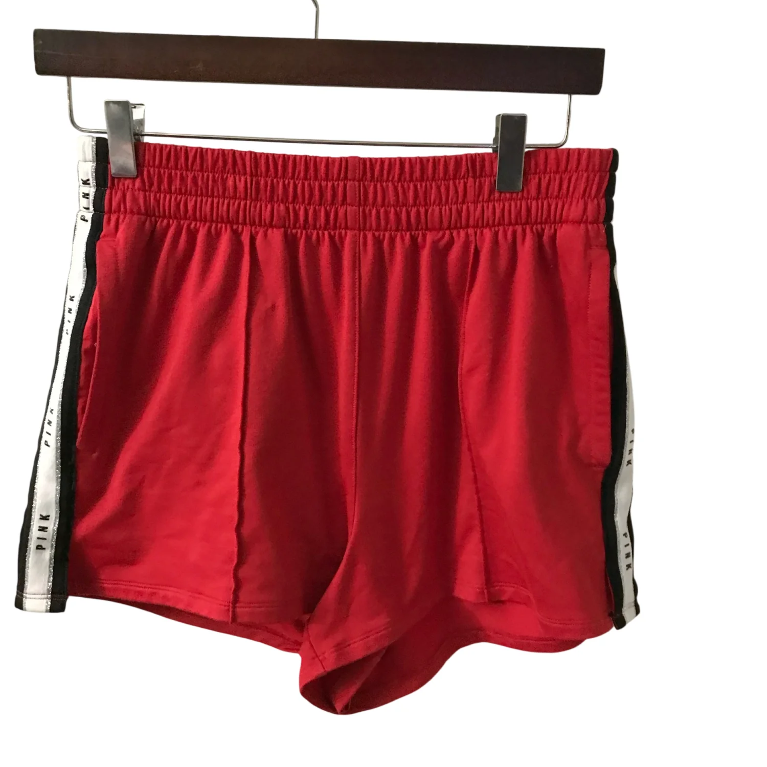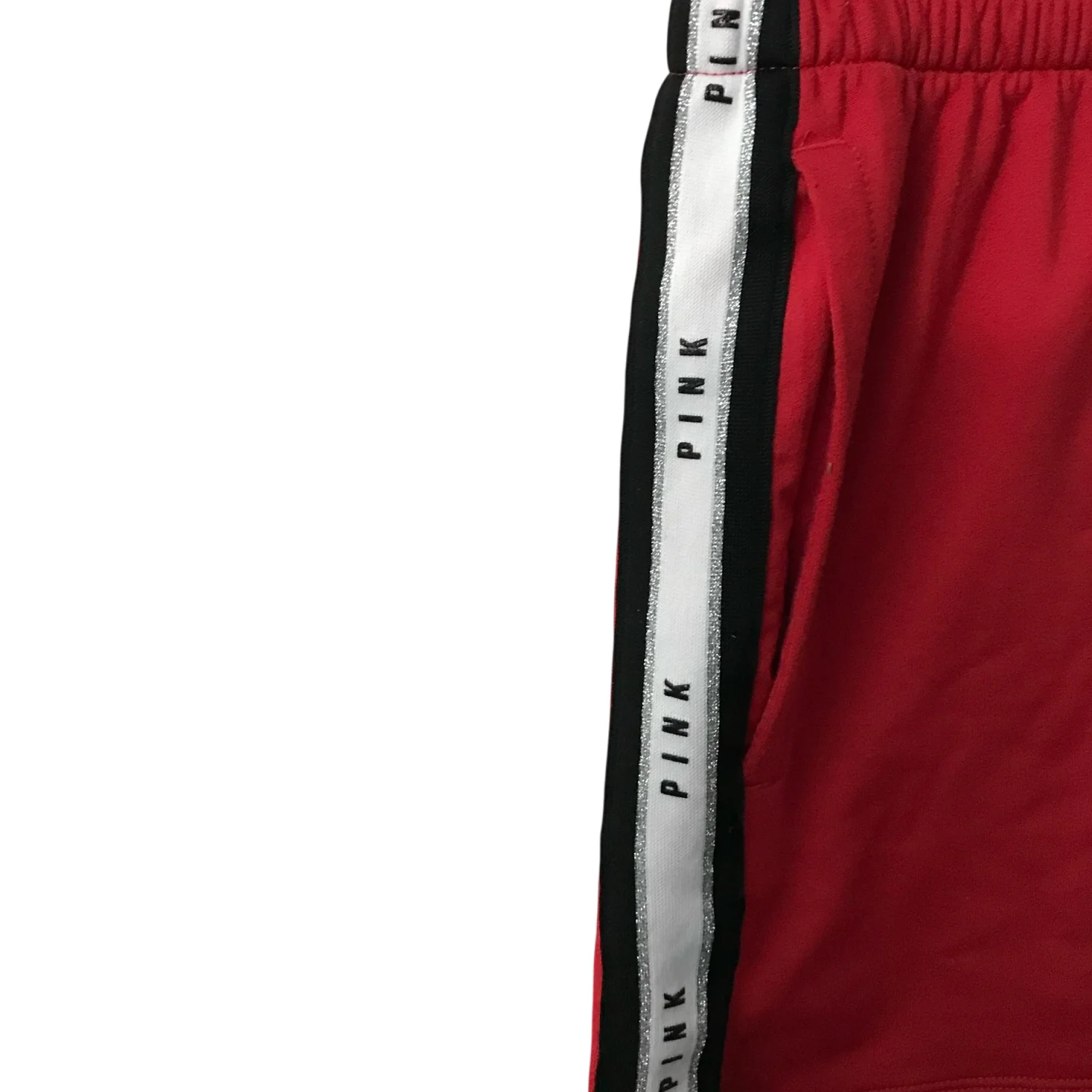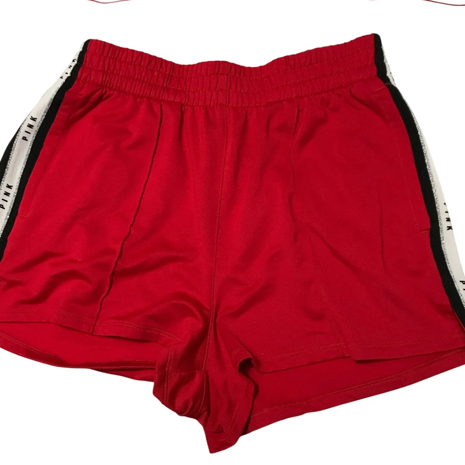 PINK Victoria Secret Spell Out Red Sparkle Track Short L Activewear Athleisure