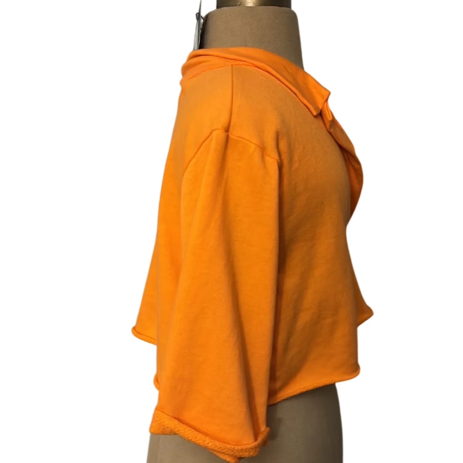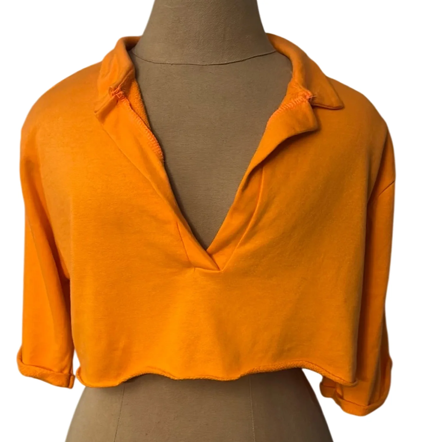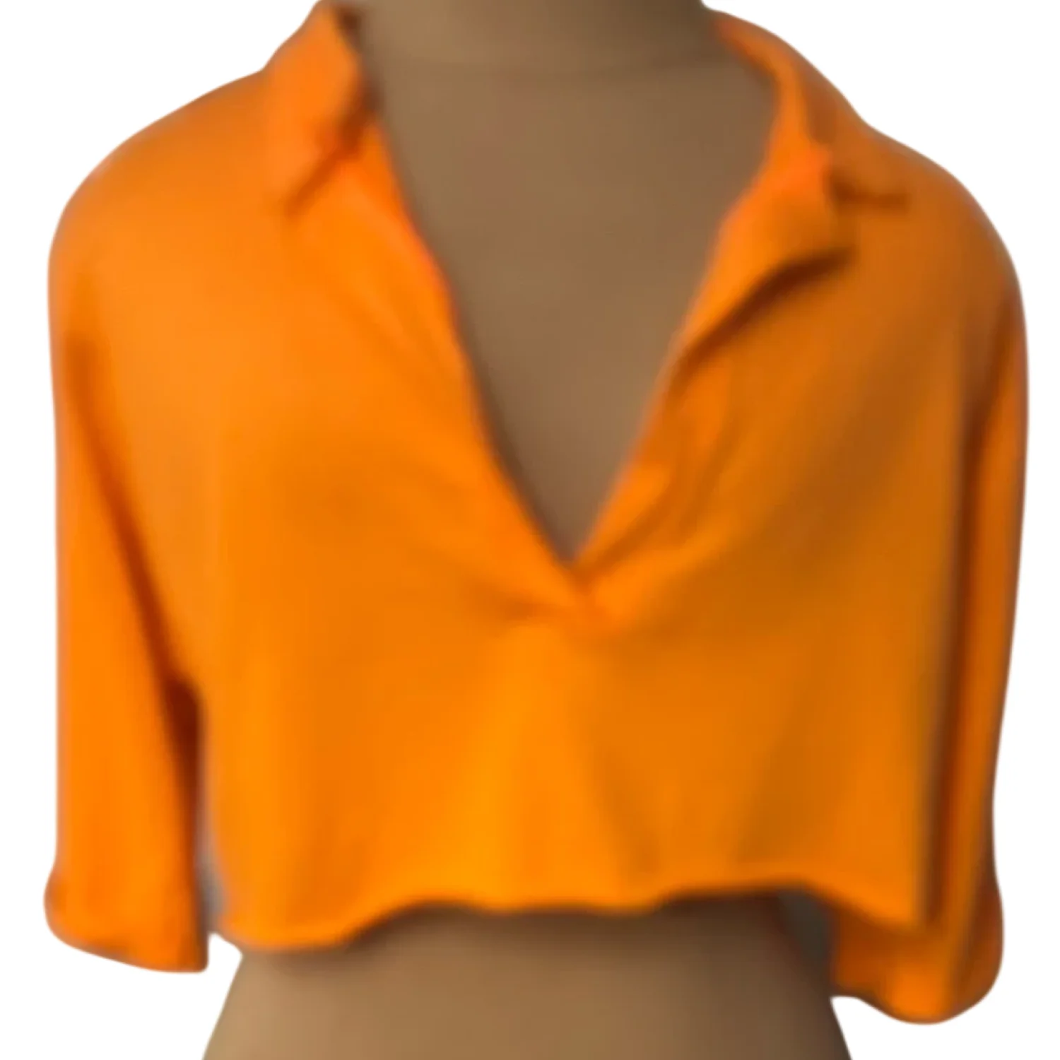Style: Shape Orange Sweat Crop v-neck rolled hem top Color: Orange Size: 6 Armpit: 14” Length: 19” Condition: New 100% Cotton Hand wash only