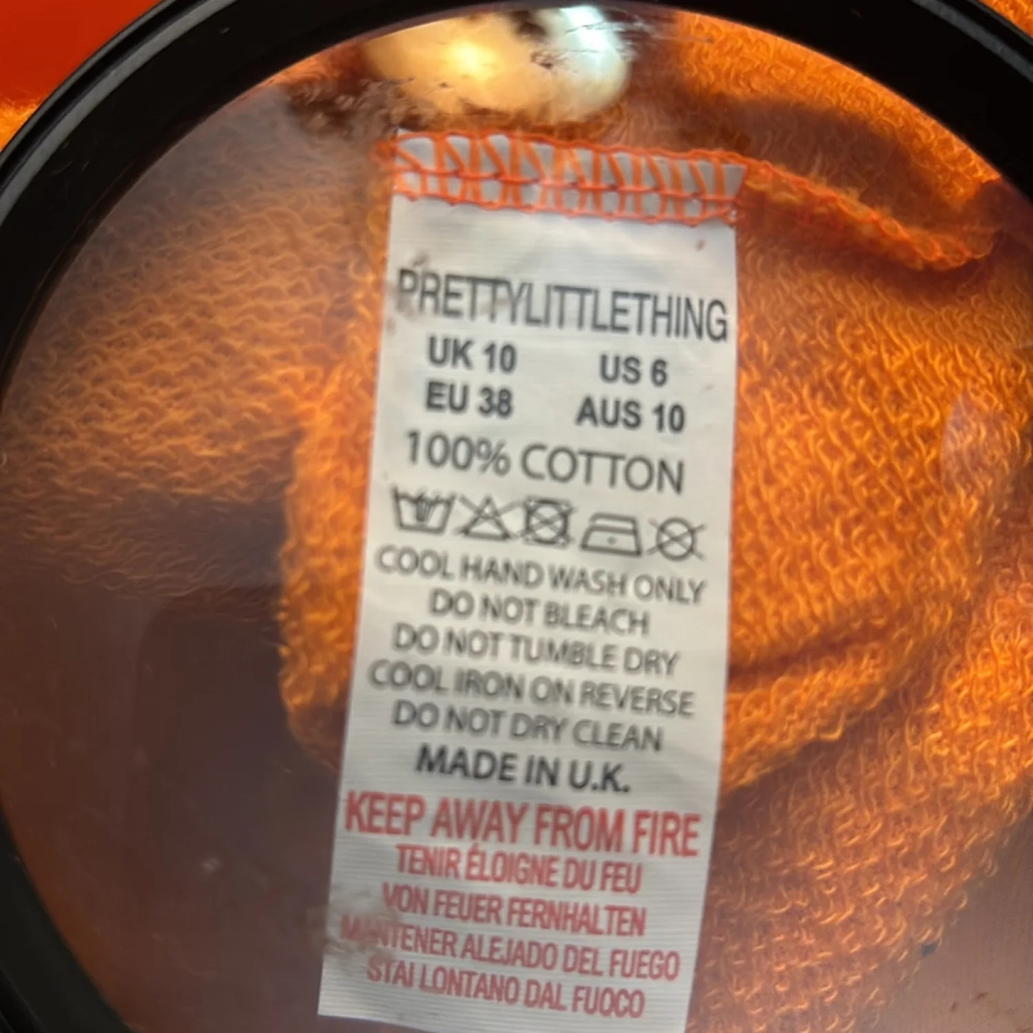 PLT PrettyLittleThing Shape Orange Sweat Crop Sz 6 Gorpcore Athleisure Exercise