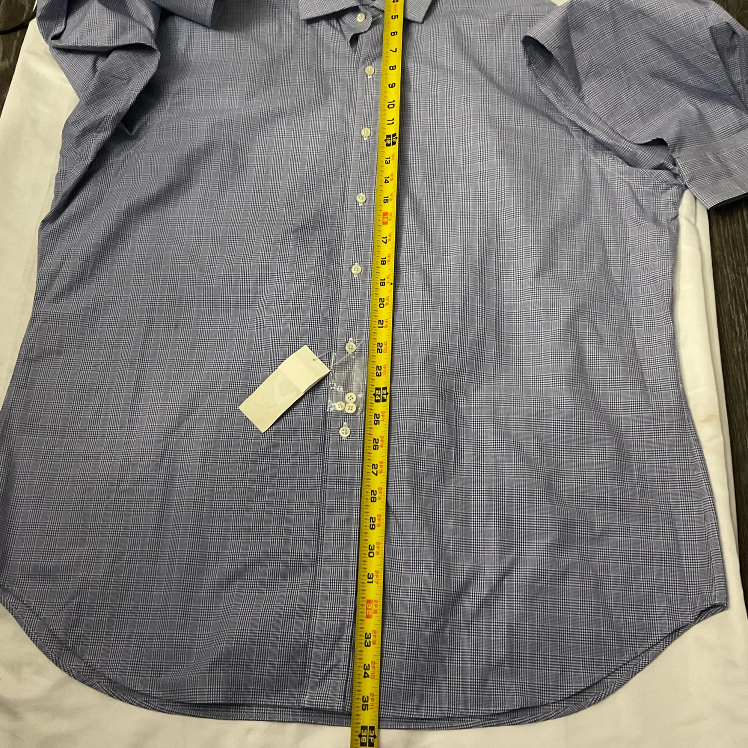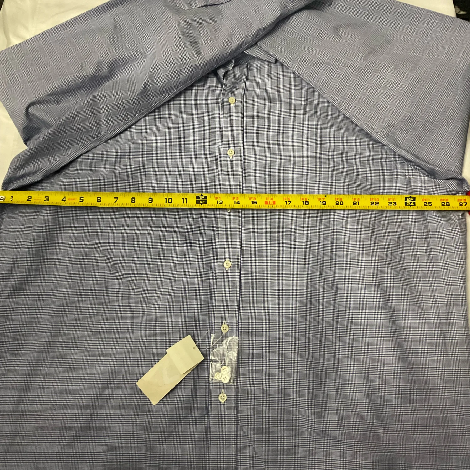 Style: Regent button down long sleeve dress shirt Color: Blue/White Size: 18/XXL Armpit: 27" Length: 36" Sleeve: 25" Condition: Has small stain as noted in pictures, New with conditions 100% Cotton Machine wash warm