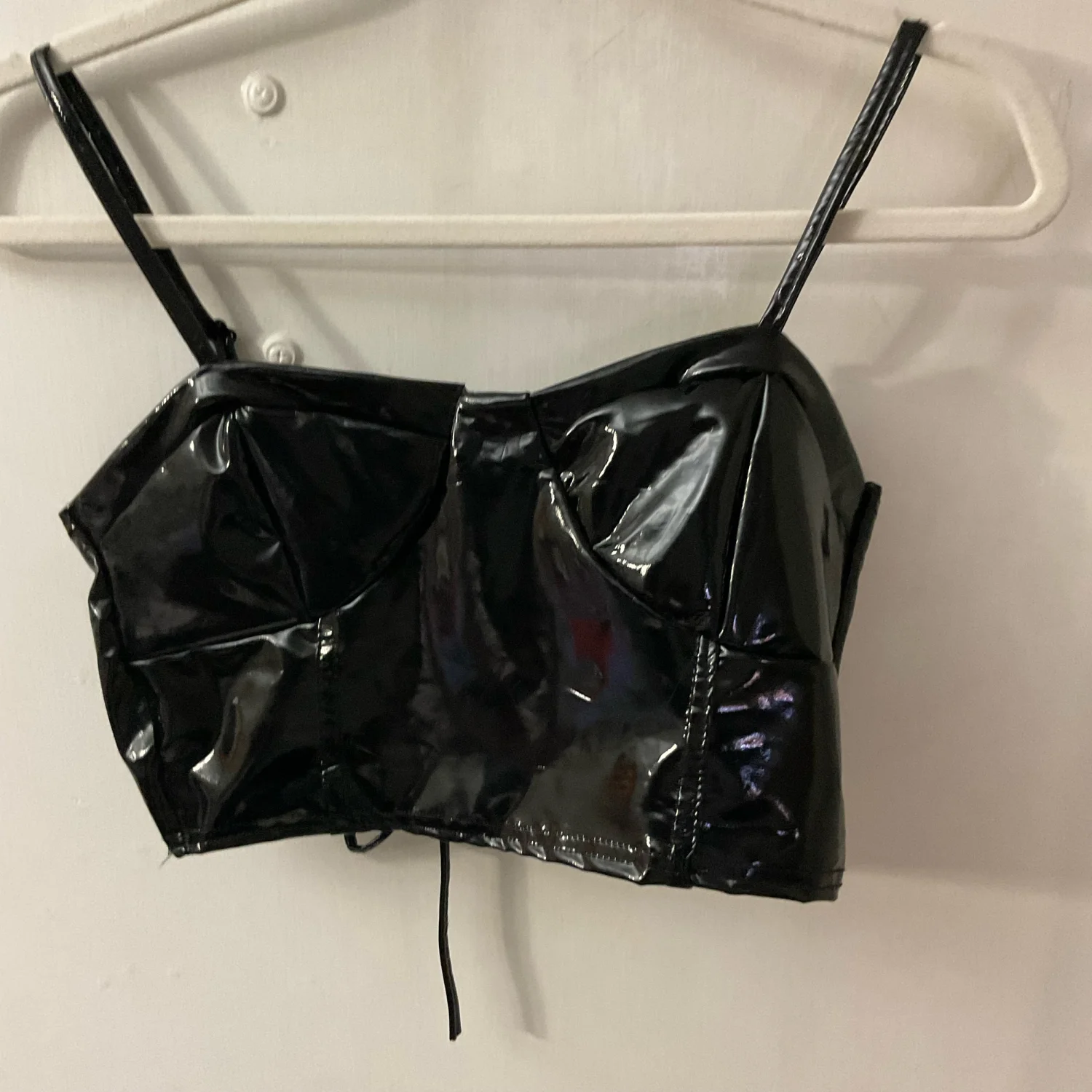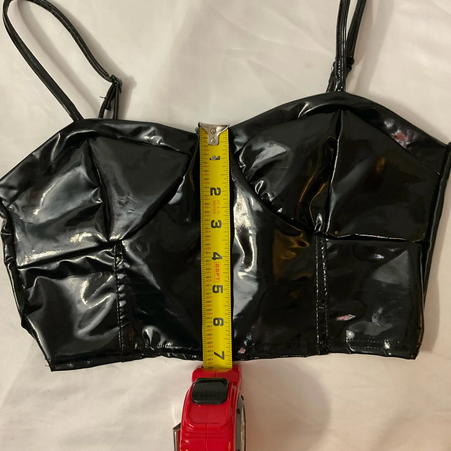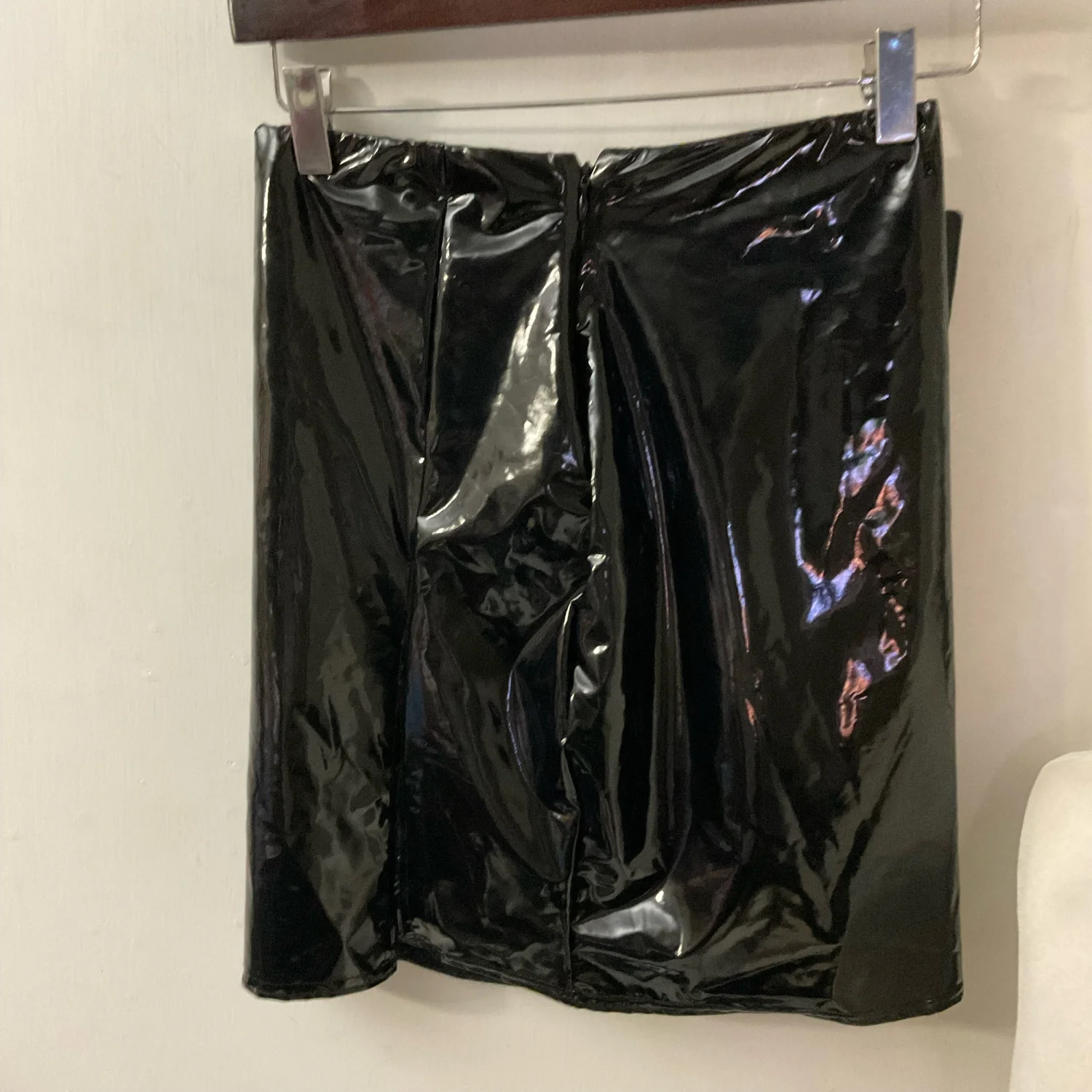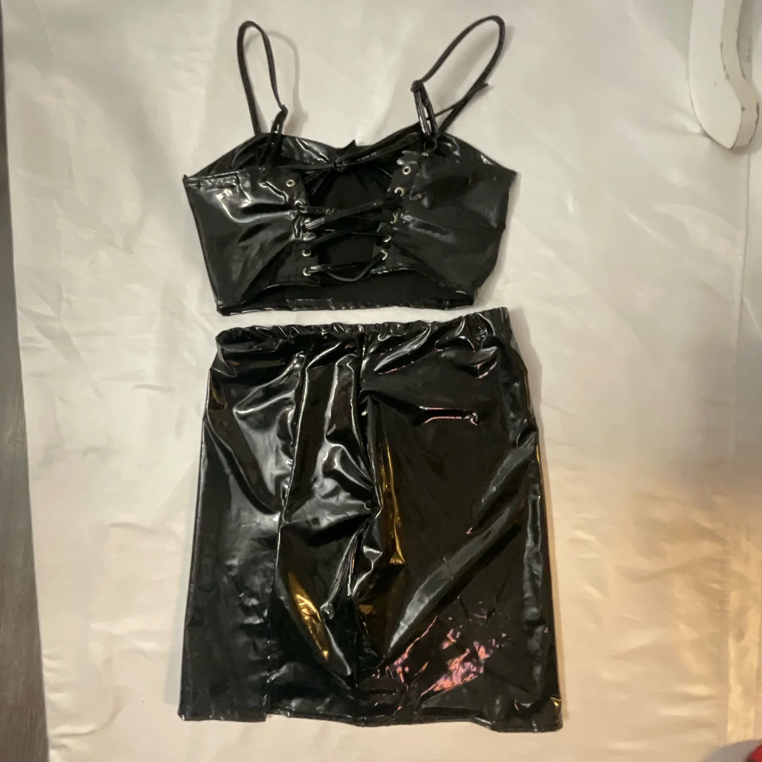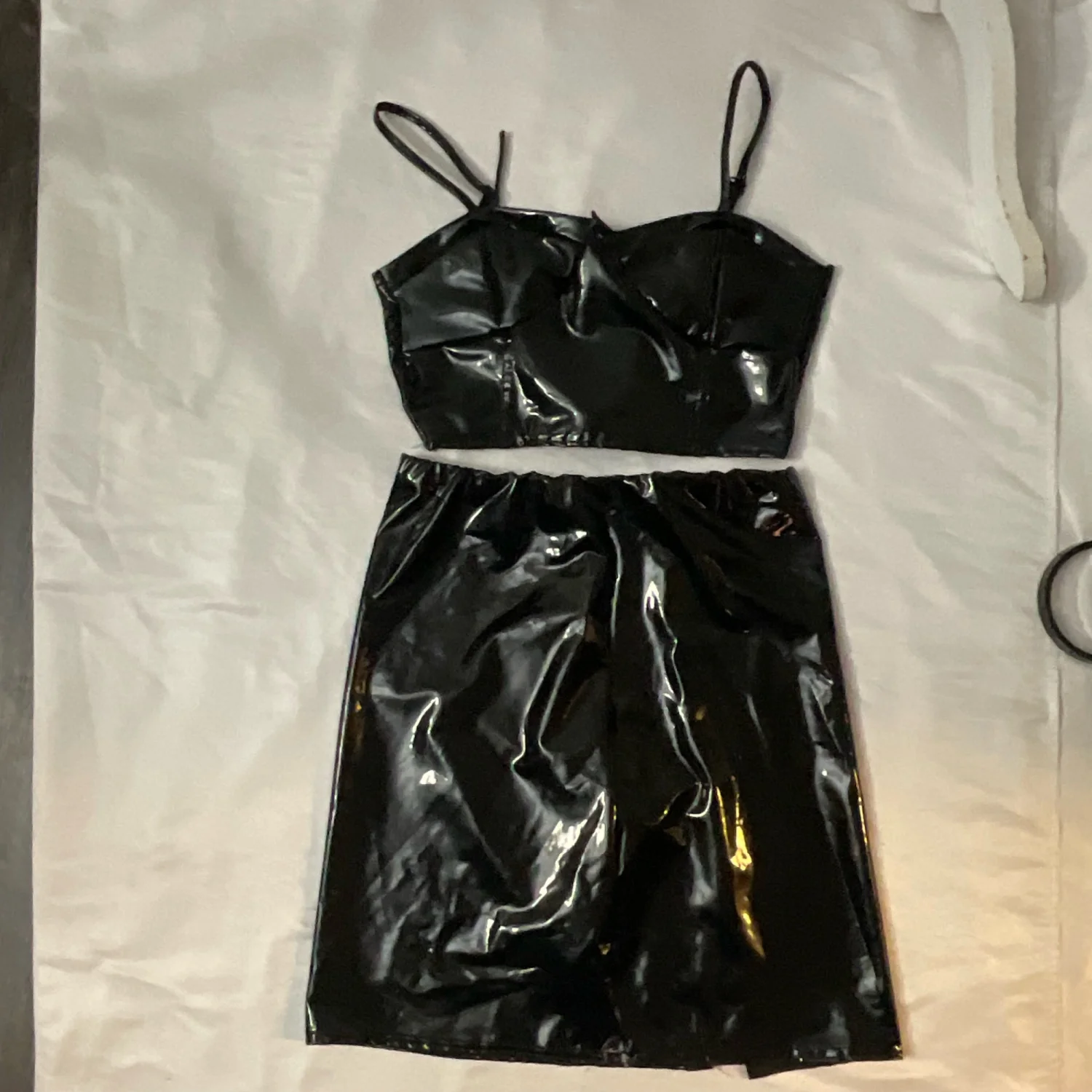 PrettyLittleThing Black Vinyl Extreme Two Piece Set 4/6 Goth Rocker Cosplay Punk