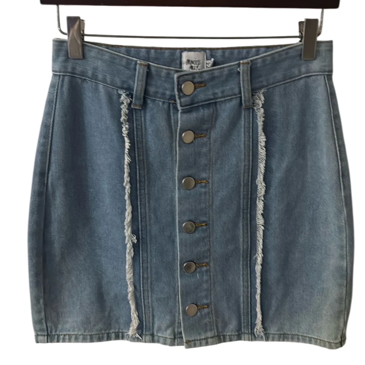 Princess Polly Mariya Fray Denim Mini Skirt Size 2 Blue Concert Cowgirl Festival