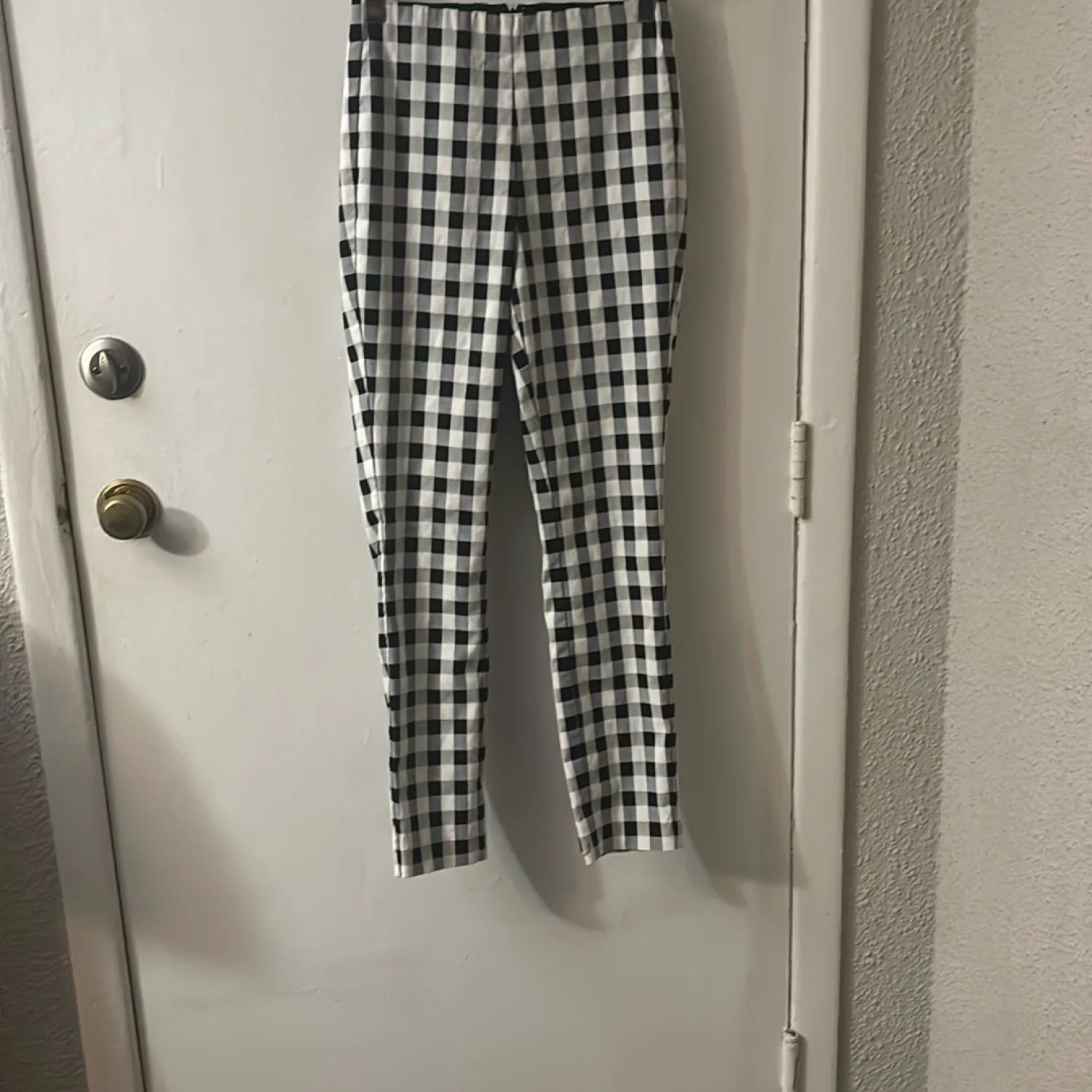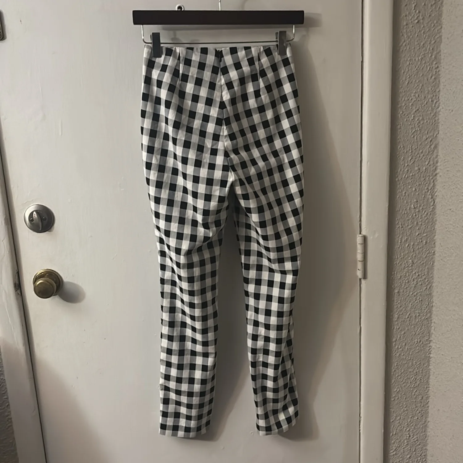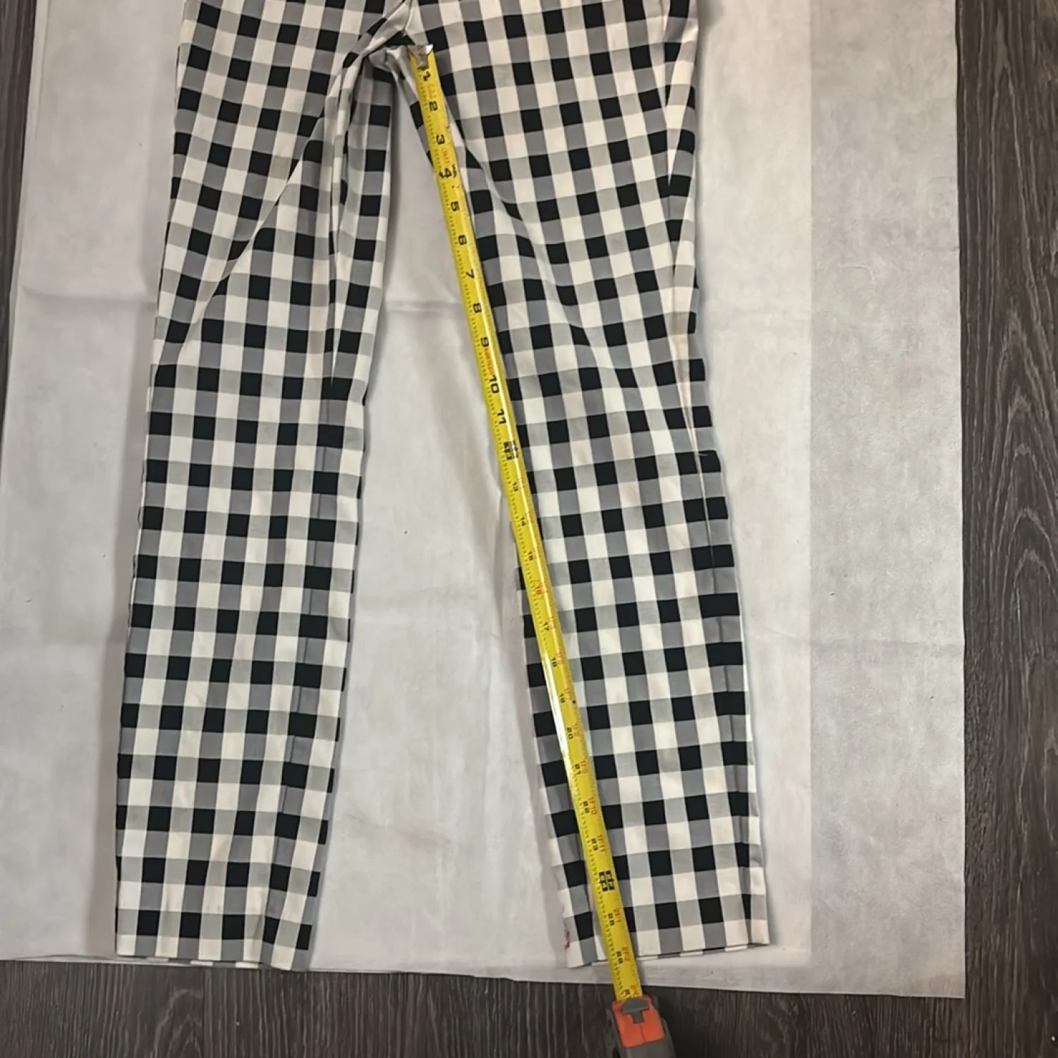 Style :Simone Gingham high waist pull on lightweight dress cigarette style pants. Hidden back zip closure Color: Black/White Size: 2 Waist: 12” Rise: 12” Inseam: 26” Condition: Good 70% cotton, 26% polyamide 4% elastane Dry Clean
