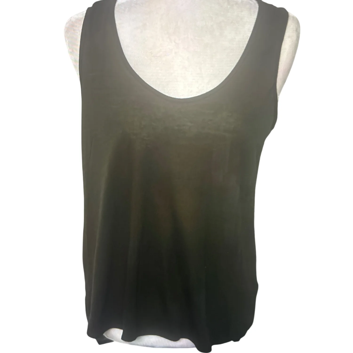 Style: High low sheer camo back tank Color: Green Size: L Armpit: 18” Length: 20”(Front) 26”(Back) Condition: Good, spot as pictured 100% Polyester Machine wash cold