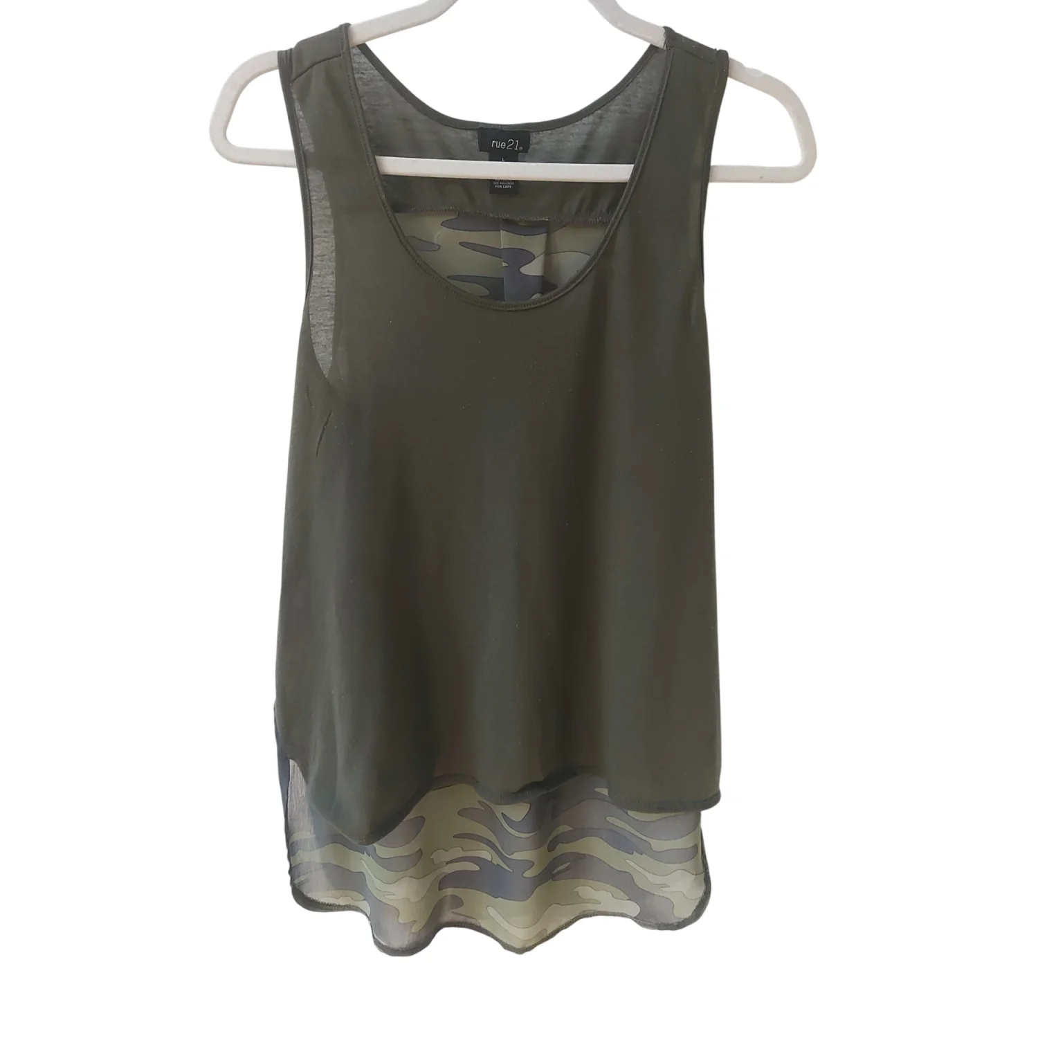 Rue21 Sheer Green Camo Tank L Casual Dopamine Boho Streetwear Casual Steampunk