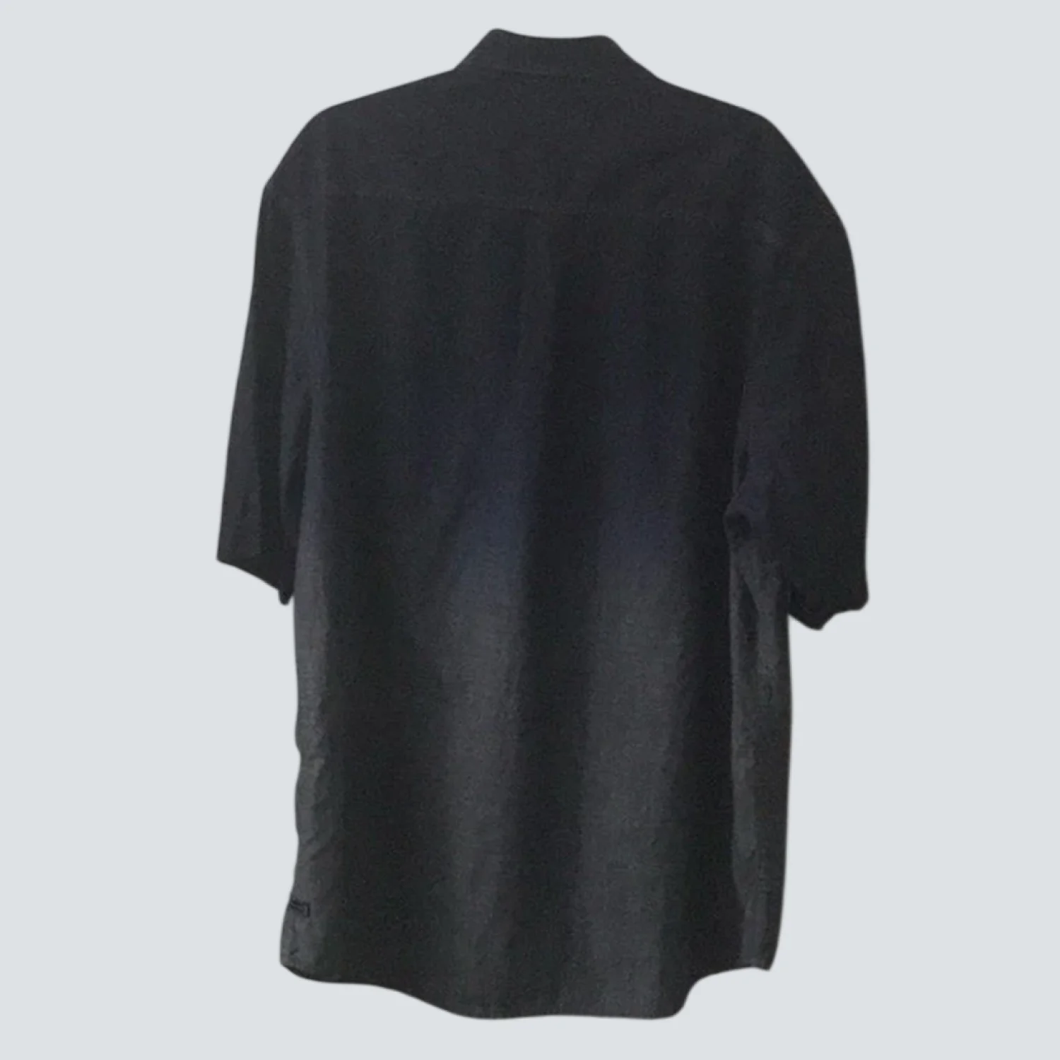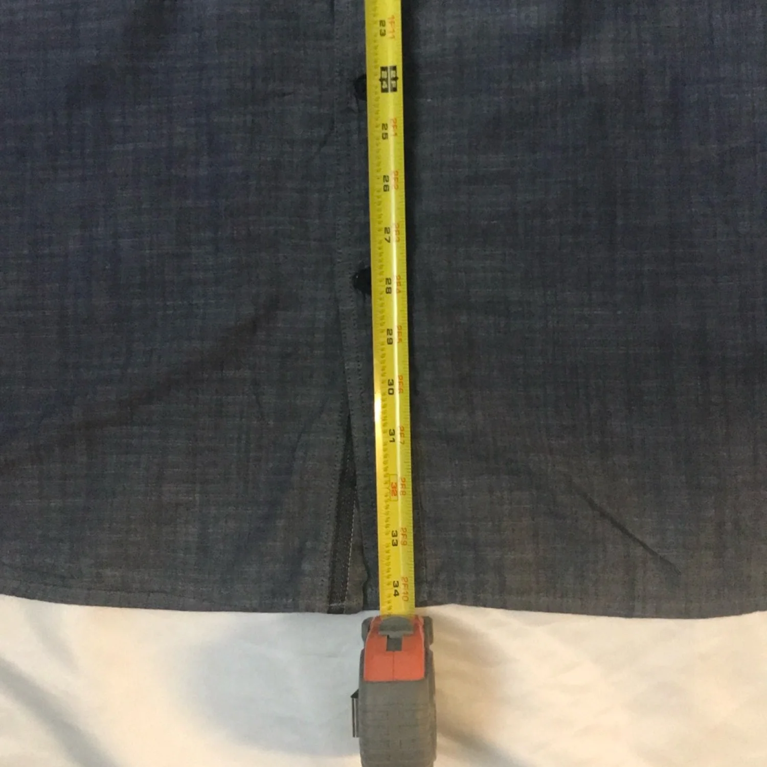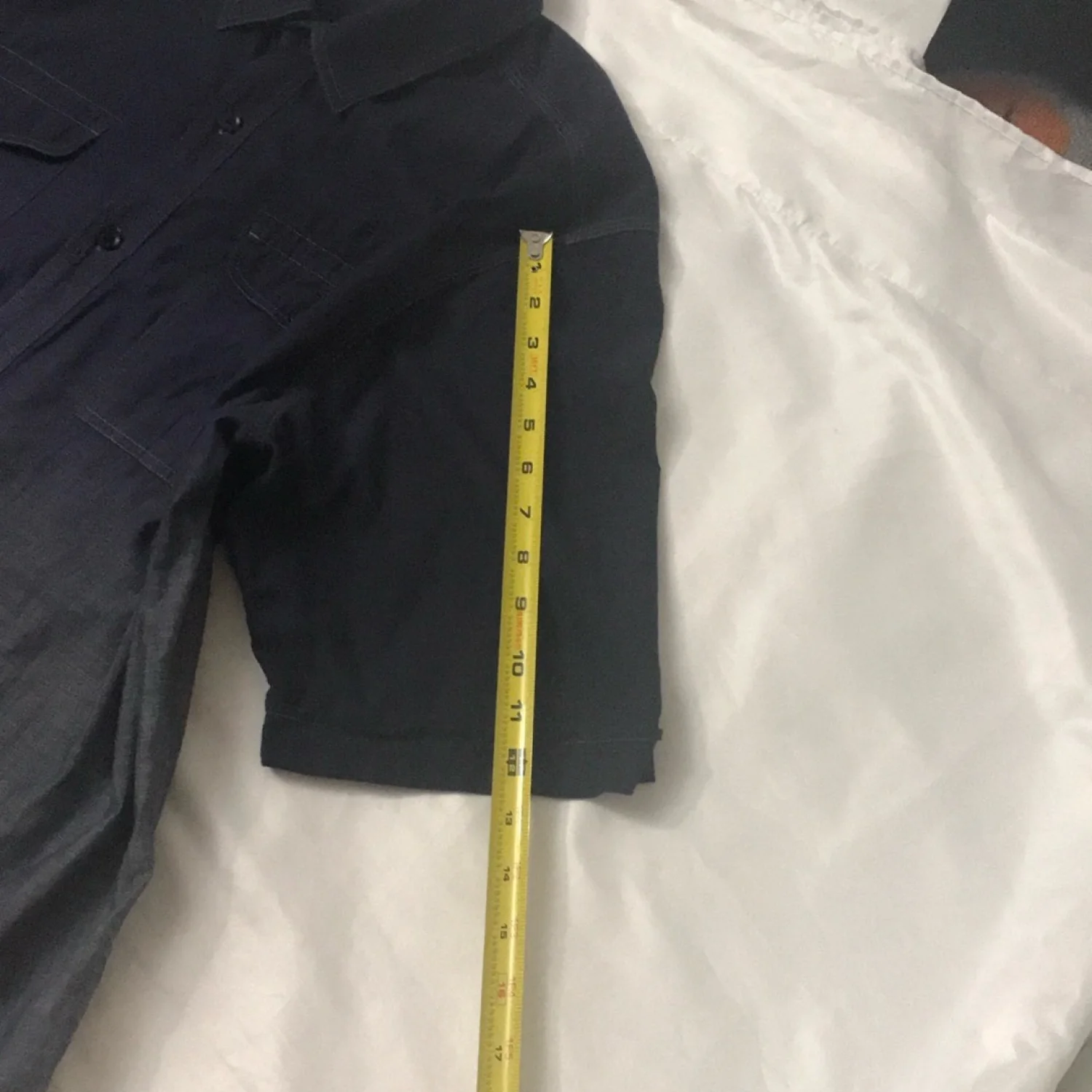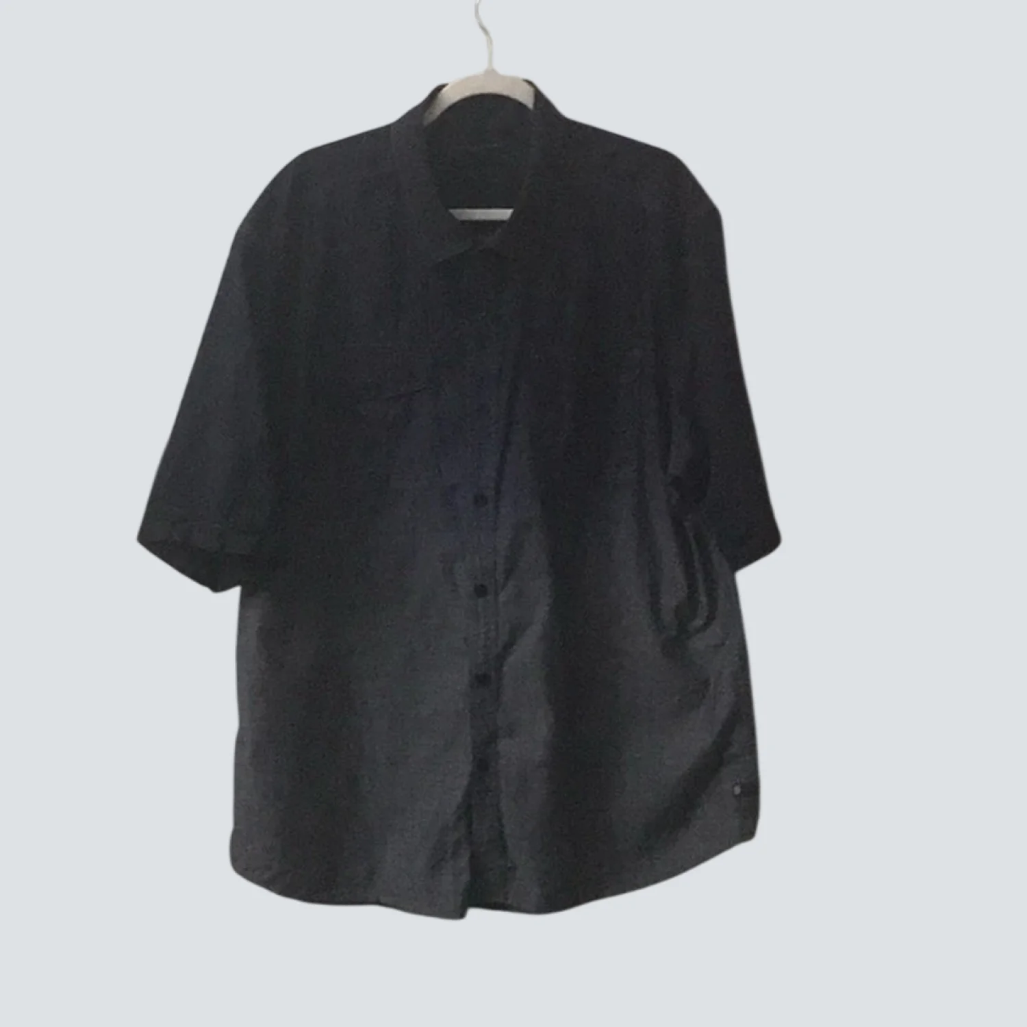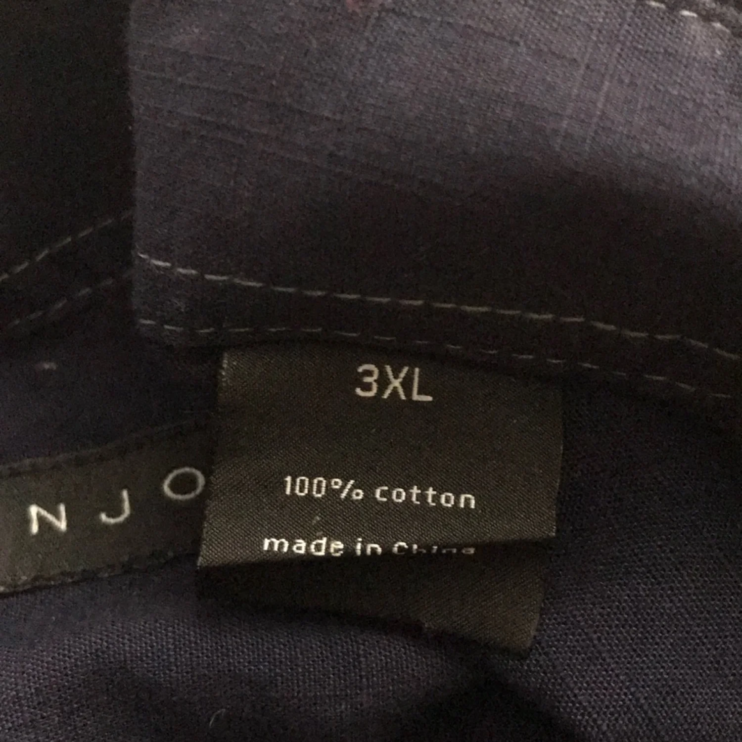 Style:: Button down, short sleeve shirt Color: Blue Size: 3X 24” Armpit to Armpit 34”Length Condition: Good 100% Cotton Machine wash cold