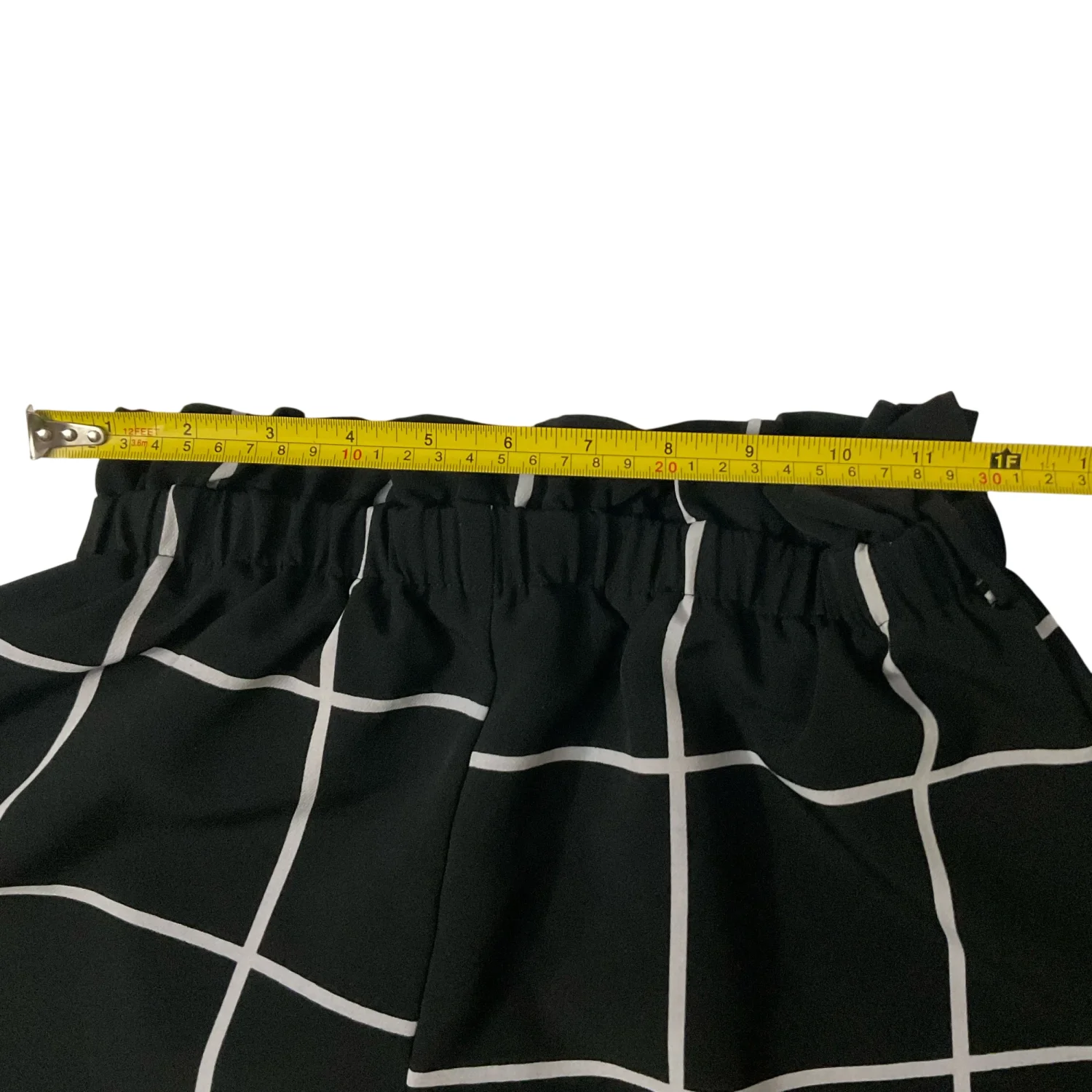 Style: Dress Shorts with windowpane design Color: Black/White Size: M Waist: 12” Length: 13” Condition: Good, belt is not included 100% Polyester Machine wash