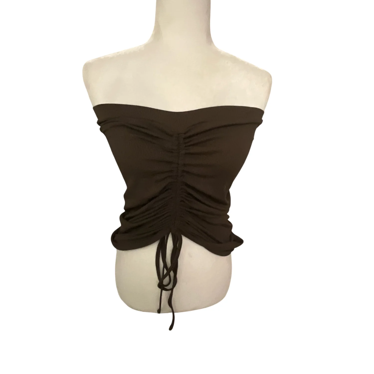 Shein Brown Sleeveless Ruched Tie Top S Casual Bohemian Coconut Girl Fairycore