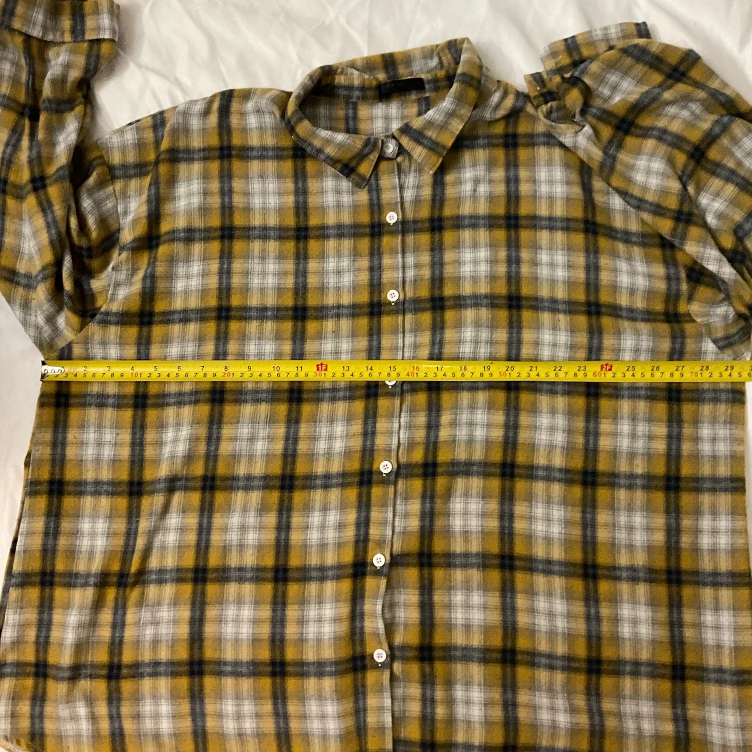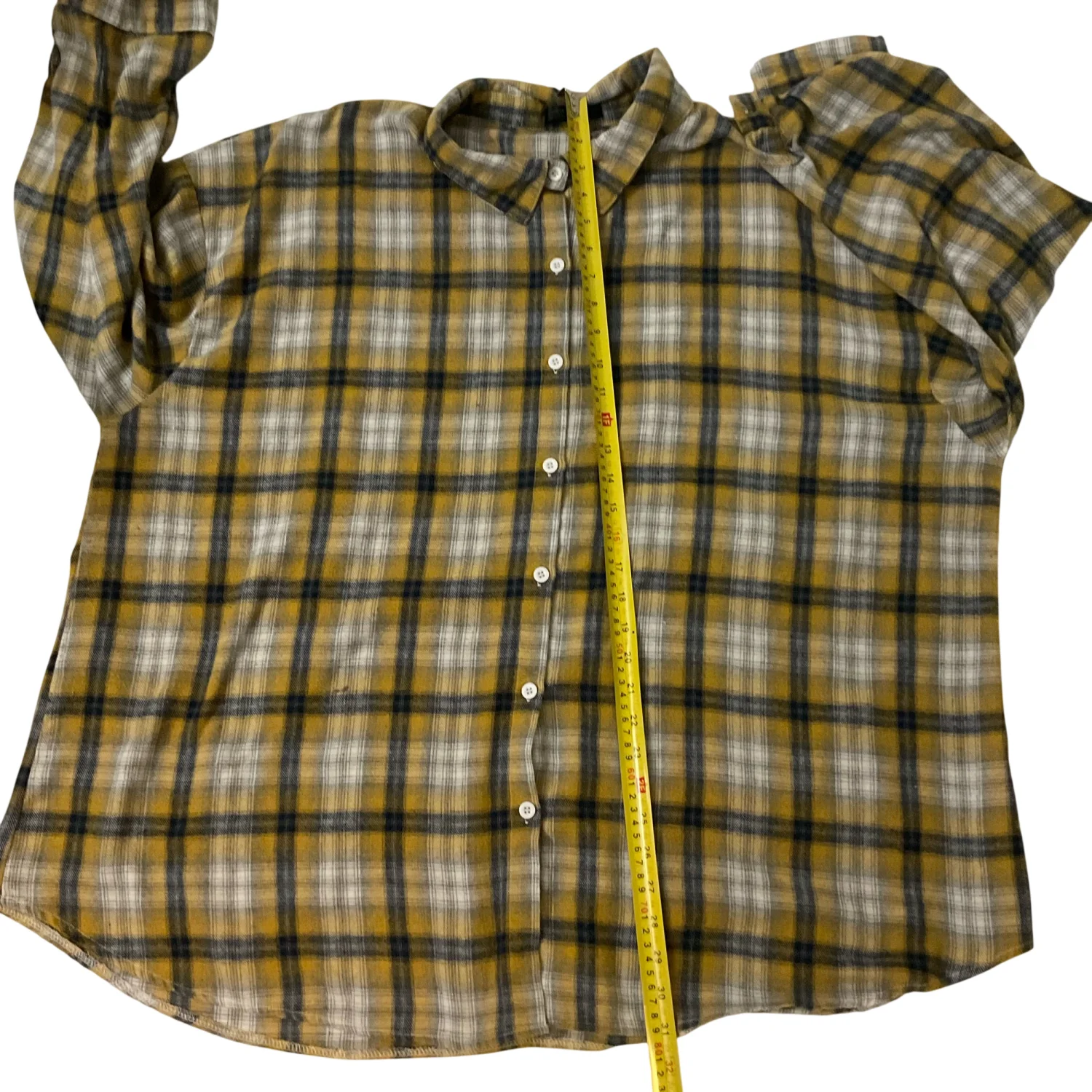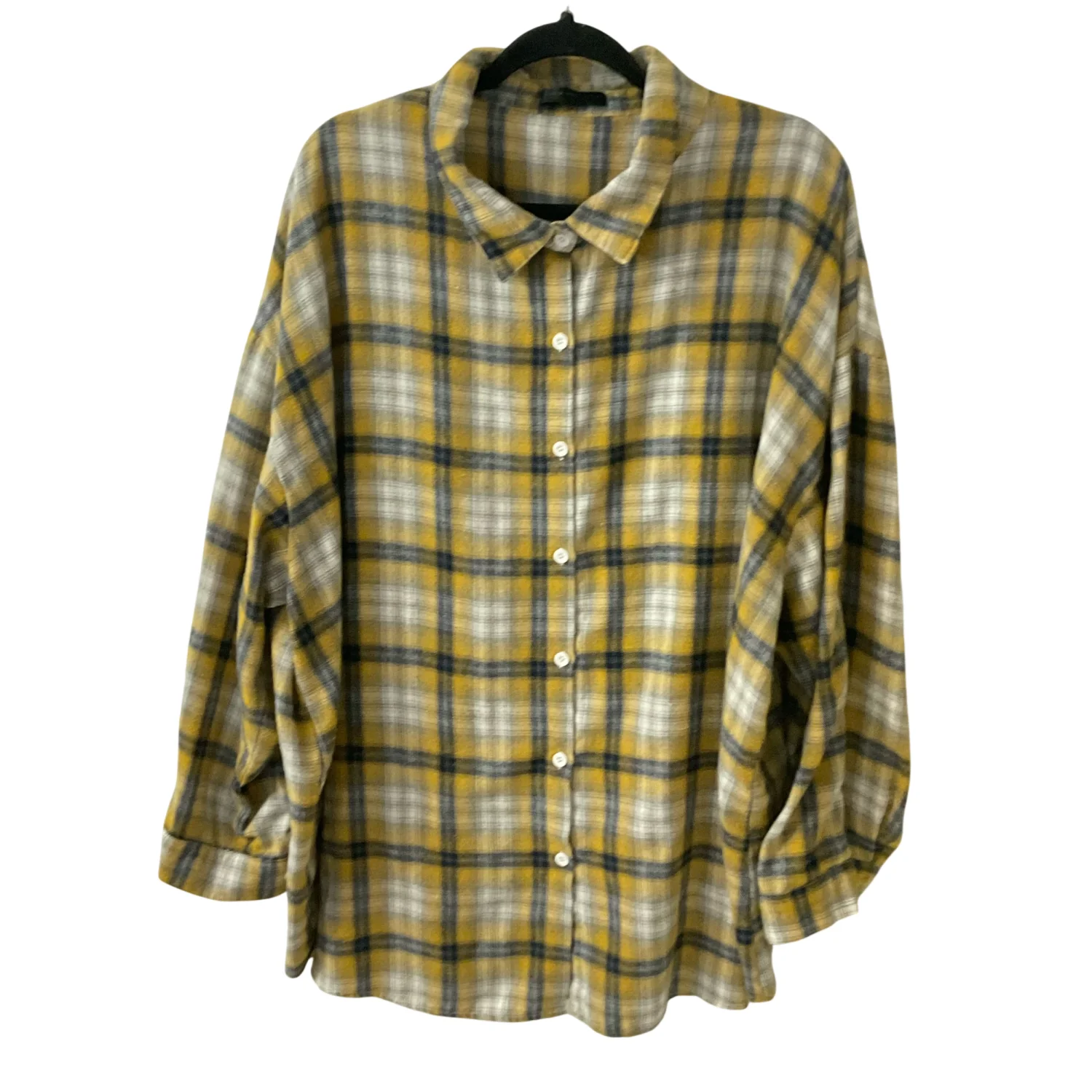 Style: Long sleeve button front top/shacket Color: Yellow/Black Size: 3XL Armpit: 30” Length: 31” Sleeve: 32” Condition : Good 100% Polyester Machine wash cold