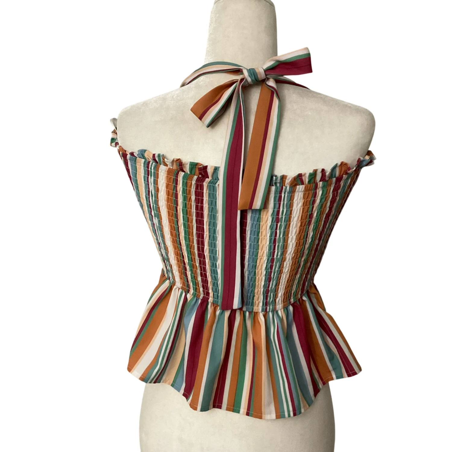 SHEIN Multi-Color Striped Halter Top M Dopamine Balletcore Boho Coquette Girl