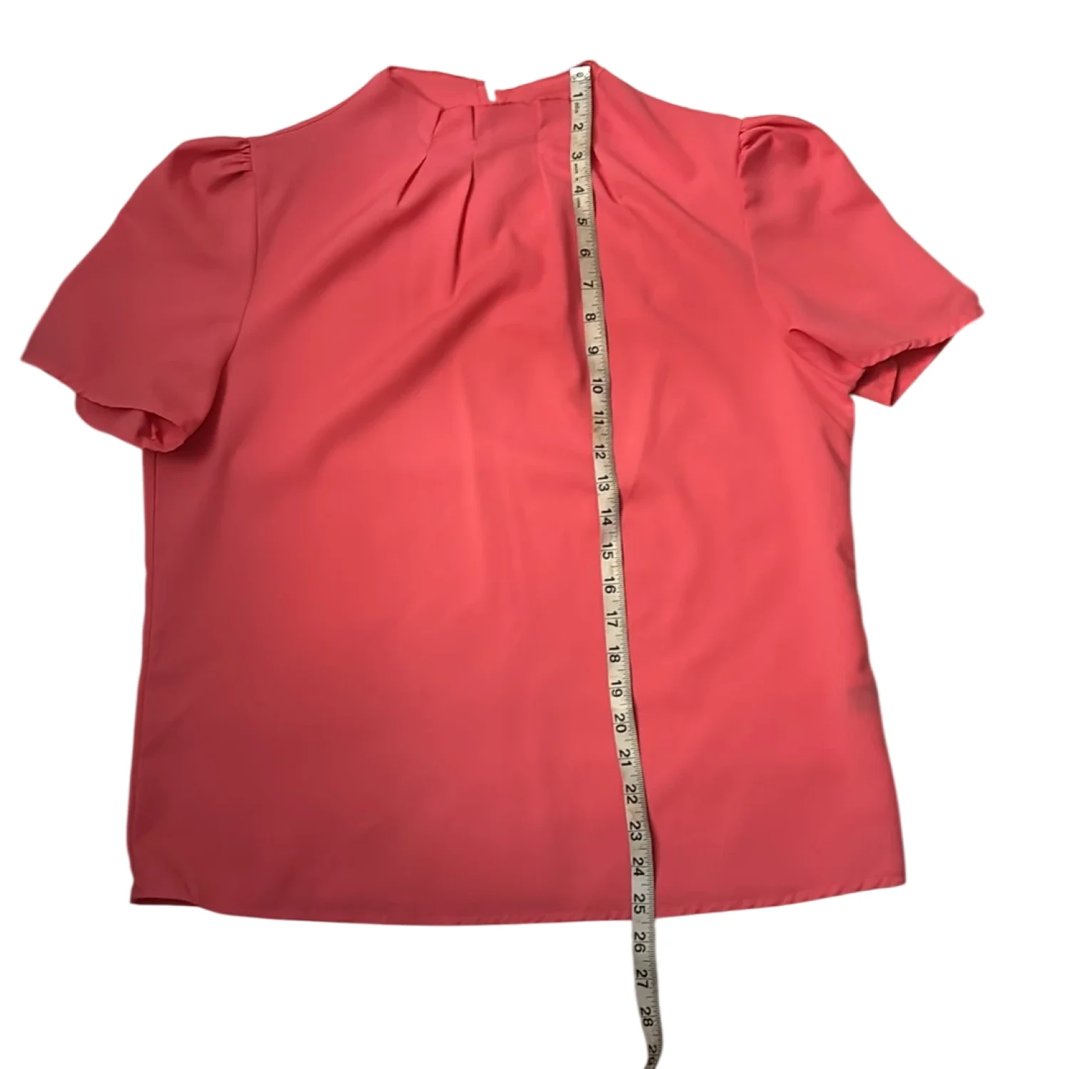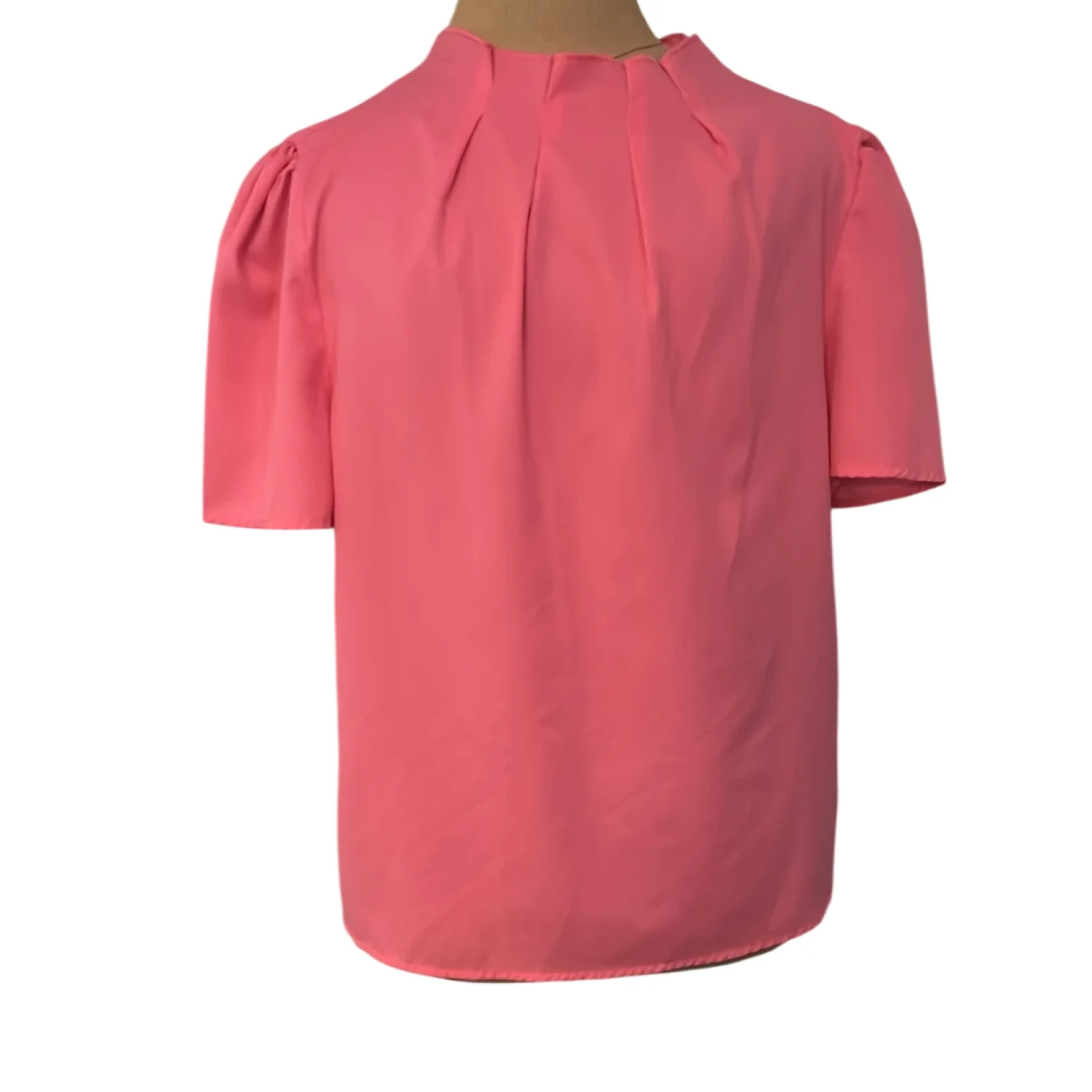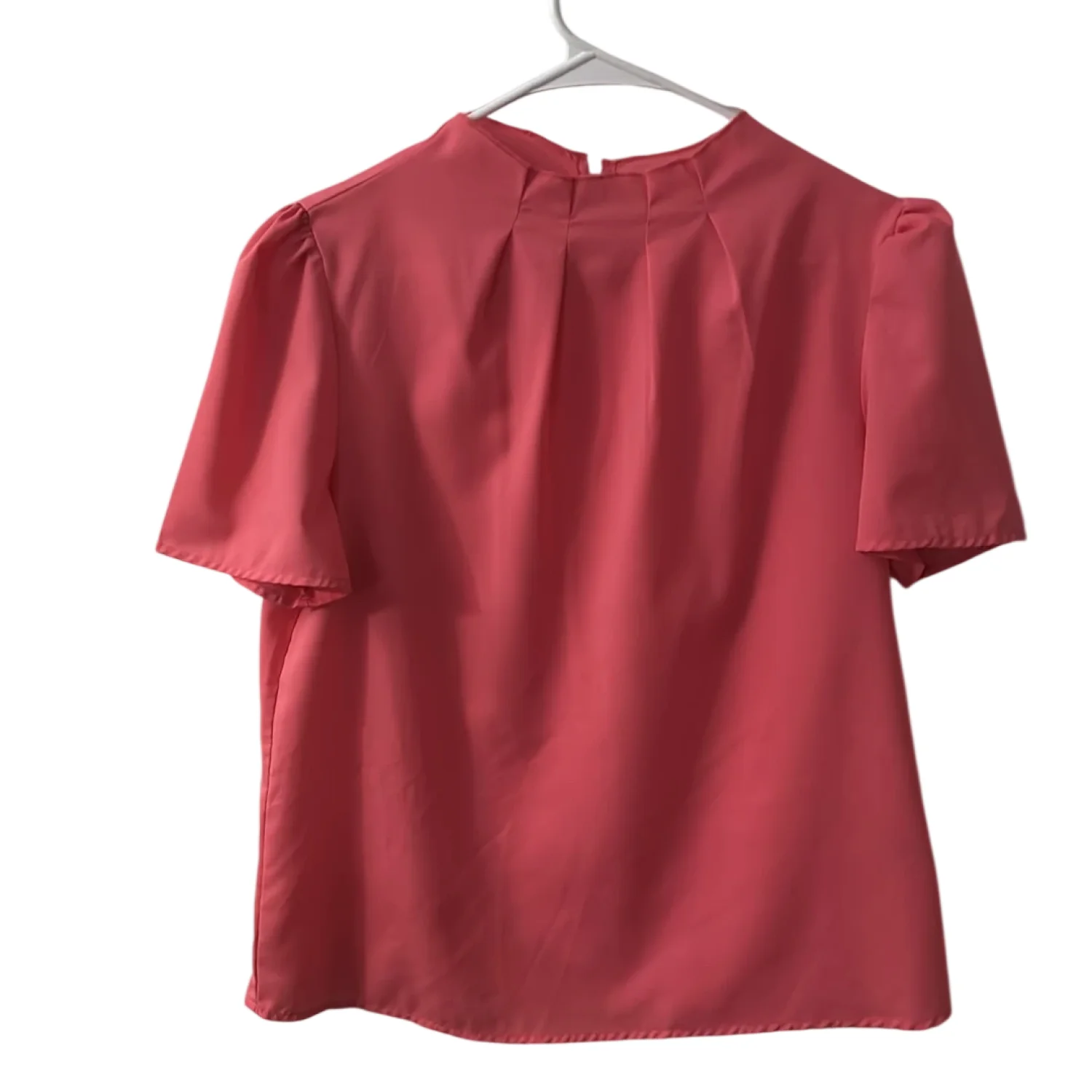 Style: Short sleeve dressy blouse with tuck pleats at neckline Color: Pink Size: L Armpit: 21” Length: 25” Condition: Good Machine wash
