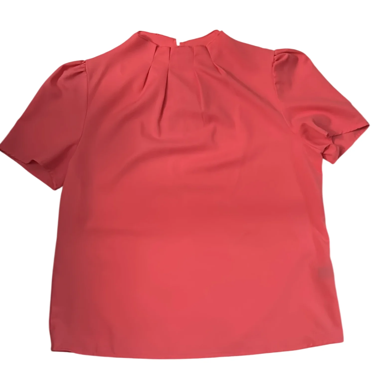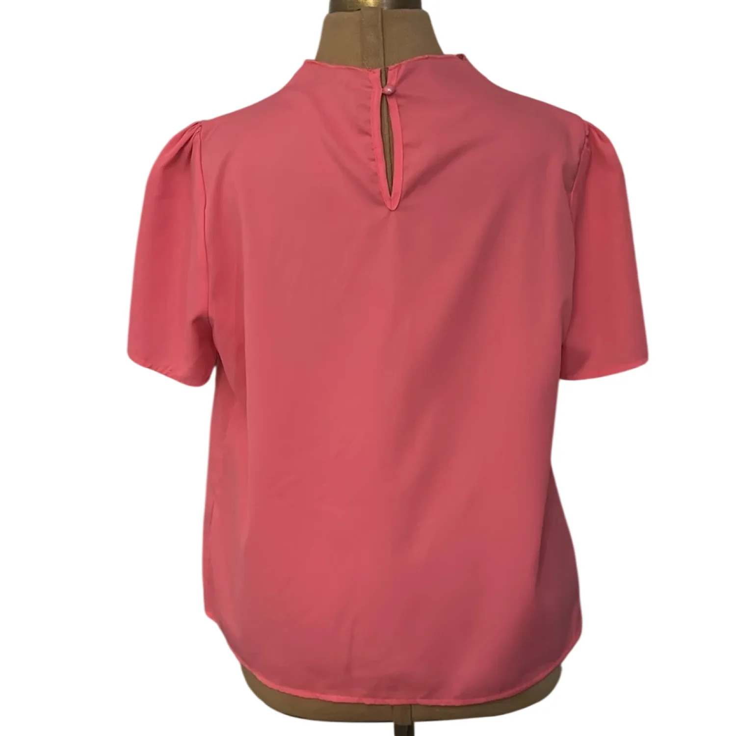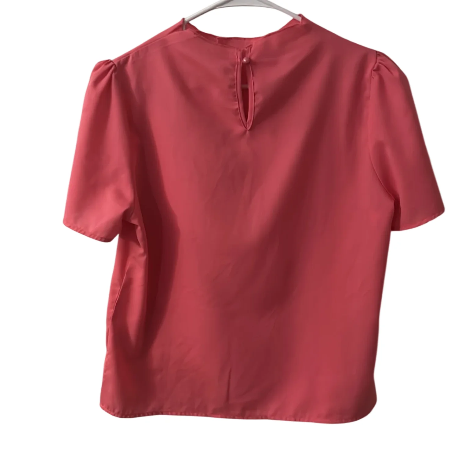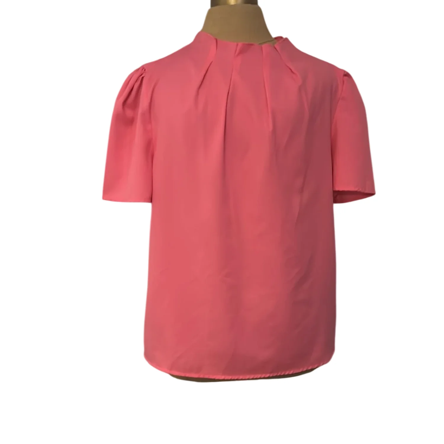 Style: Short sleeve dressy blouse with tuck pleats at neckline Color: Pink Size: L Armpit: 21” Length: 25” Condition: Good Machine wash