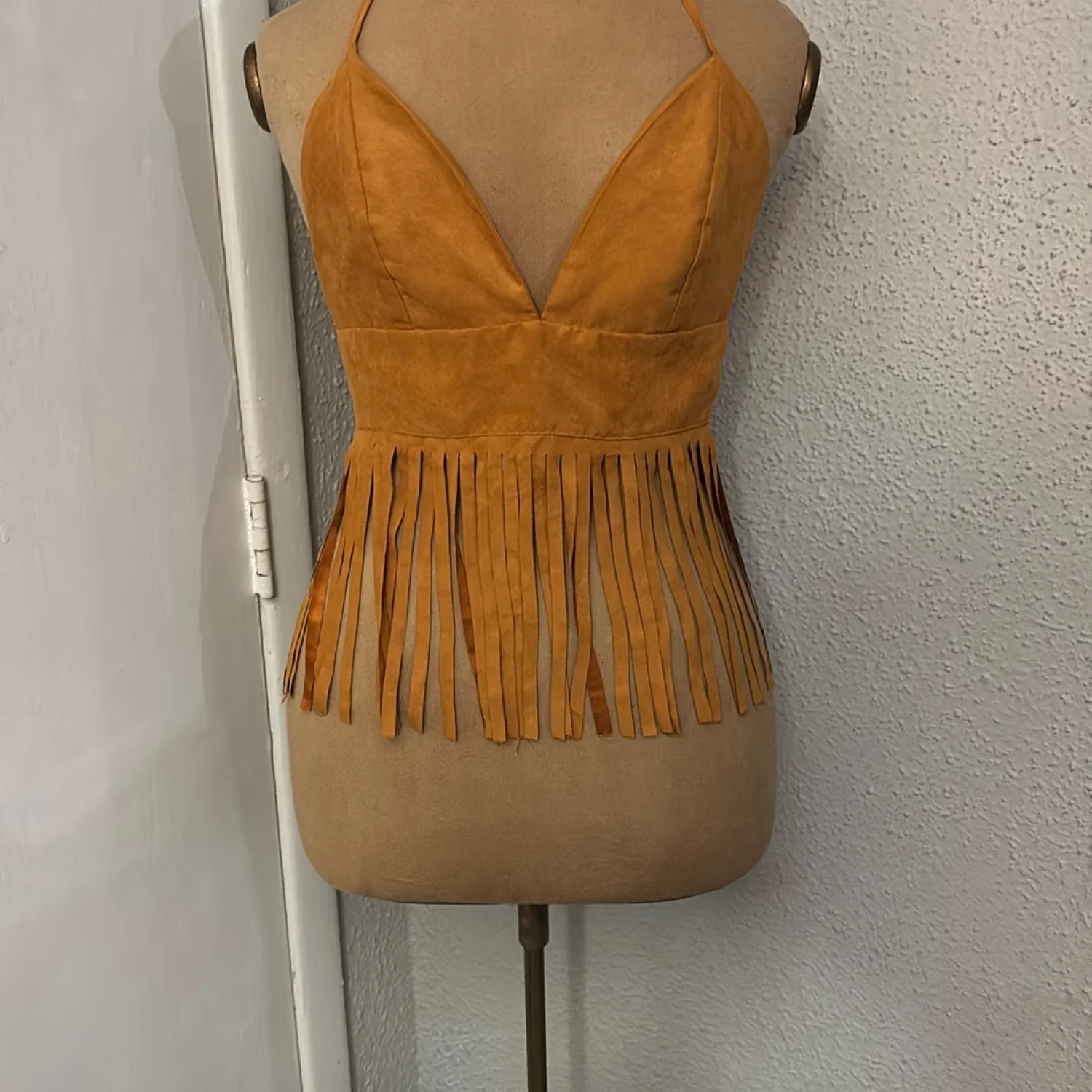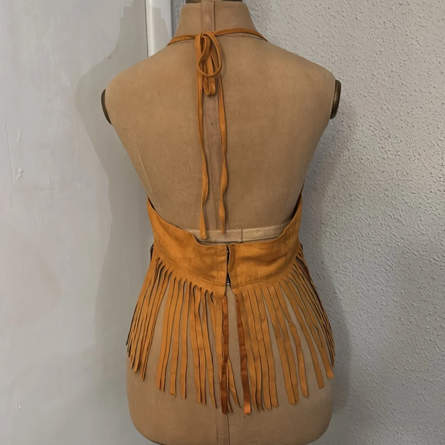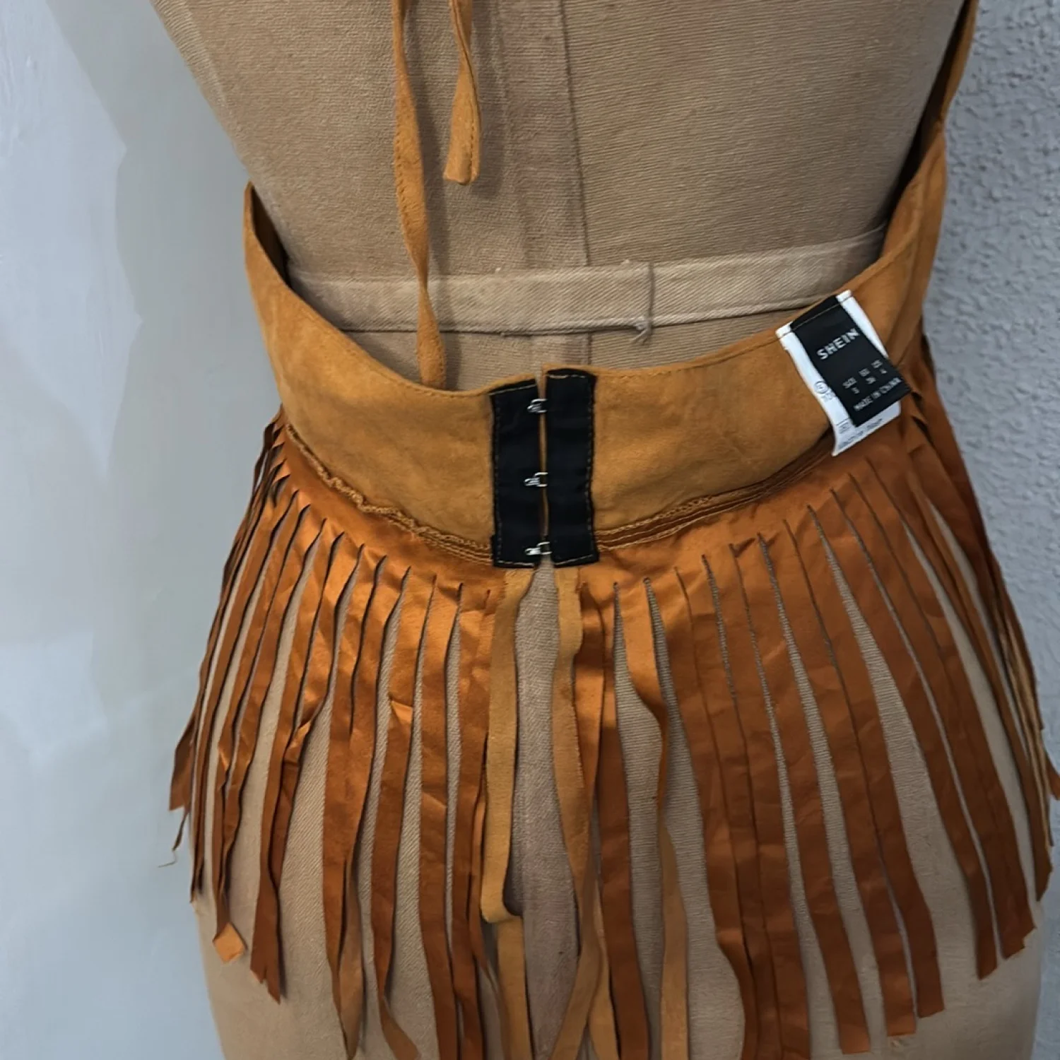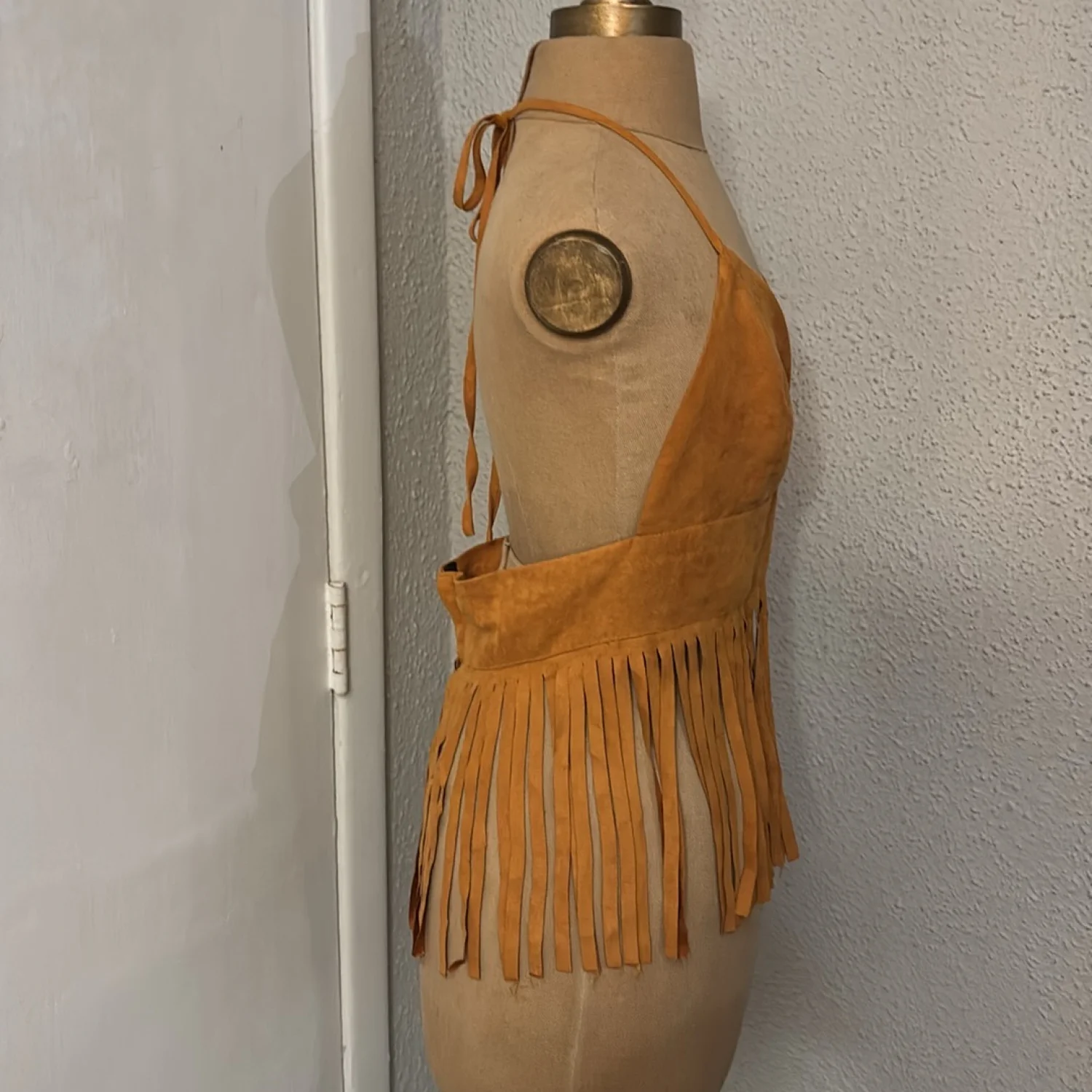 SHEIN Suedette Fringed Backless Halter Crop Top S