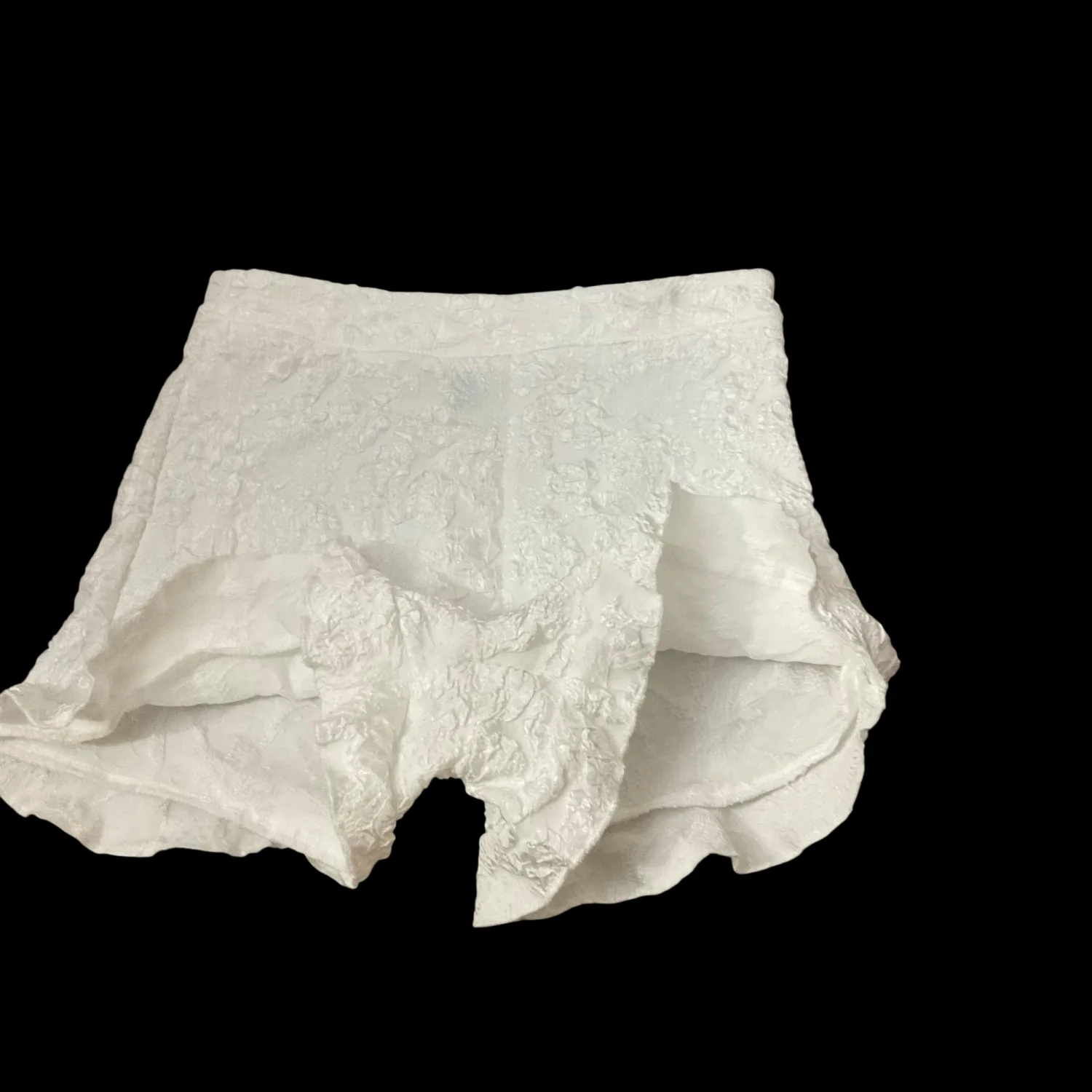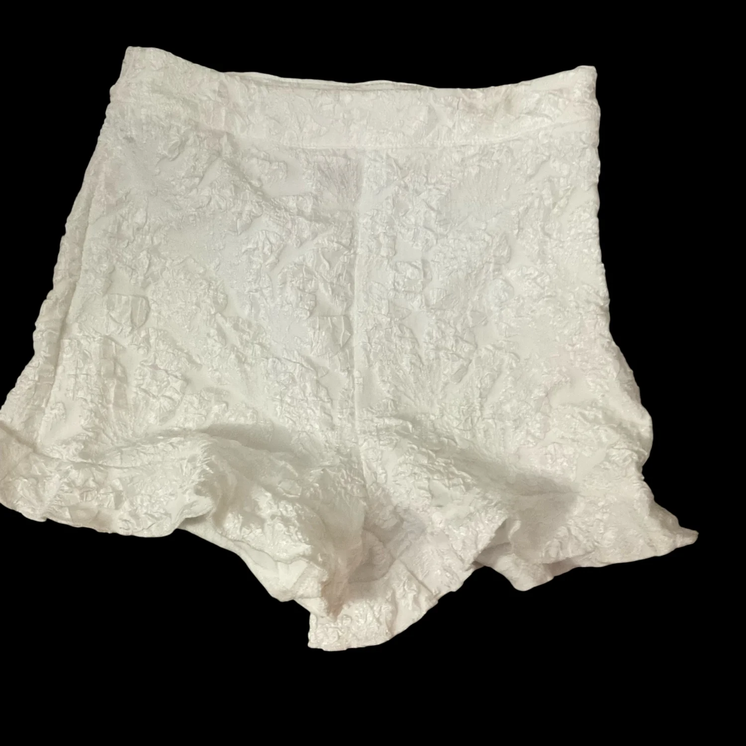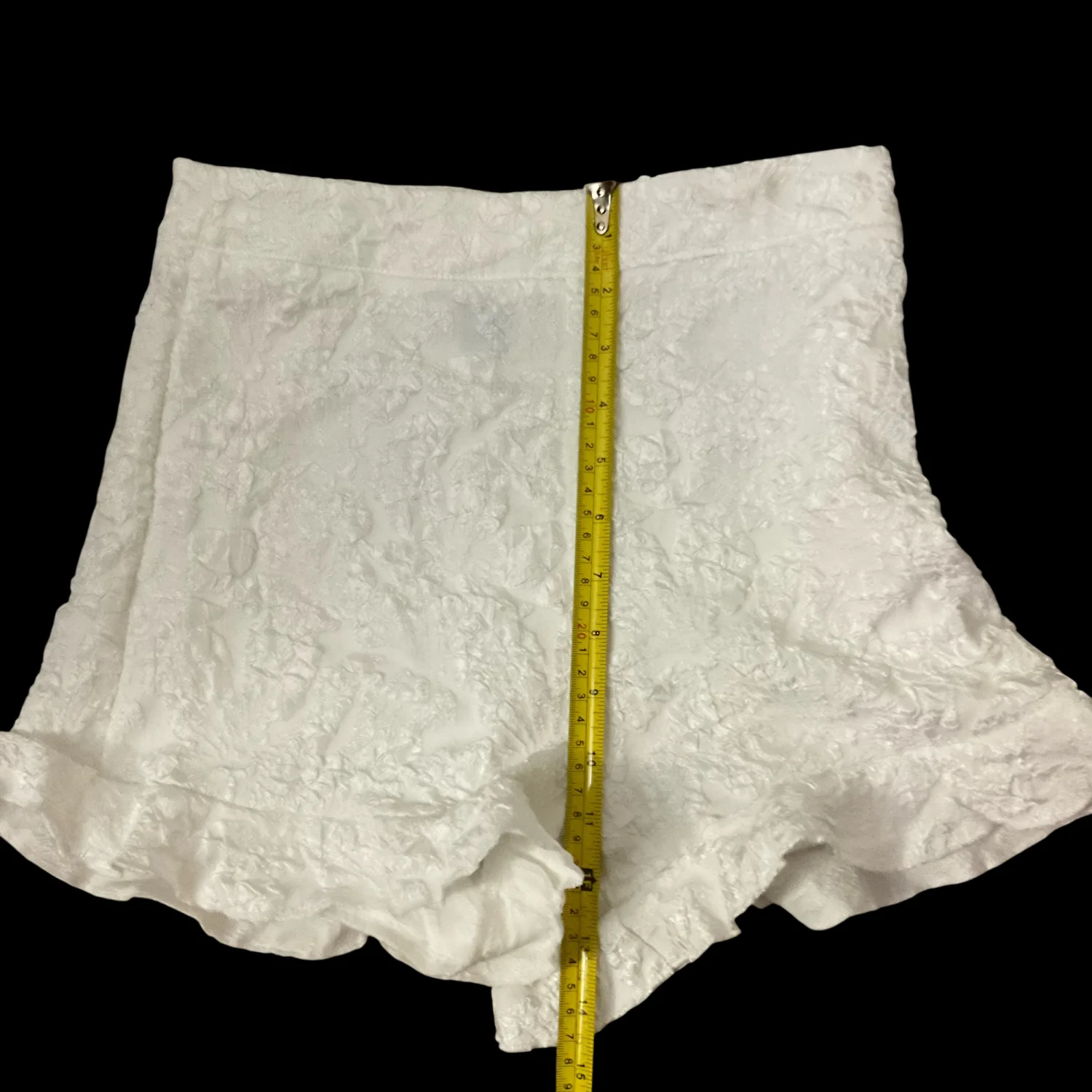 Style: Lace lined shorts with Ruffle bottom Color: White Size: XS Waist: 12” Length” 14’ Condition: Good 100% Polyester Machine wash
