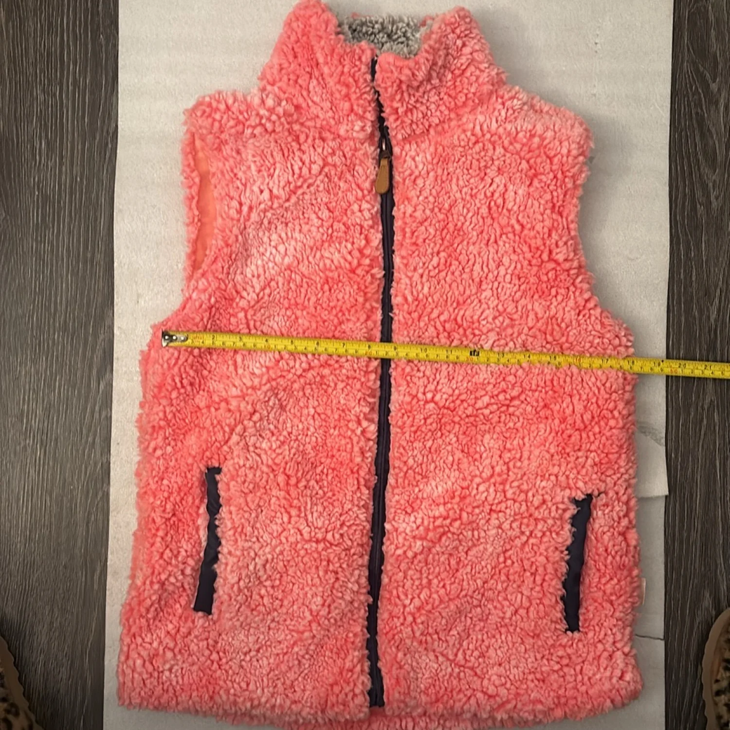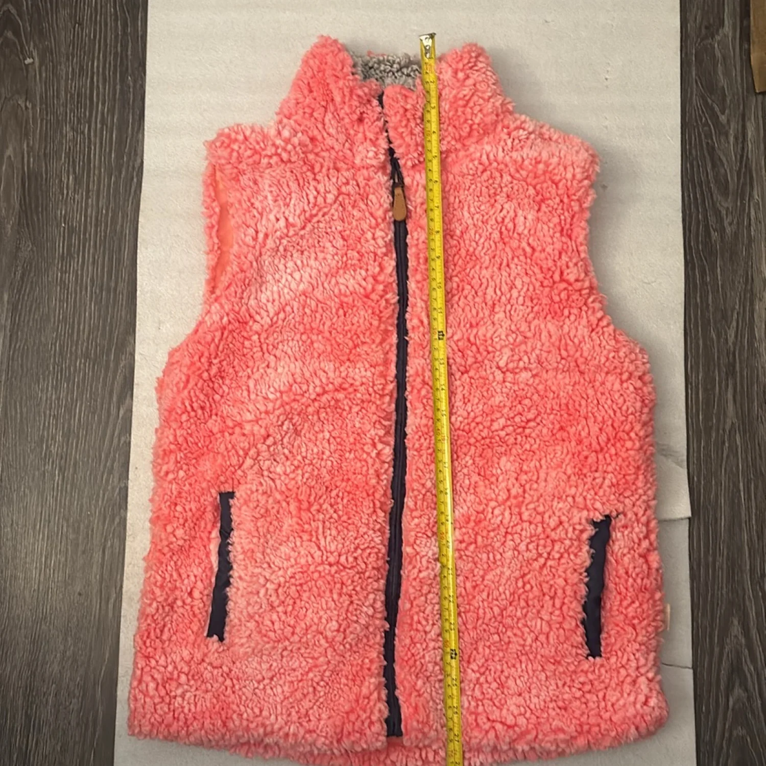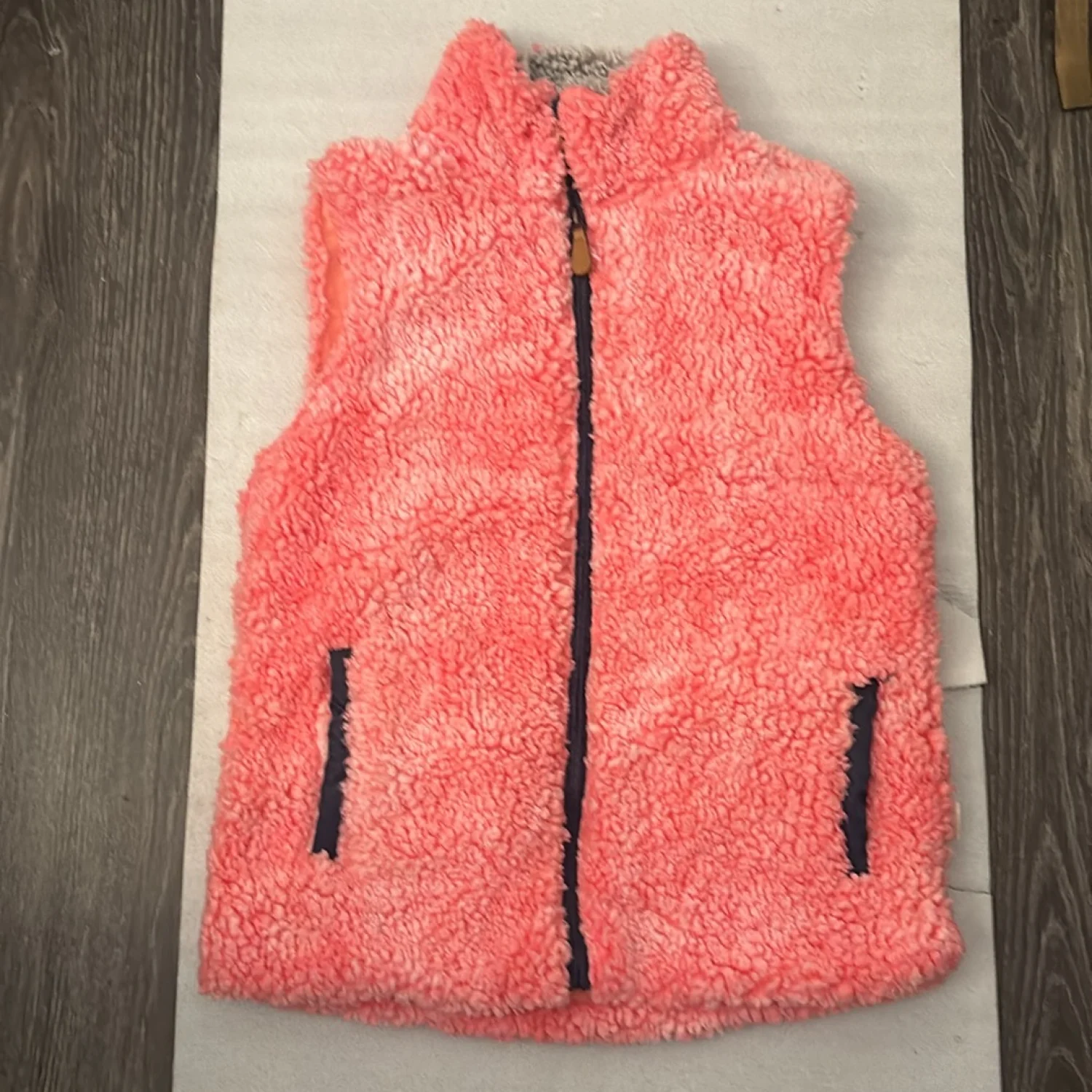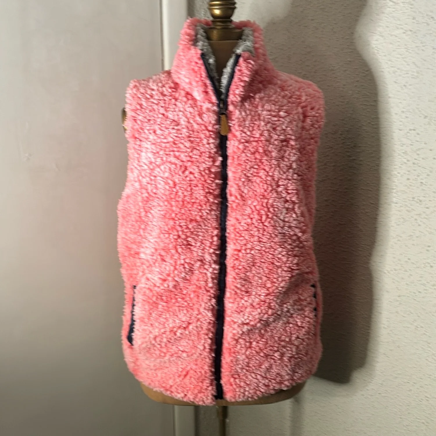 Style: Sleeveless full zip sherpa vest Color: Pink/Blue/Gray Size: M Armpit: 18” Length: 28” Condition: Good Polyester material Machine wash cold
