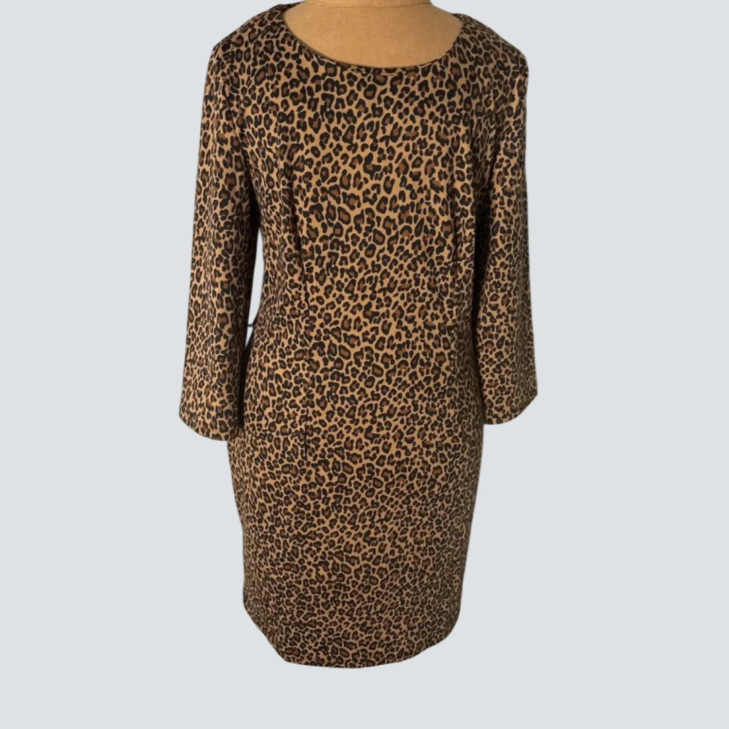 Spense Round Neck Leopard Pattern Shift Dress 10 Animal Print Corporate Siren