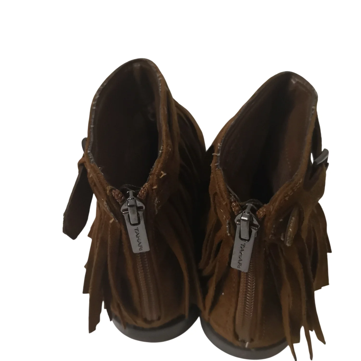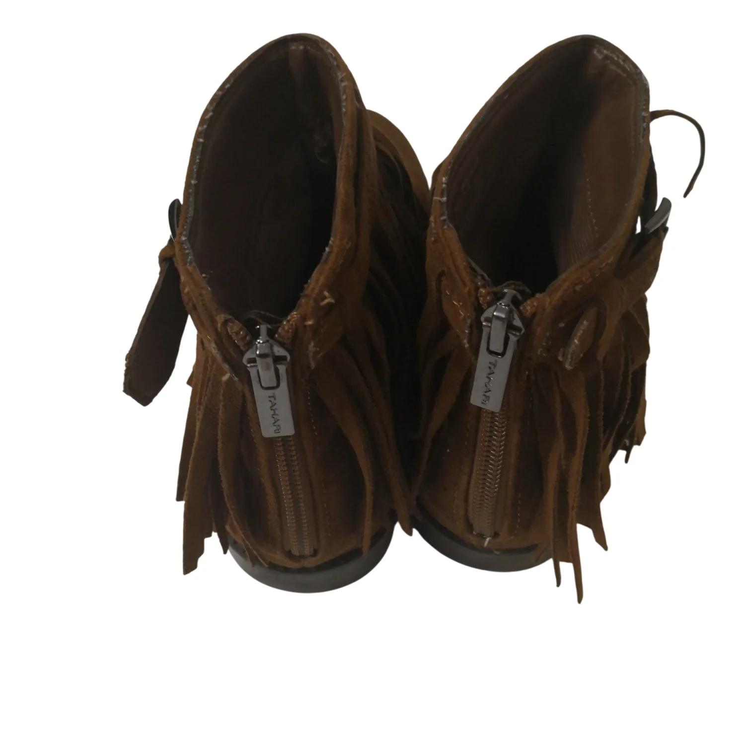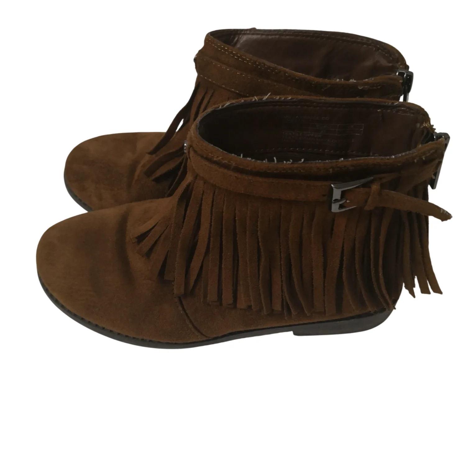 Tahari Girl's Milla Brown Fringe Ankle Boots Size 2 Cozy Comfy Utility Casual