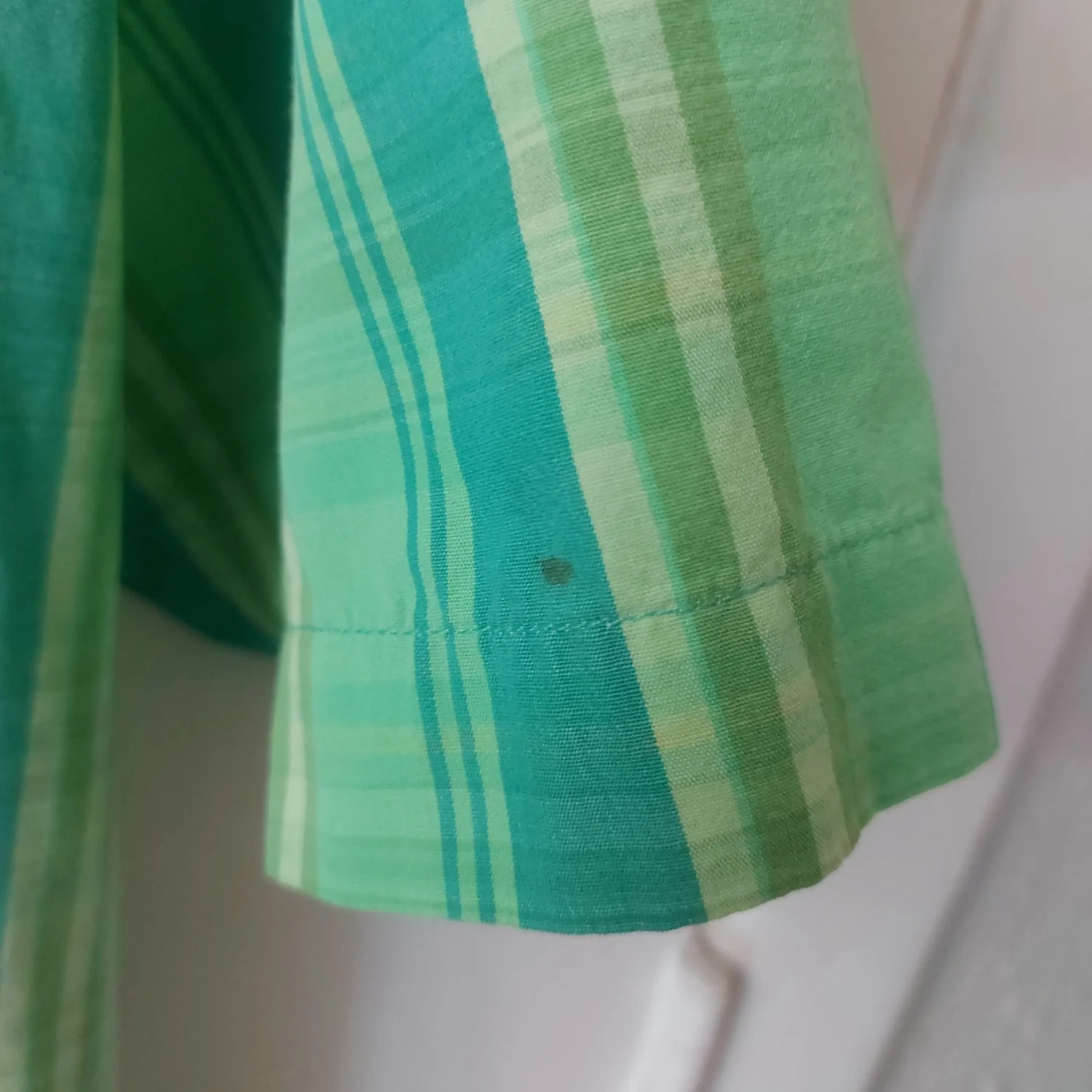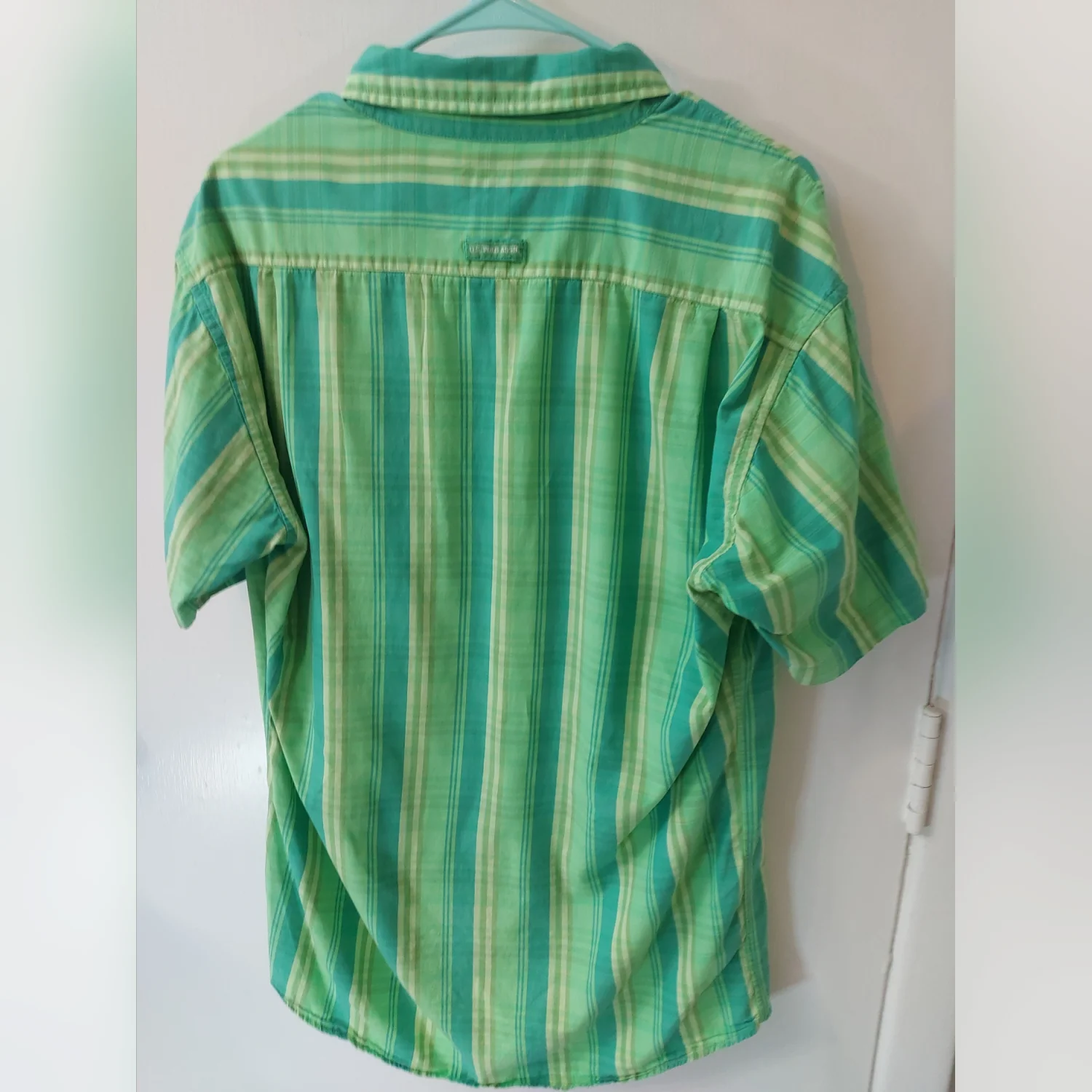 Color: Green Style: Plaid short sleeve button down shirt Size : L Armpit: 21” Length: 31” Condition : Good, small stain on shoulder as shown in pictures 100% Cotton Machine wash