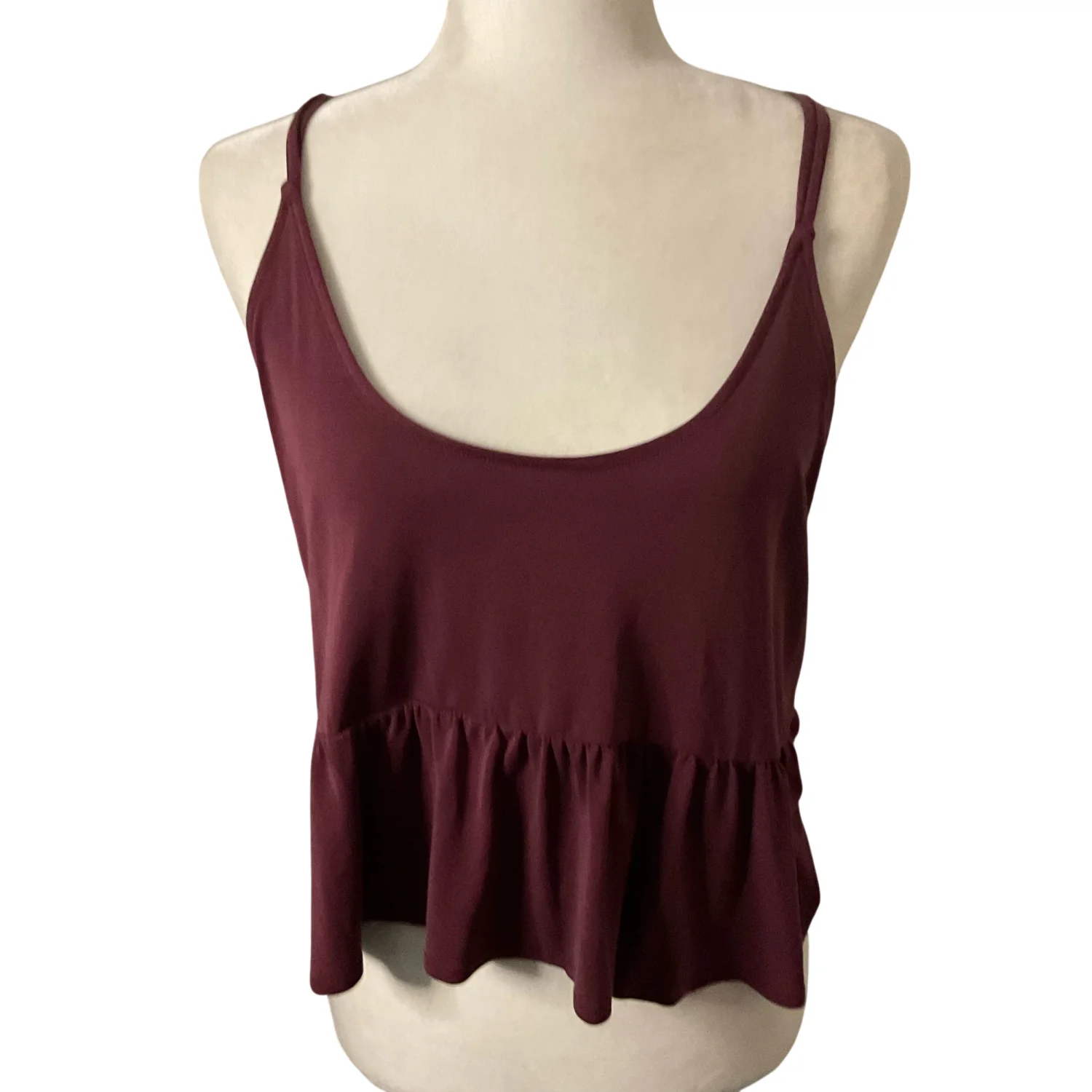 Urban Outfitters Burgundy Peplum Babydoll Spaghetti Strap Tank S Crop Top Casual