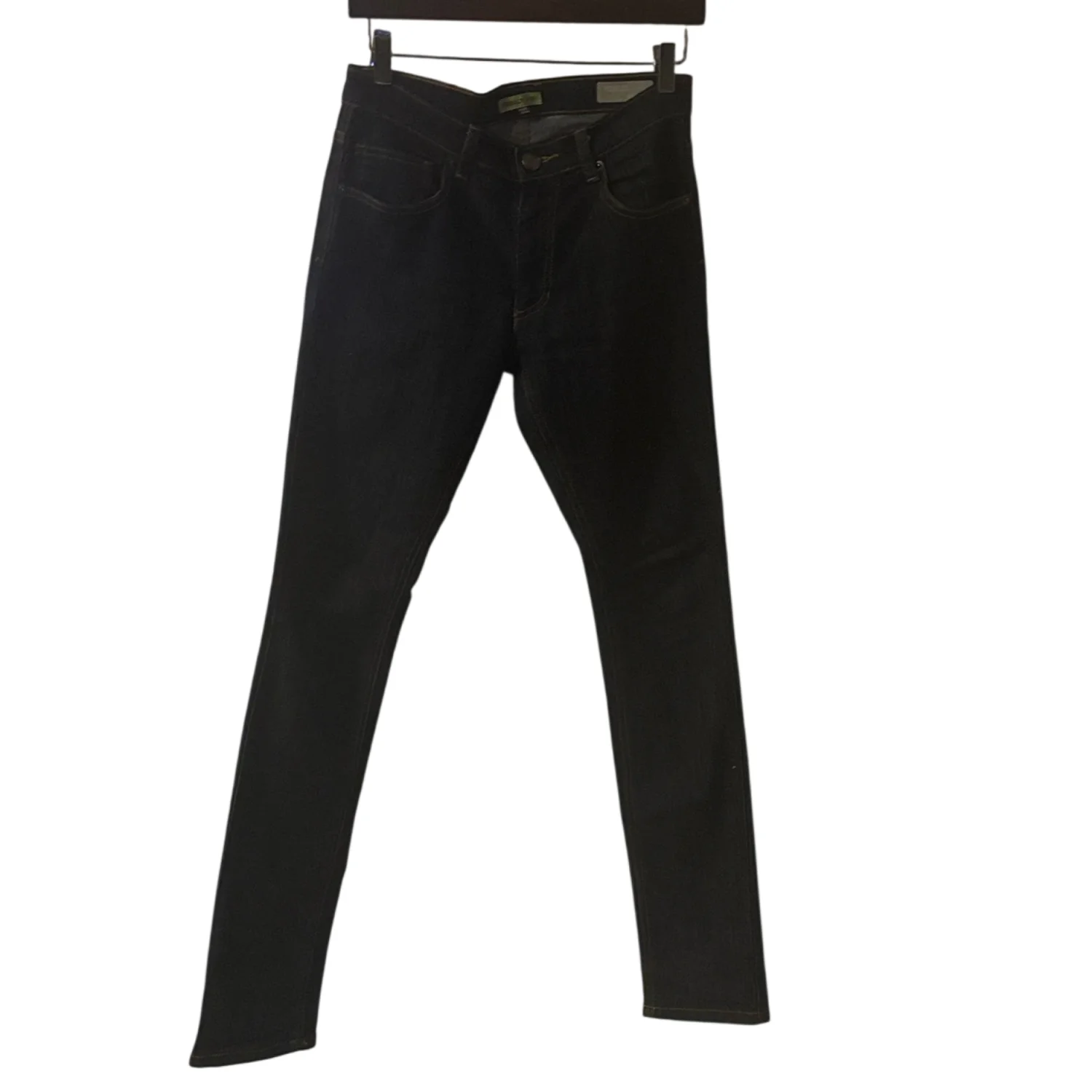 Style: Classic slim straight men’s 5 pocket jeans. Clean, versatile style for everyday wear. Durable denim with subtle stitching detail. Comfortable fit that pairs easily with casual or smart-casual outfits. Style: CLG 047 745 110 509/ Certified by Centrilogo.com Color: Dark Blue Size: 30 Waist: 15" Rise: 10" Inseam: 33" Condition: Excellent 75% Cotton 24% Polyester 1% Elastane Machine wash cold