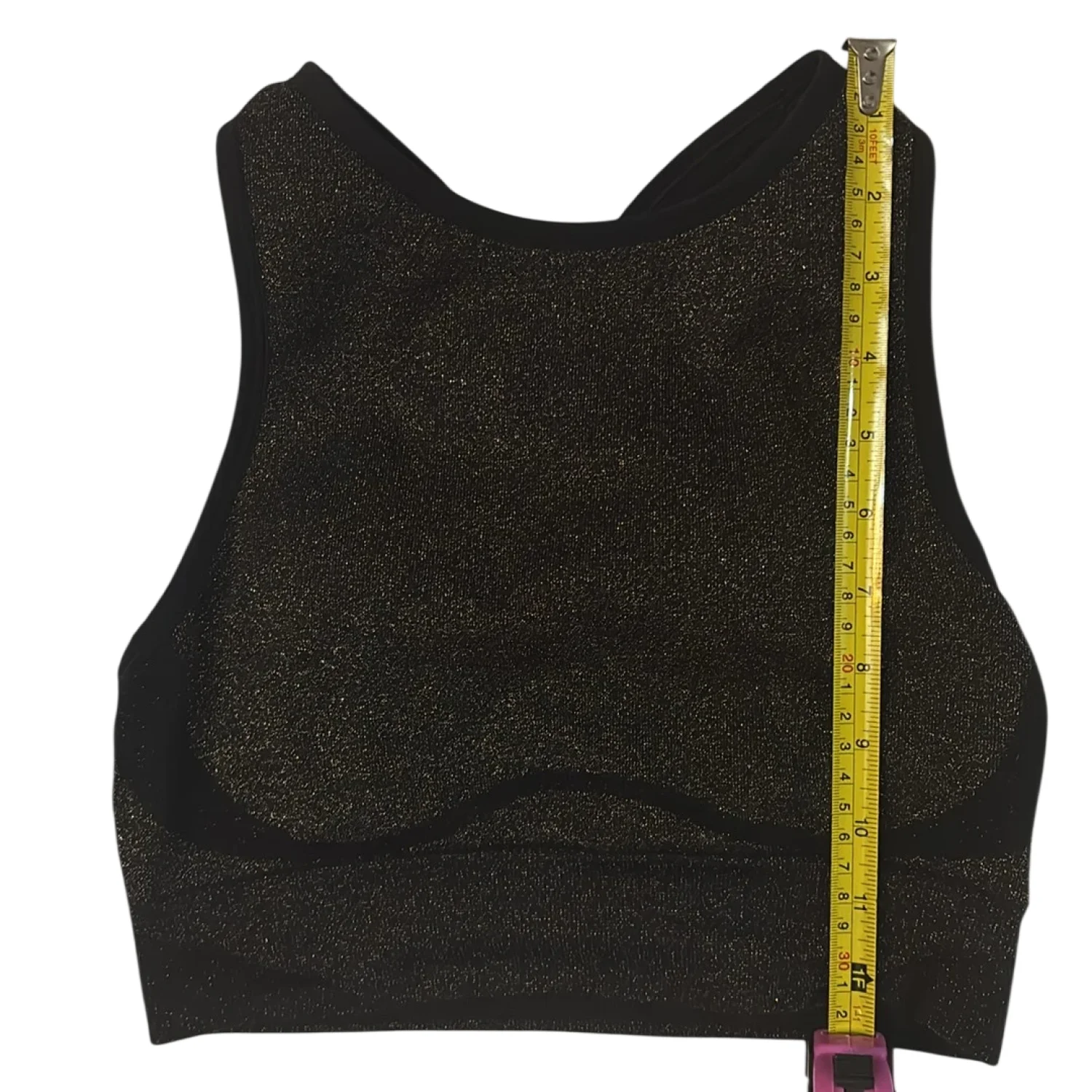 Style: Seamless bralette/ Sports bra Color: Black Sparkle* Black/Gold Size: S Color: Black Sparkle (Black/Gold) Armpit: 12” Length: 12” Condition: Good 95% Polyamide 5% Elastane Hand wqsh