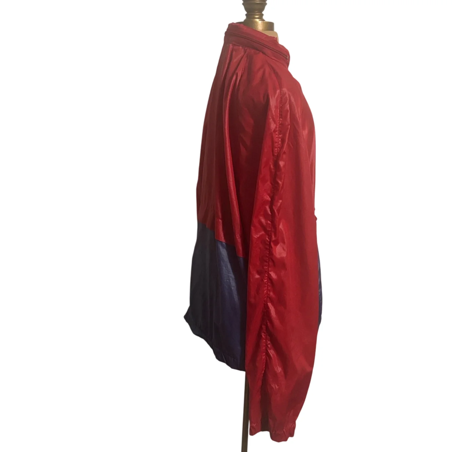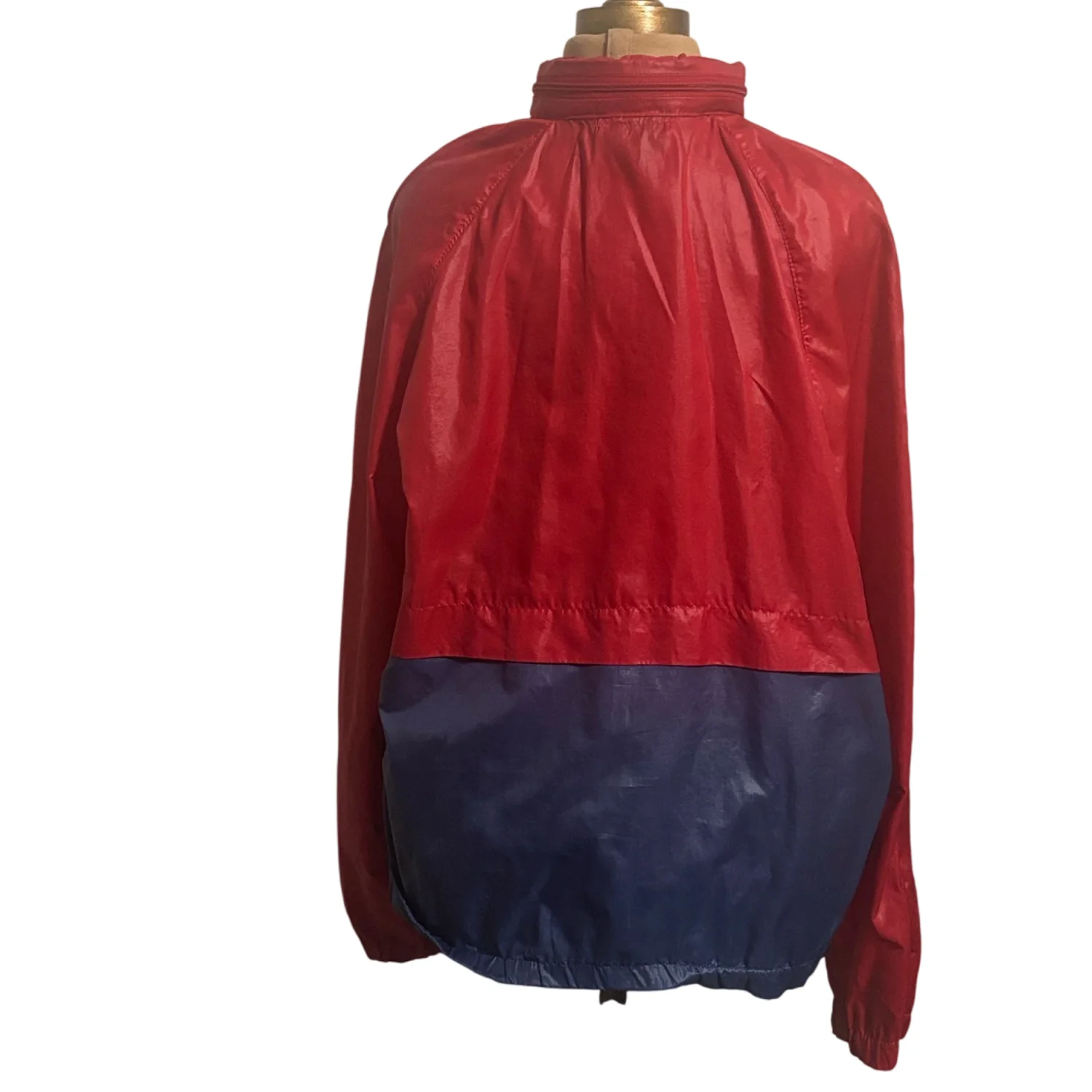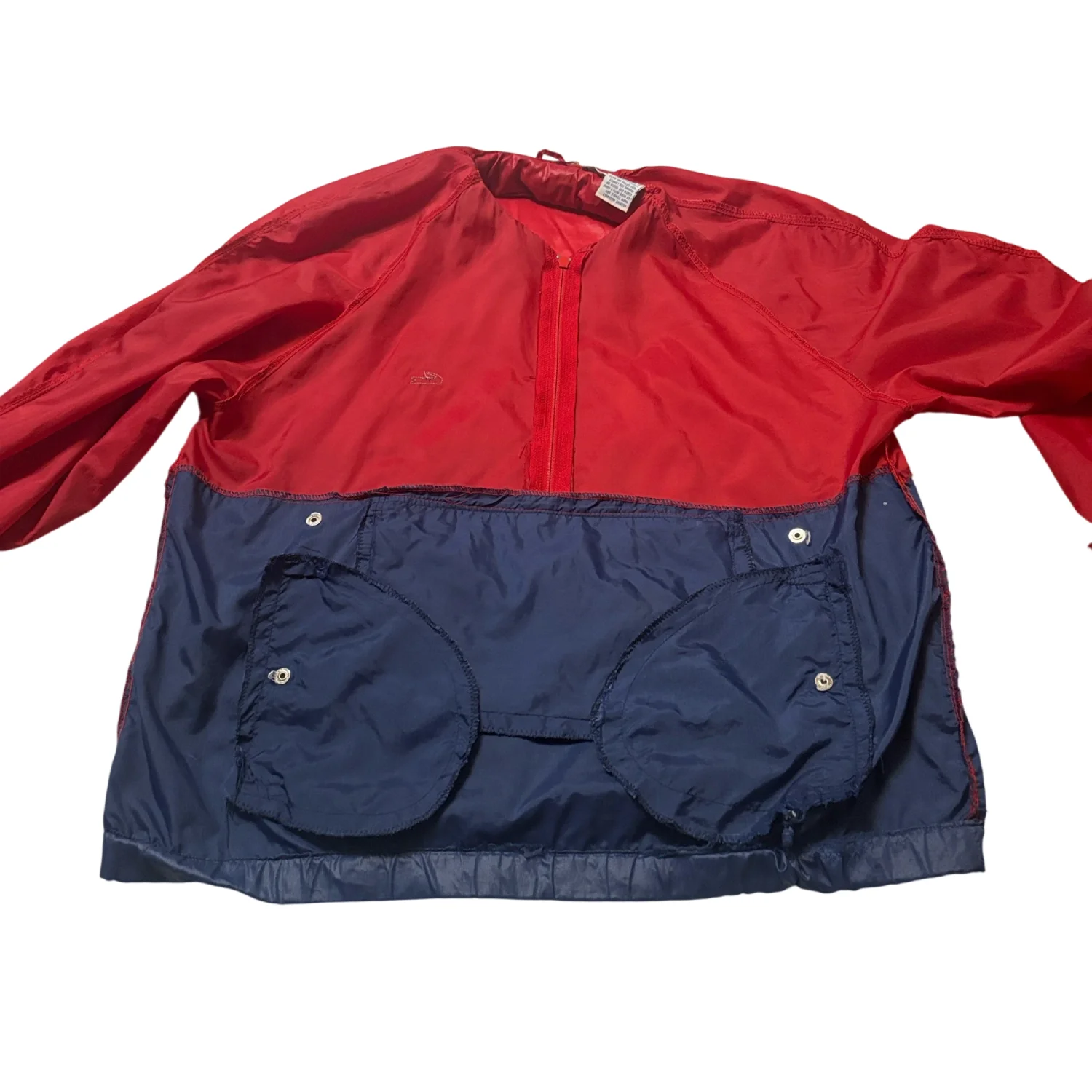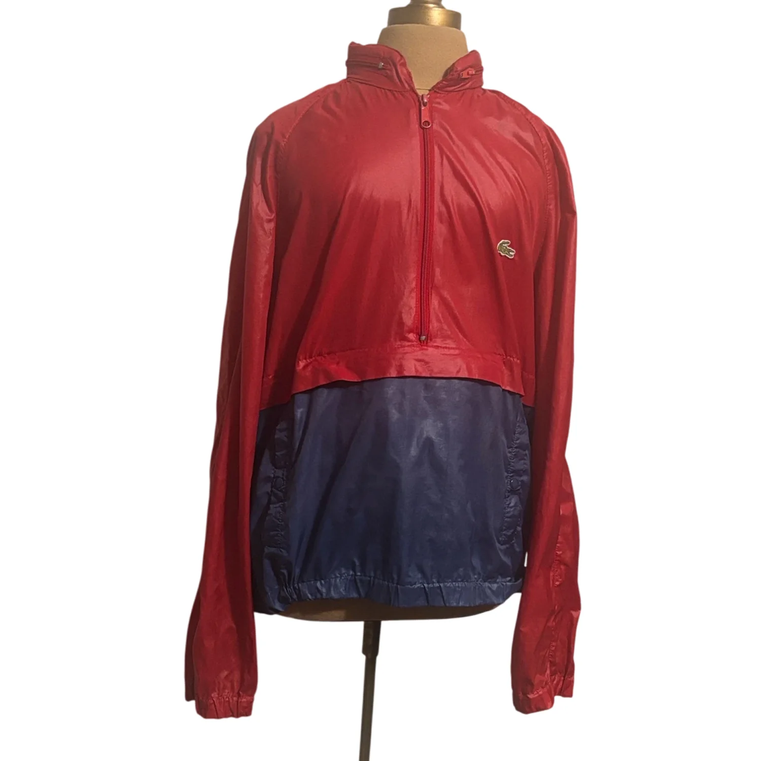 Vtg IZOD LACOSTE Red/Blue Half Zip Windbreaker Jacket Hood Front Pocket L Nylon
