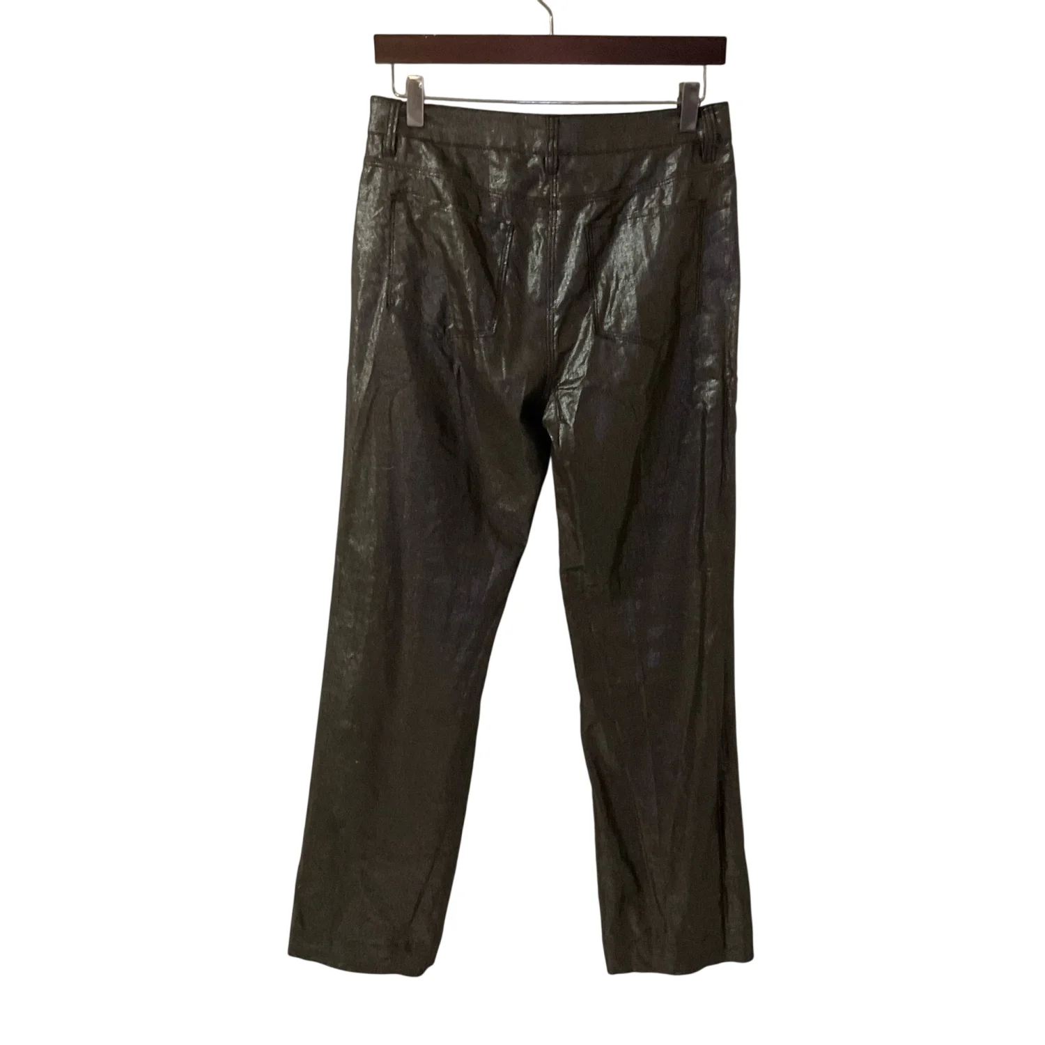 Style: Button front, 4pocket, metallic finish Color: Brown Size: 8 W: 15” Rise: 11” Inseam: 30” Condition: Good 55% Linen 45% Cotton