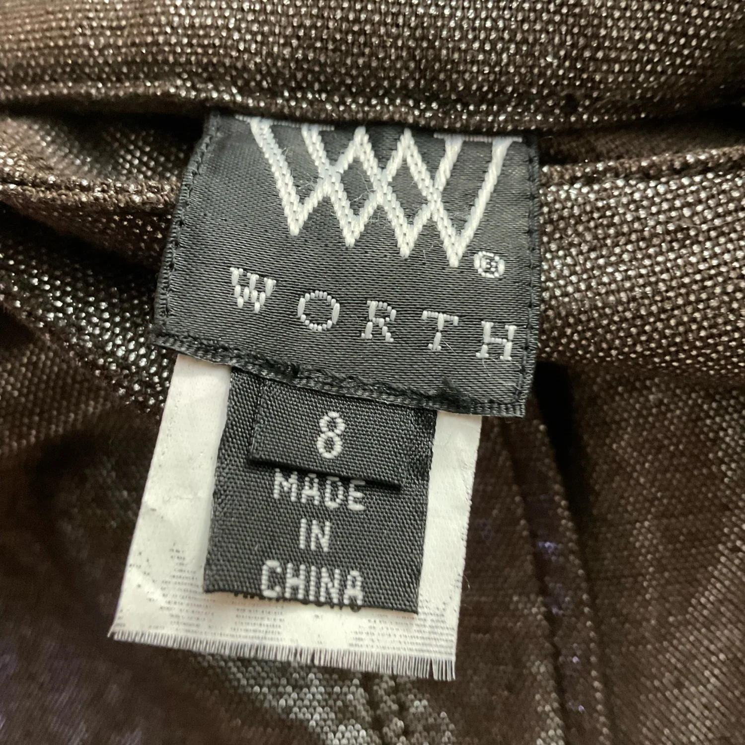 Worth Brown Metallic Pull on Pants 8 Mermaid Retro Girl Glam Mob Wife Futuristic