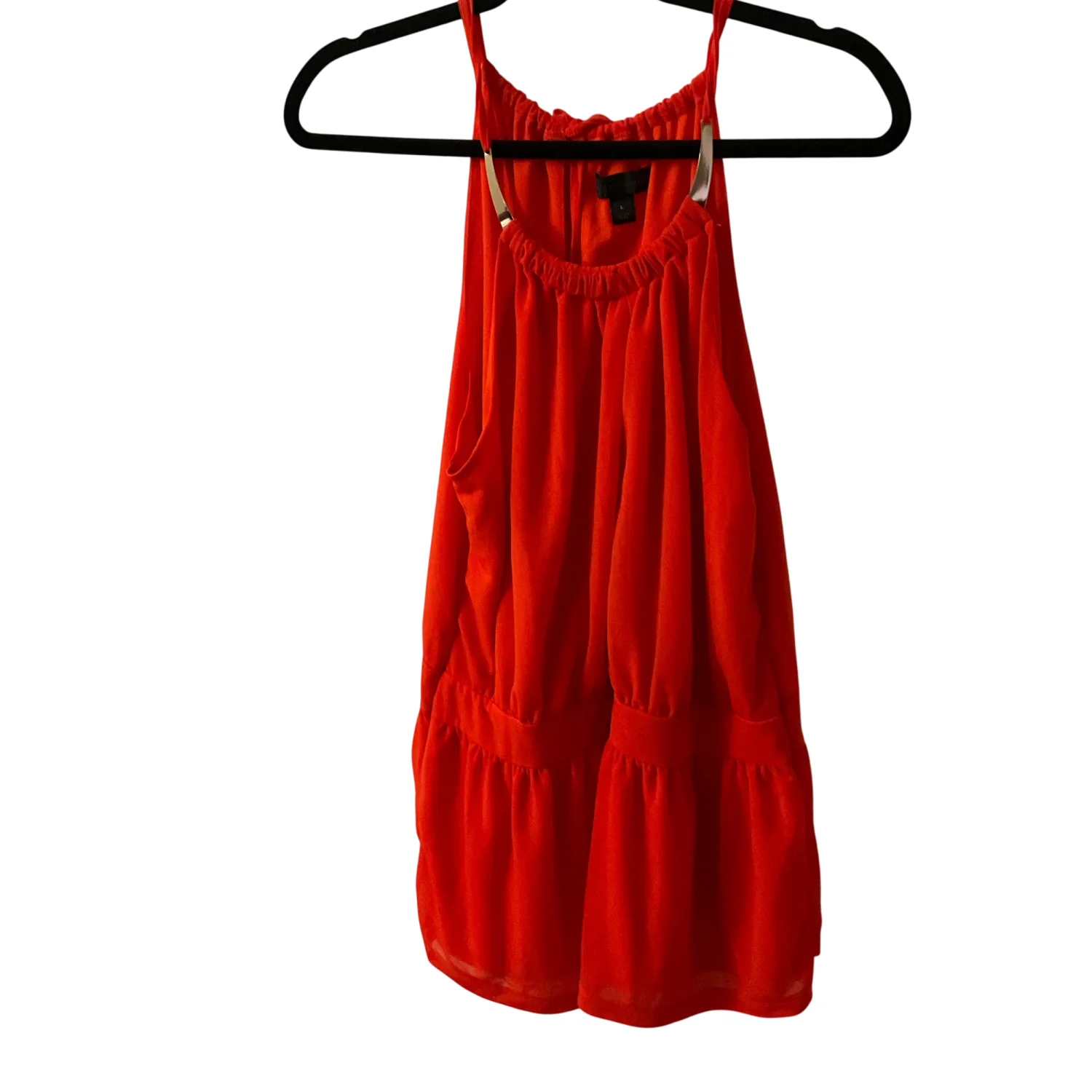 Worthington Orange Dressy Tank with Necklace Collar L Dopamine Corporate Siren