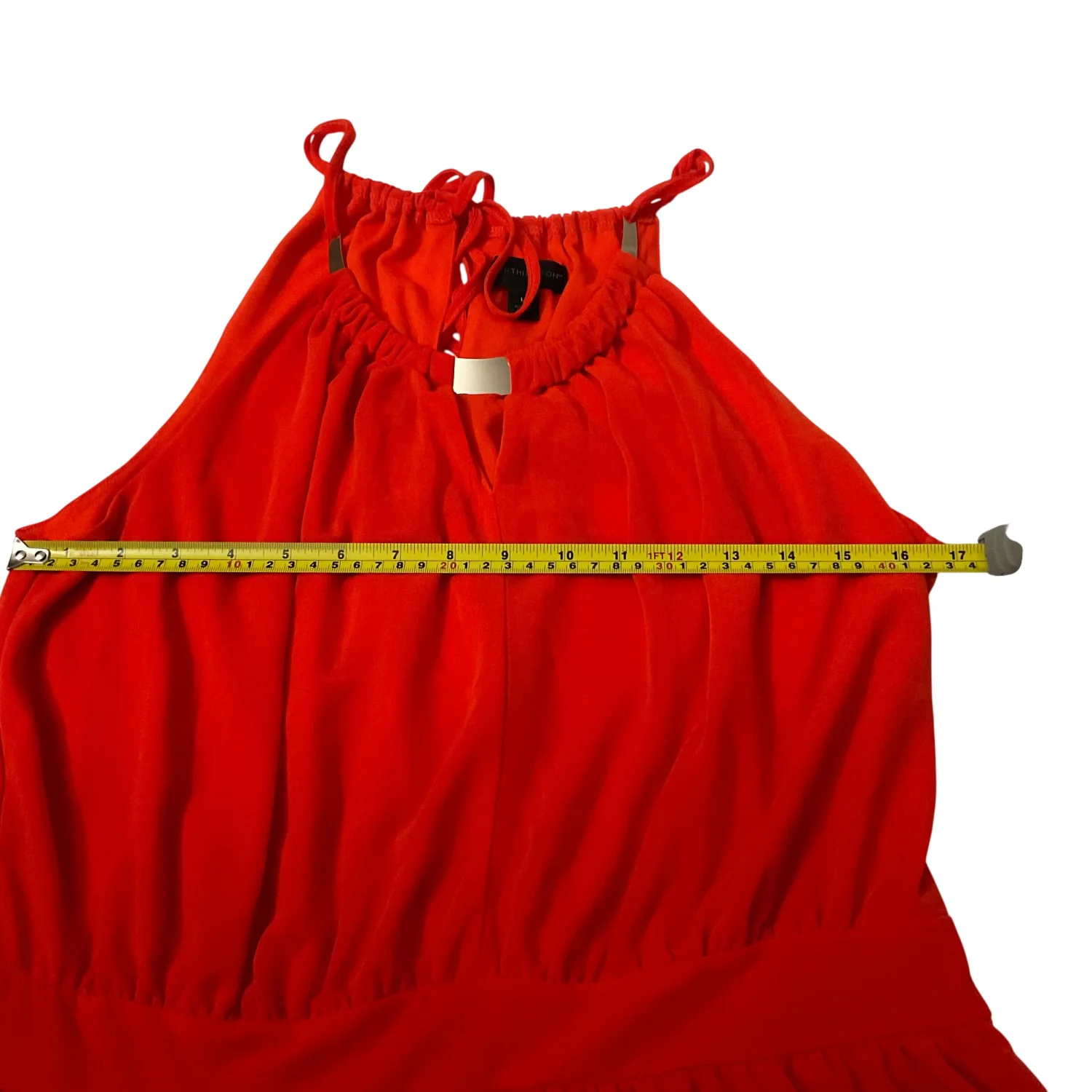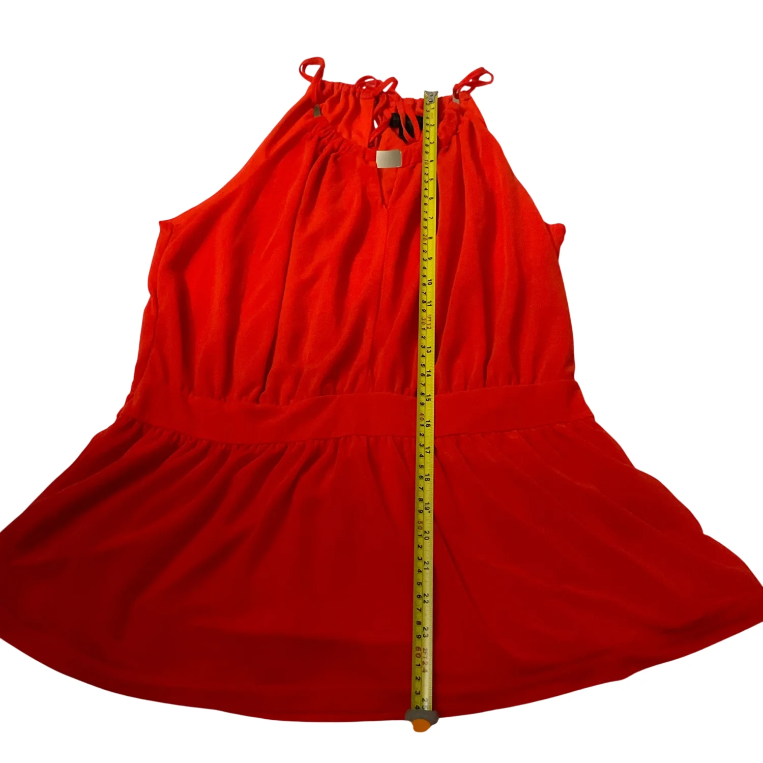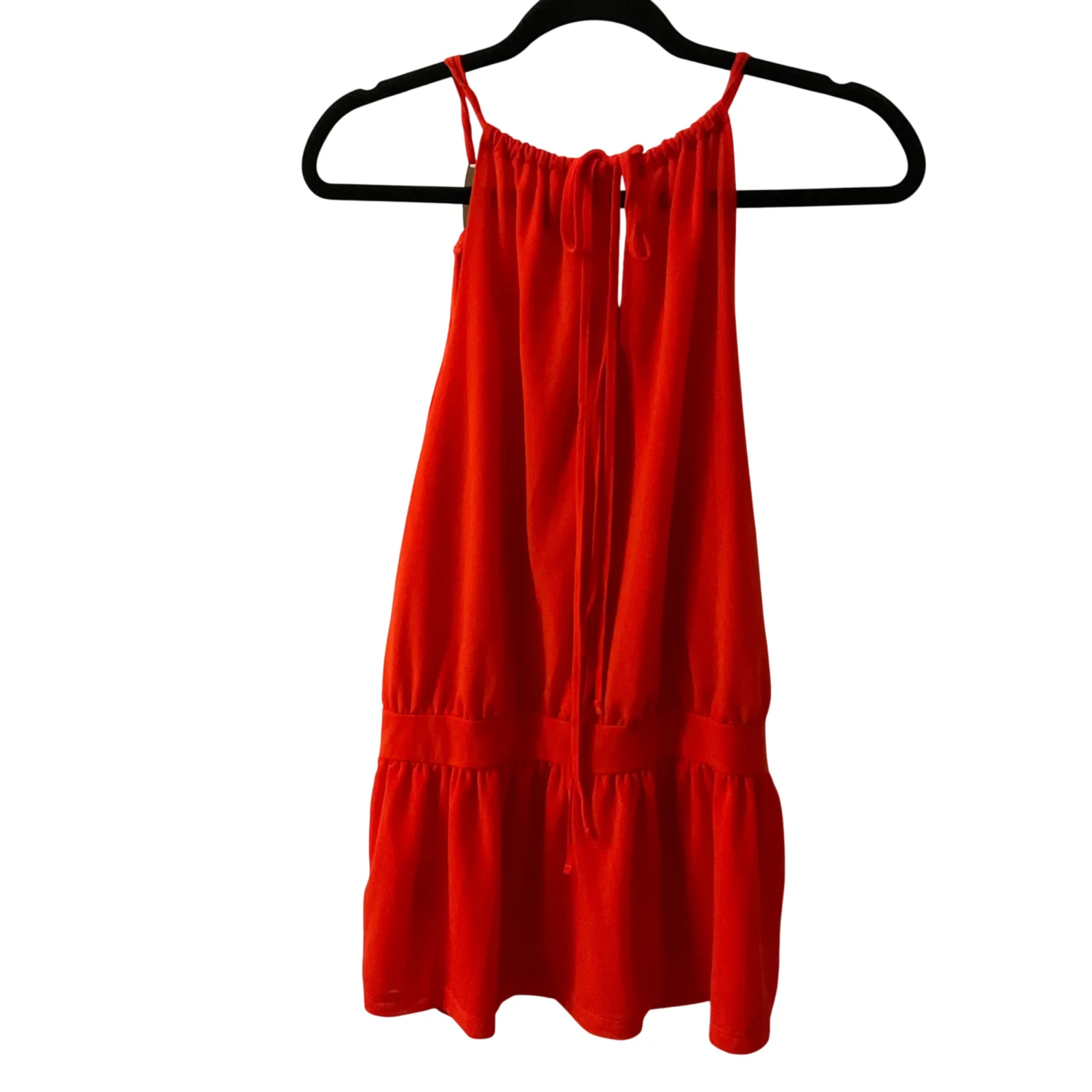 Style: Sleeveless tank with necklace collar in front Color: Orange Size: L Armpit: 17” Length: 25” Condition: Good 100% Polyester Machine wash cold, gentle cycle