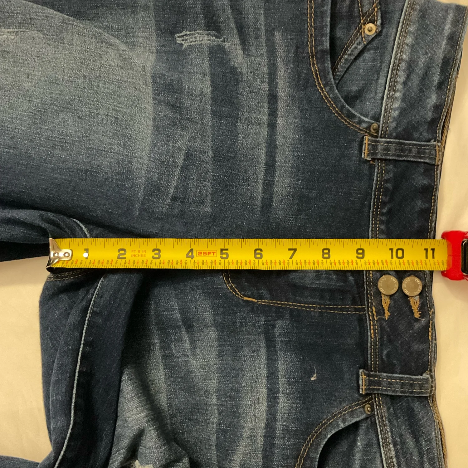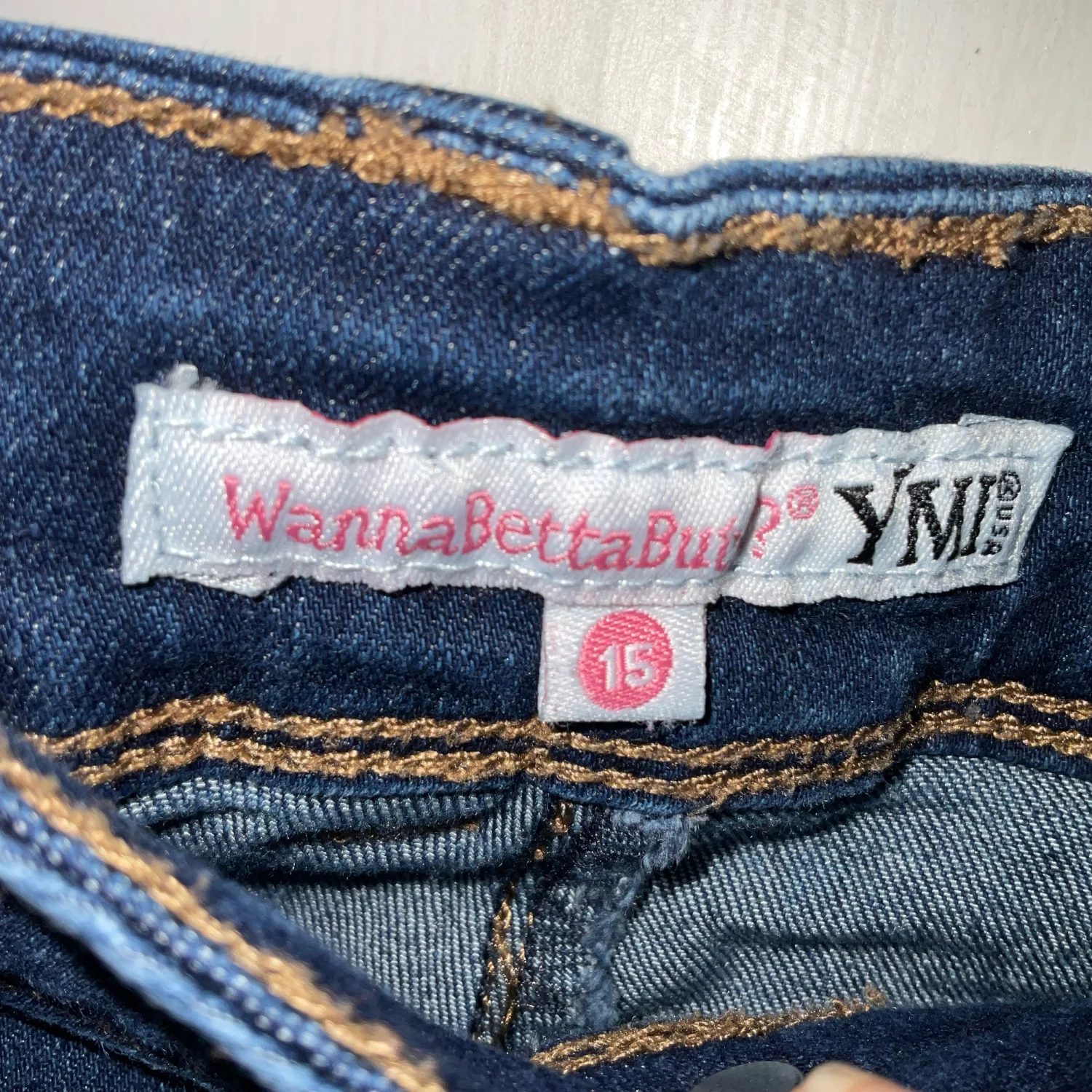 Style: Wanna Betta Butt, 5 pocket, raw hem Color: Blue Size: 15 Waist: 18” Rise: 11” Inseam: 24” Condition, Good, light puckering under belt line 75% Cotton 23% Polyester 1% Rayon 1% Spandex Machine wash cold