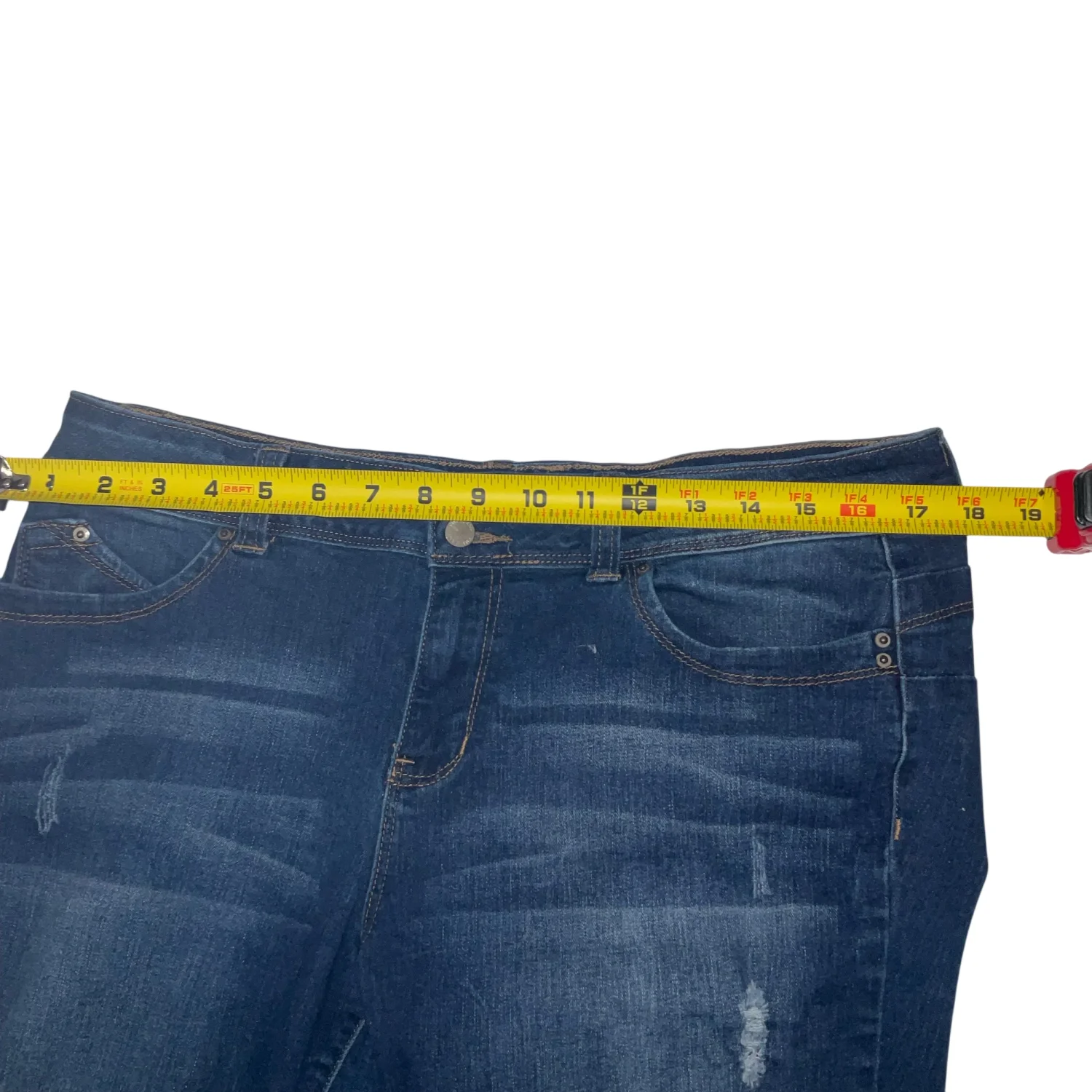 YMI WannaBettaButt Juniors Distressed Blue Jeans 15 Capri Denim Casual Boho