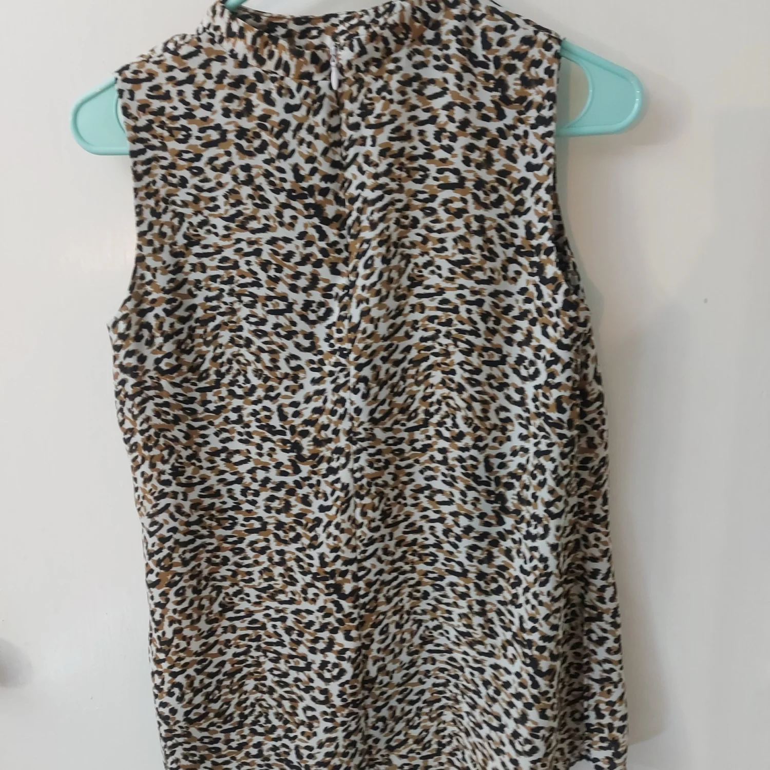 Style: Sleeveless tank with neck strap Size: S Color: Brown/Black/White Armpit: 16” Length: 26” Condition: Good 100% Polyester Machine wash