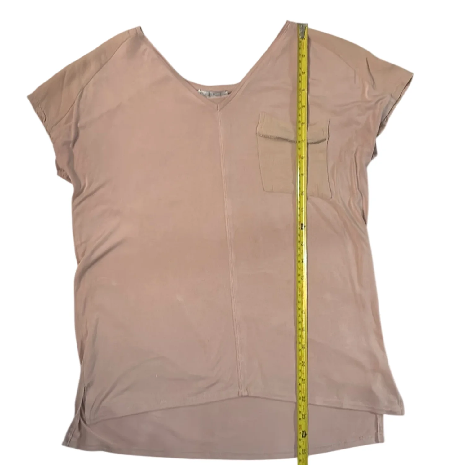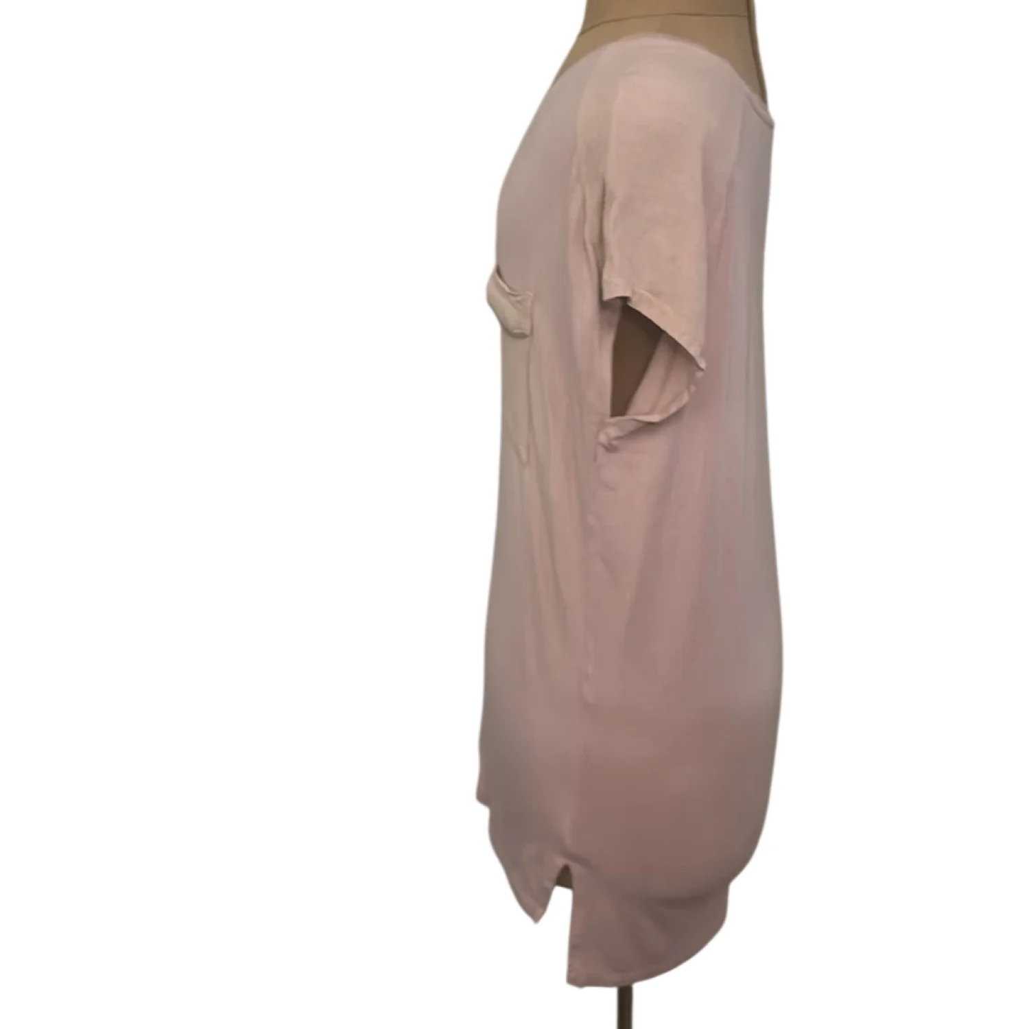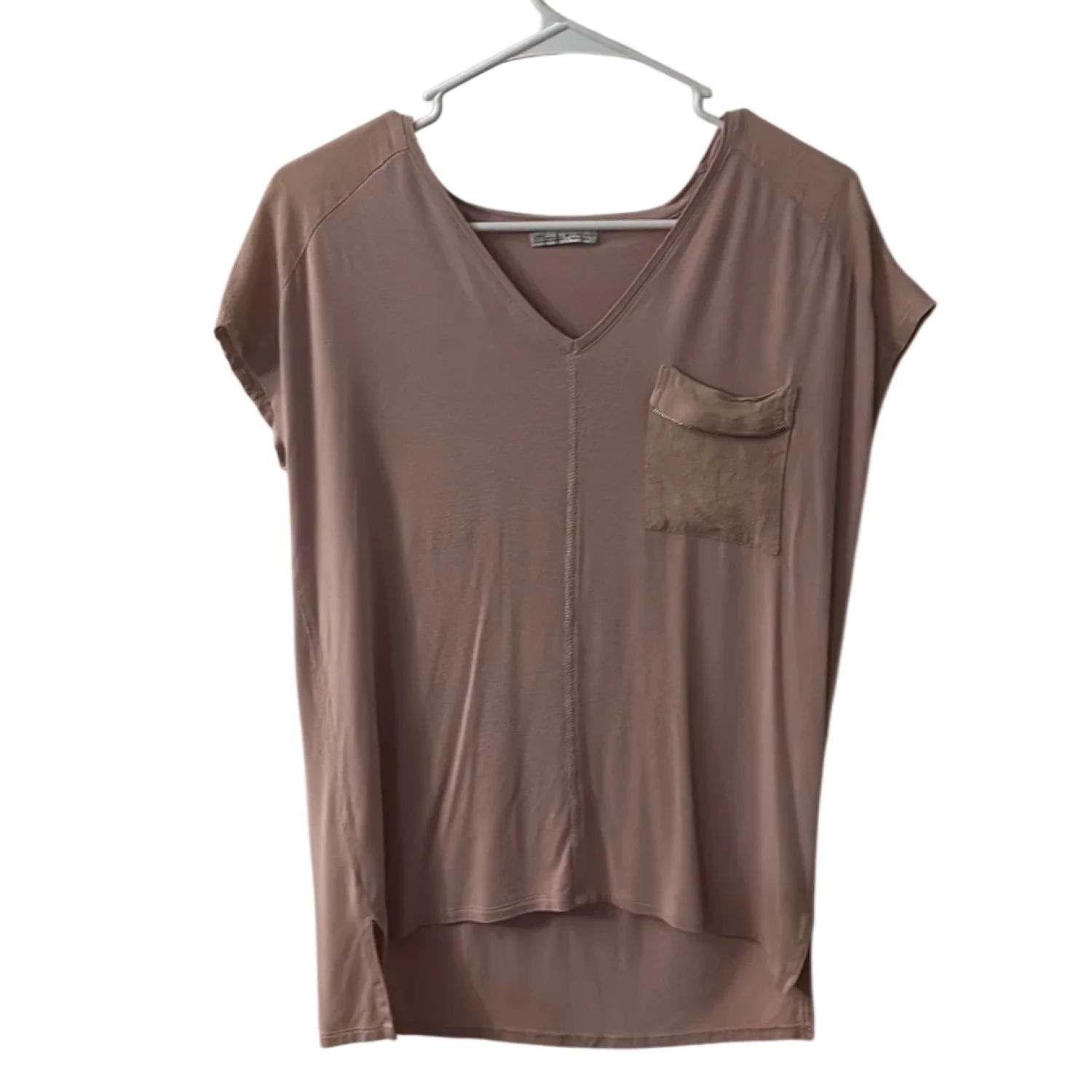Style: High low t-shirt with zipper pocket detail Color: Pink Size: XS/P Armpit 18” Length: 23” (Top) 25” (Bottom) Condition: Good, no material tag Machine wash