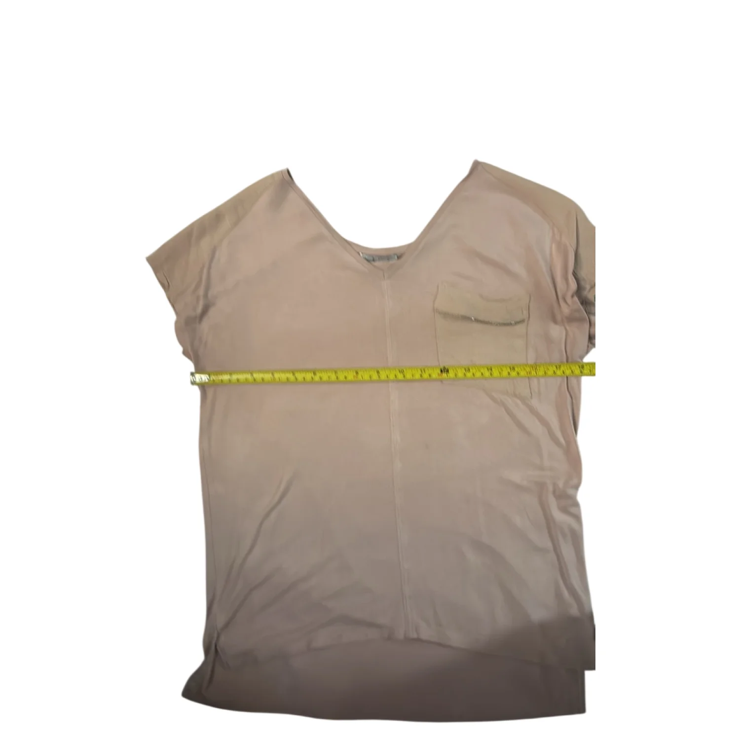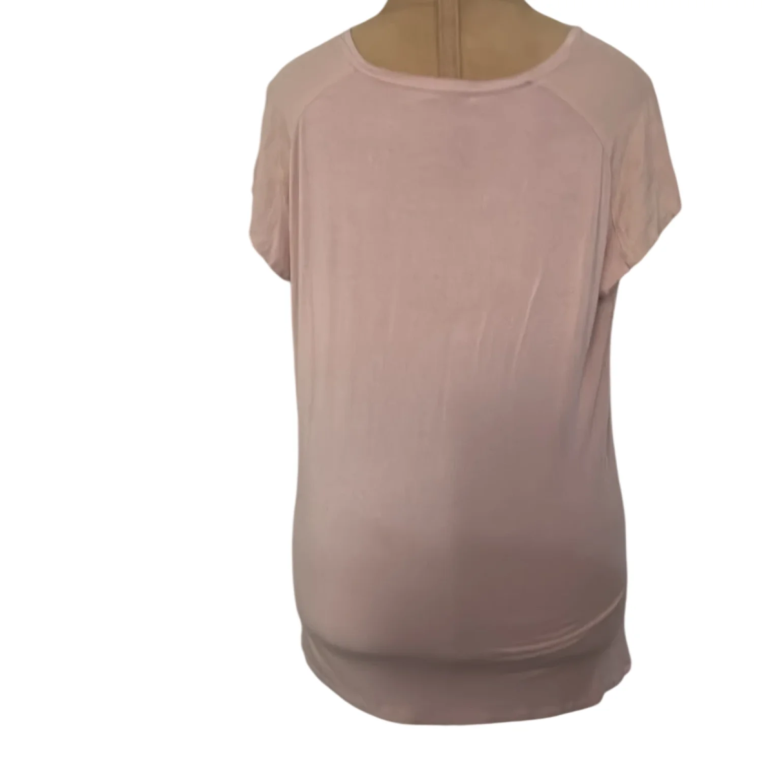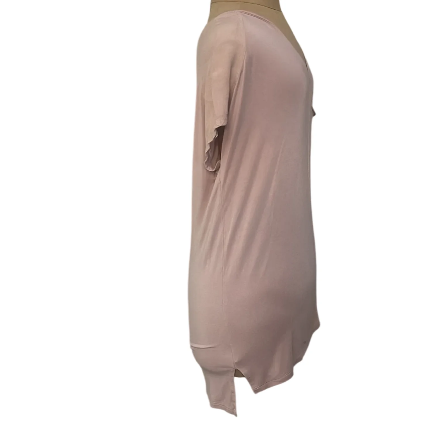 Style: High low t-shirt with zipper pocket detail Color: Pink Size: XS/P Armpit 18” Length: 23” (Top) 25” (Bottom) Condition: Good, no material tag Machine wash