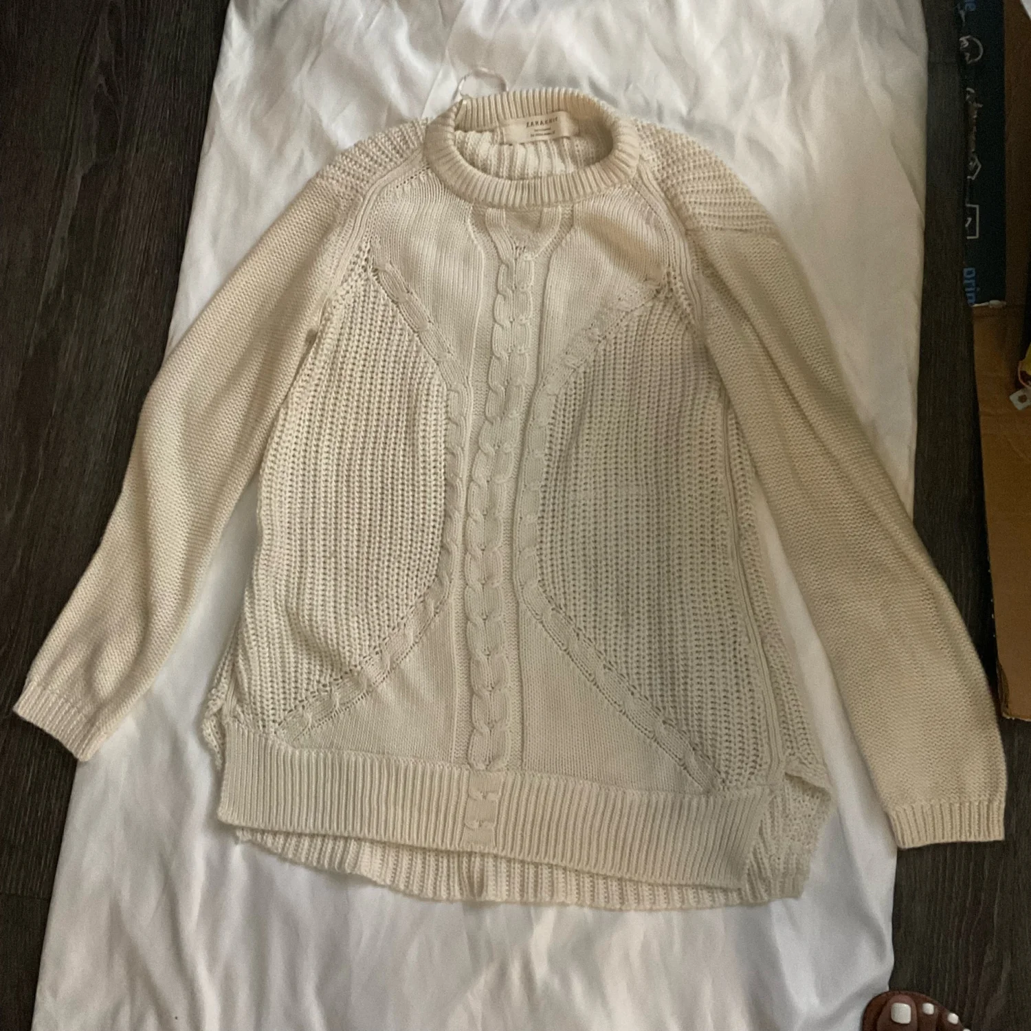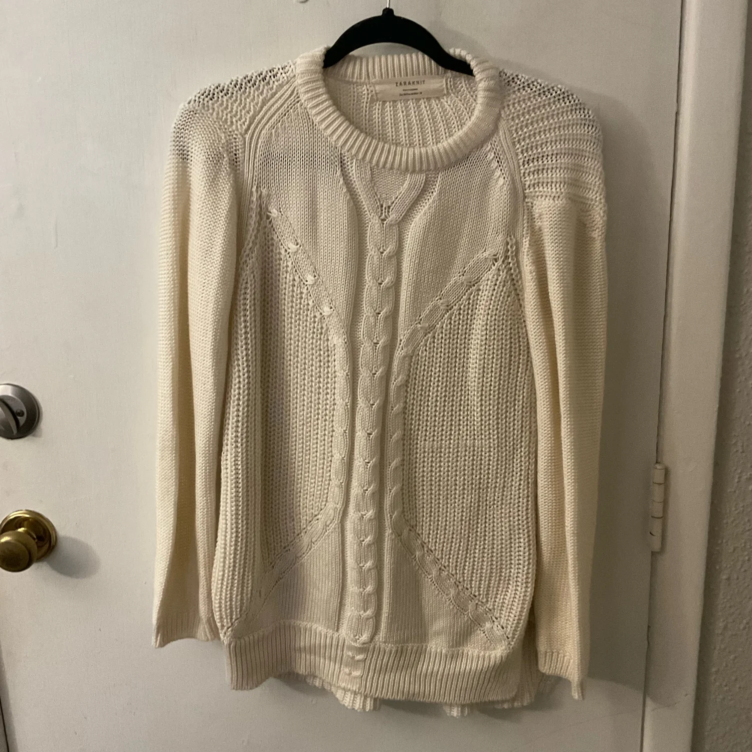 Zara Cream Crewneck Knit Long Sleeve Sweater M