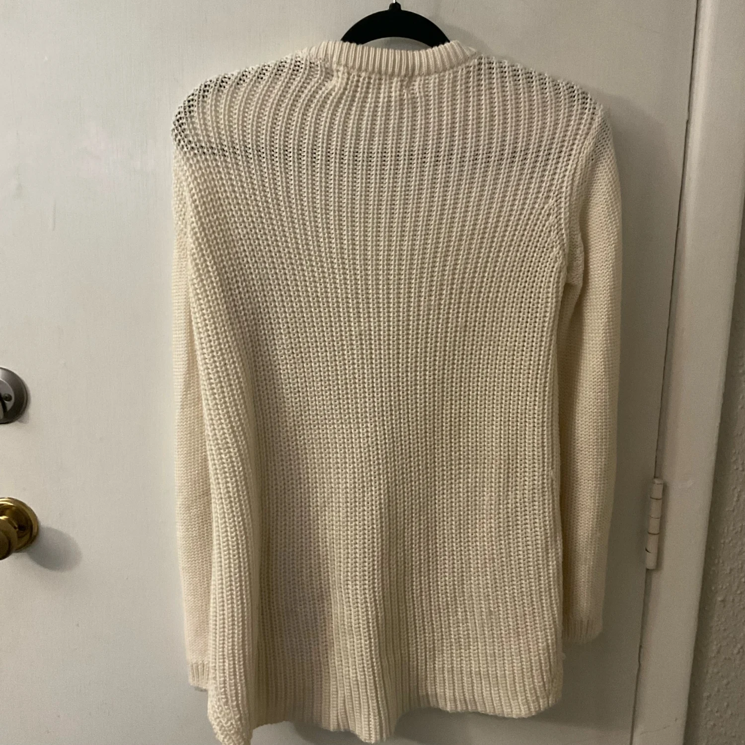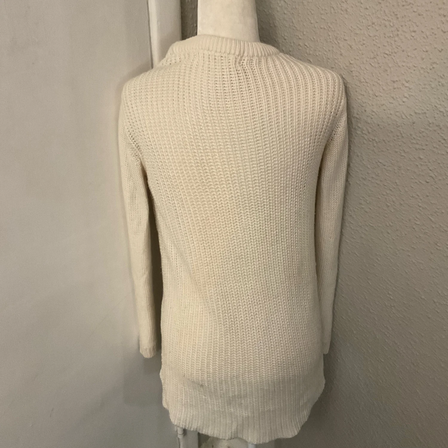 Style: High low Crewneck knit sweater Color: Cream Size: M Armpit: 16” Length: 28” Condition: Contains pilling and pulls 100% Acrylic Machine wash