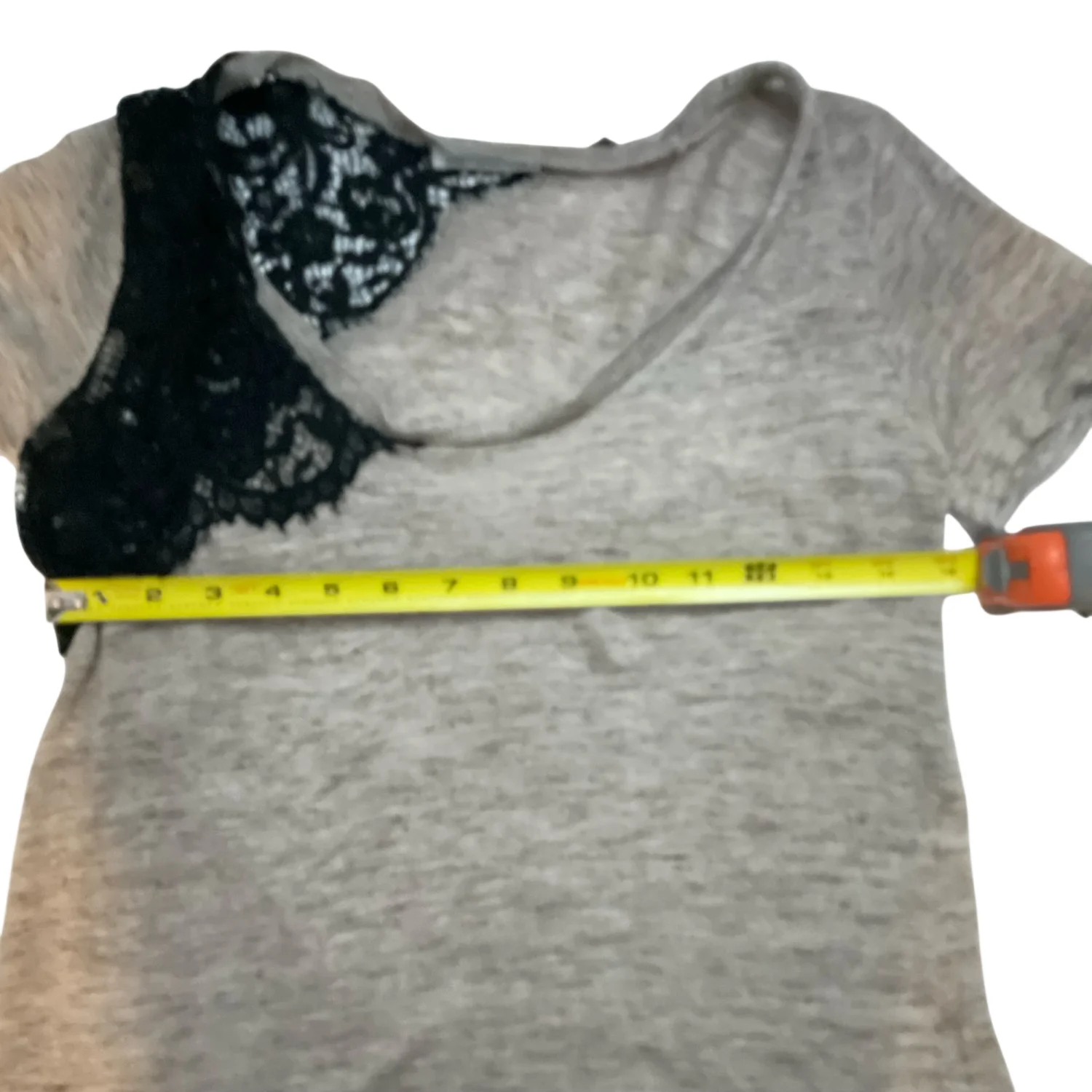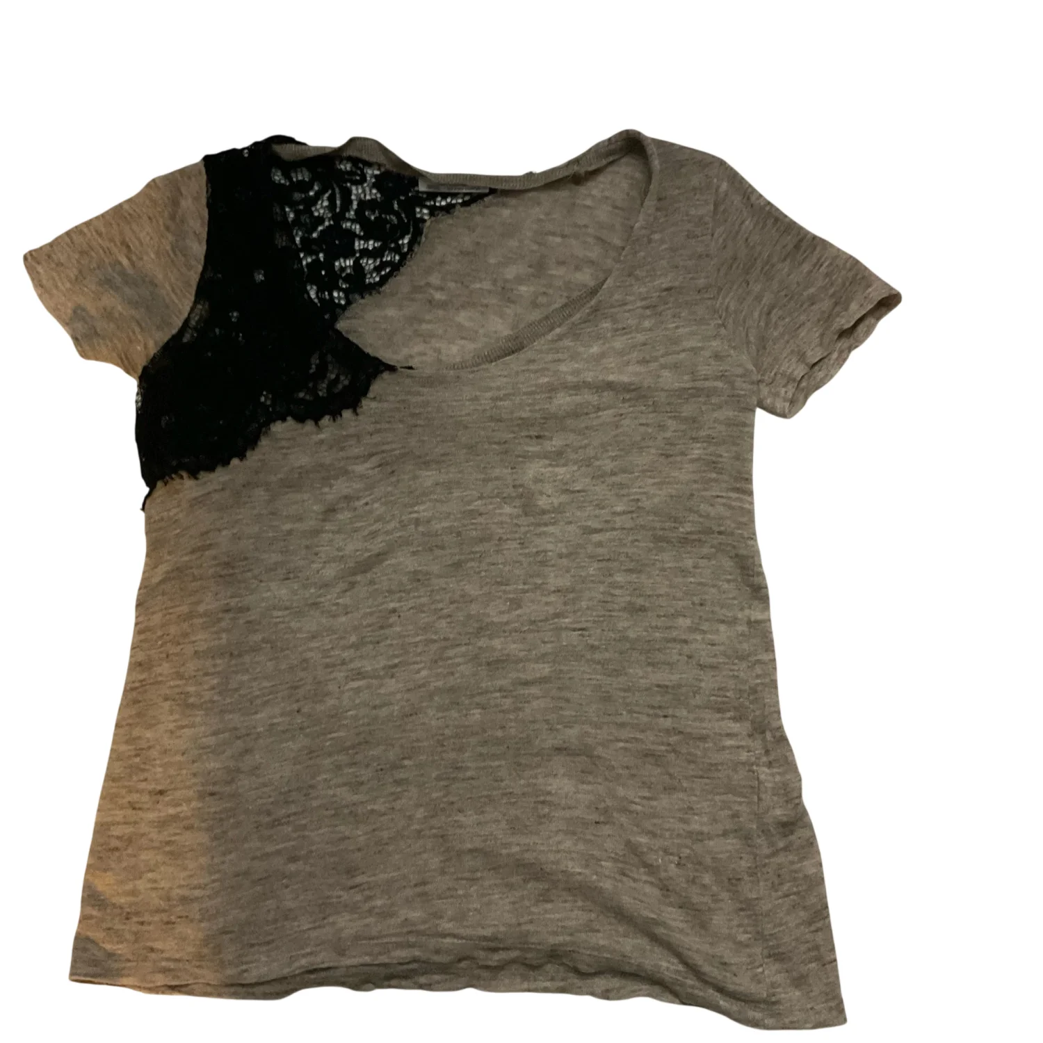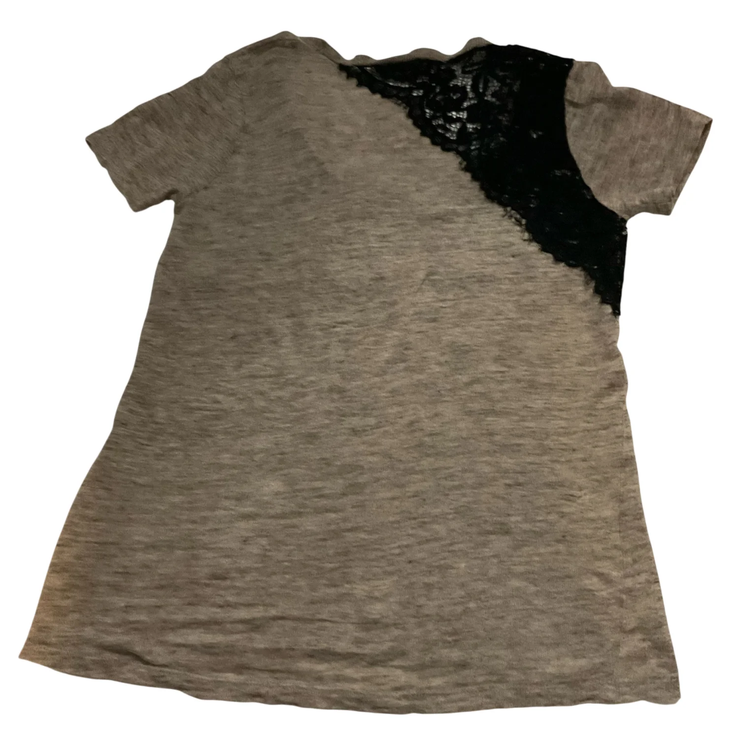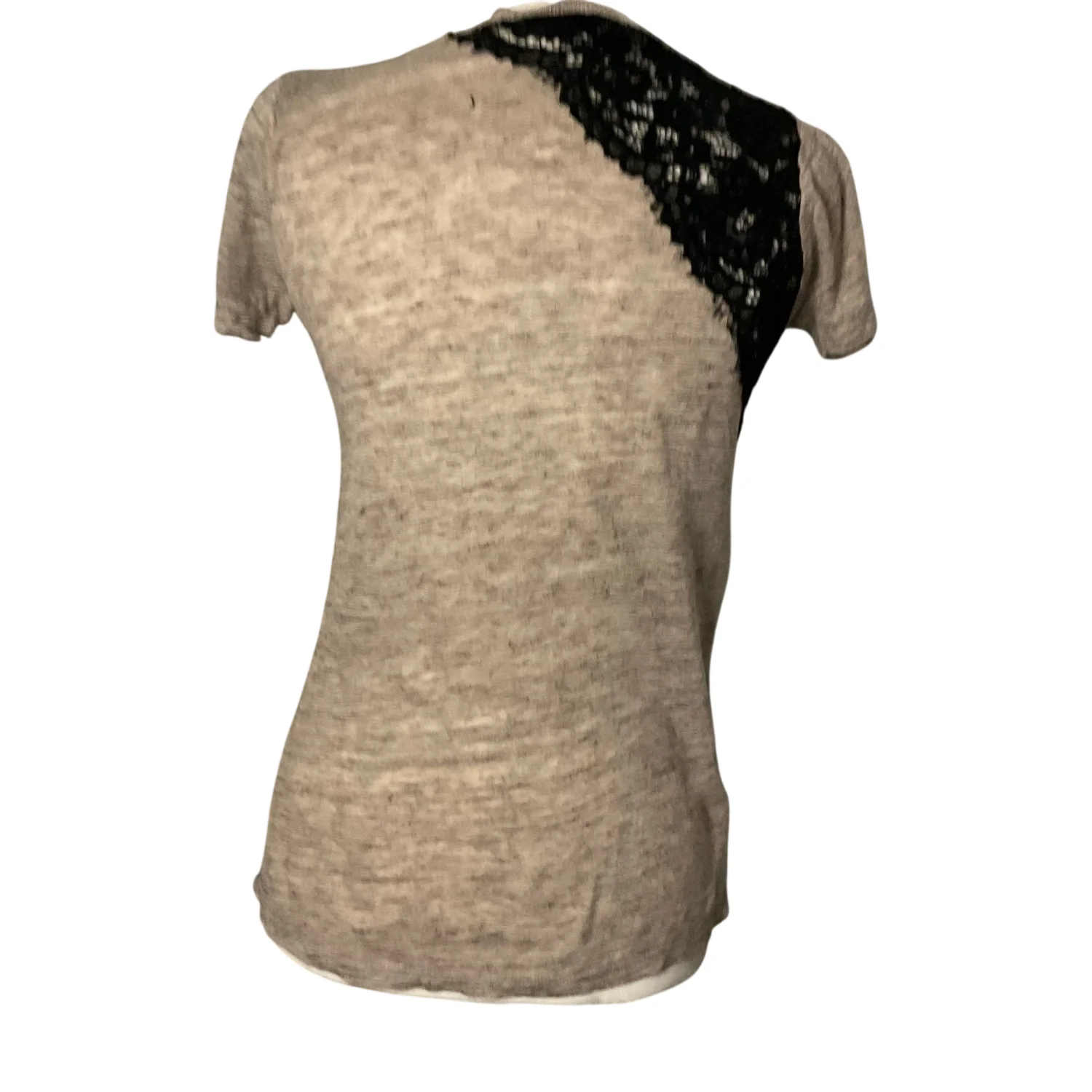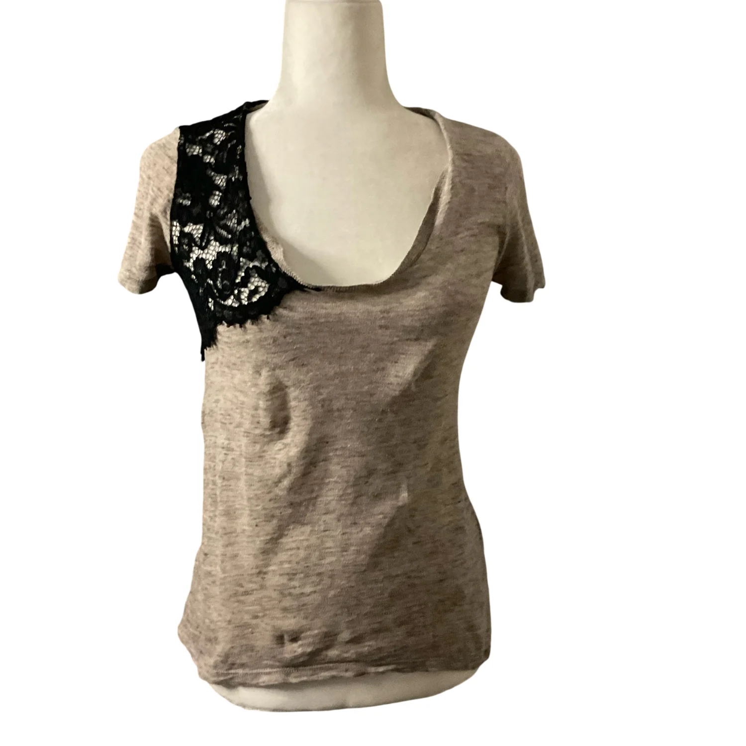 Style: Crewneck lace inset short sleeve tee Color: Beige/Black Size: S Armpit: 15” Length: 21” Condition: Good Linen and lace material