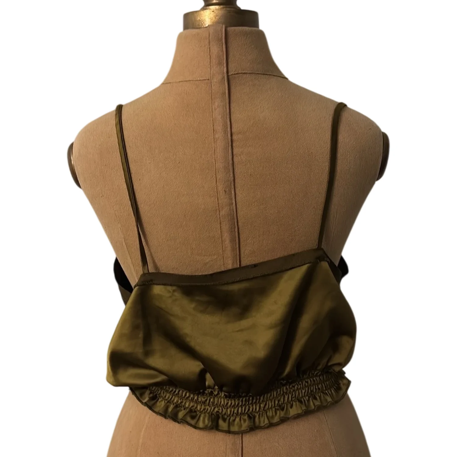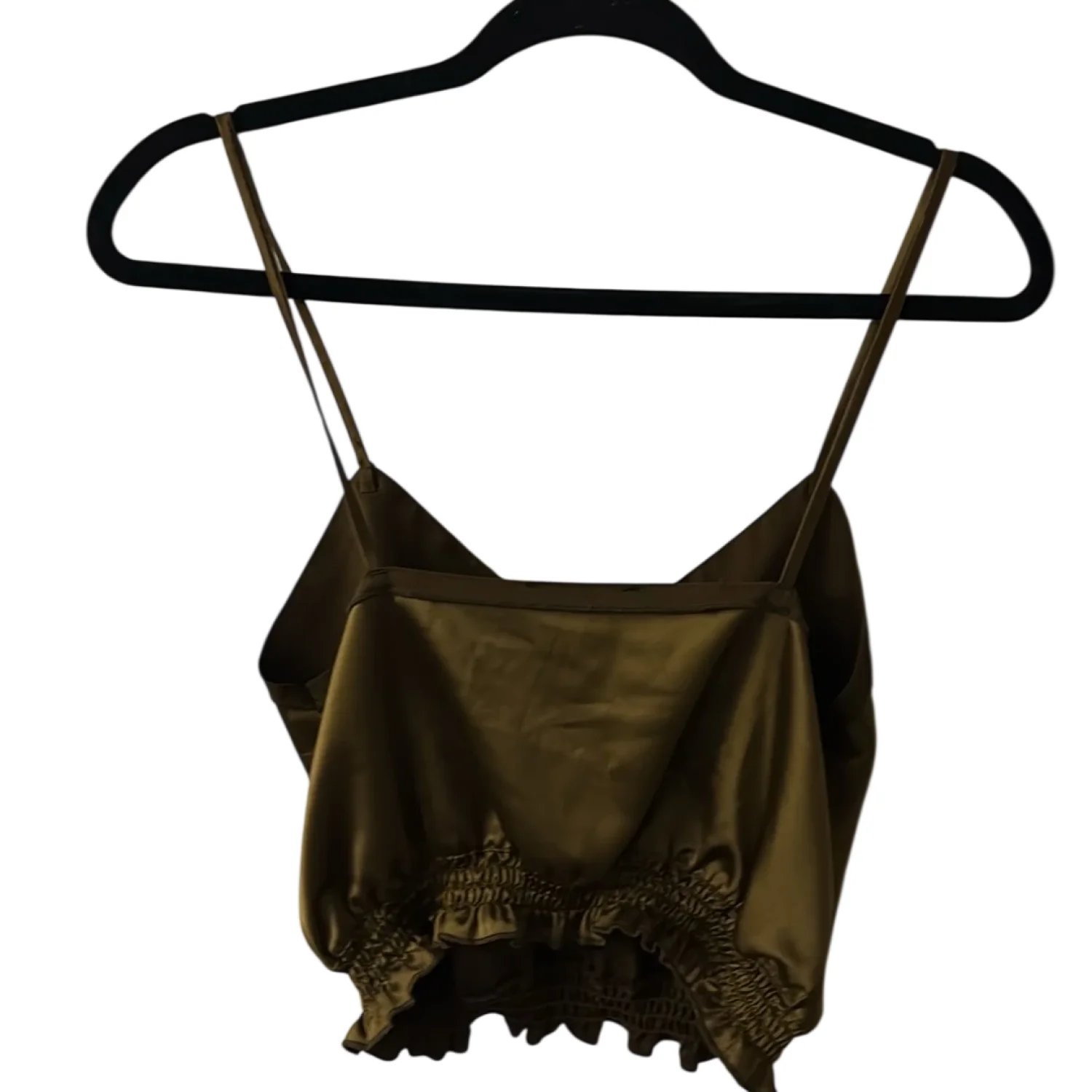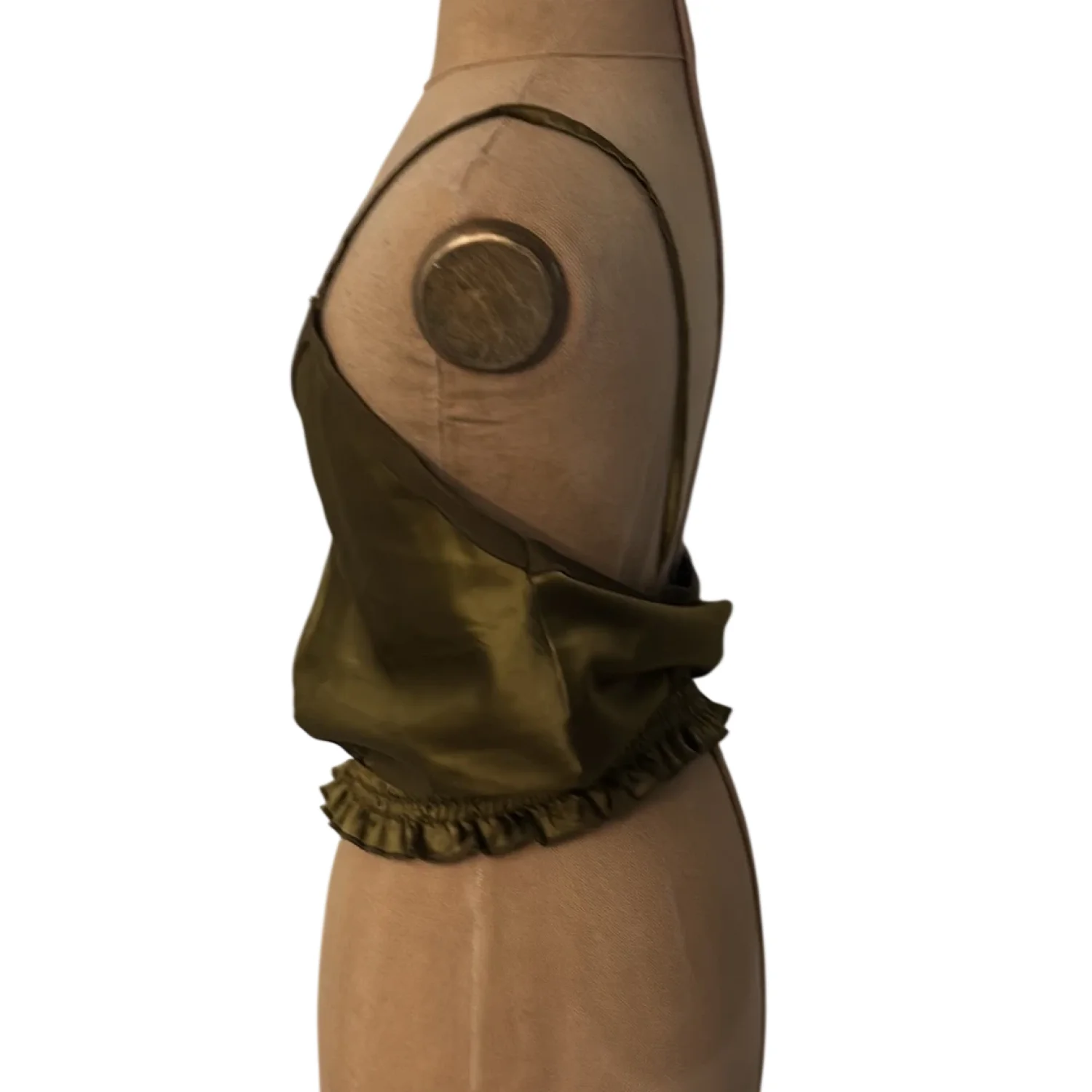 Zara Mini Crop Top Size S Bronze Olive Green Summer Retrogirl Glam Rocker Boho